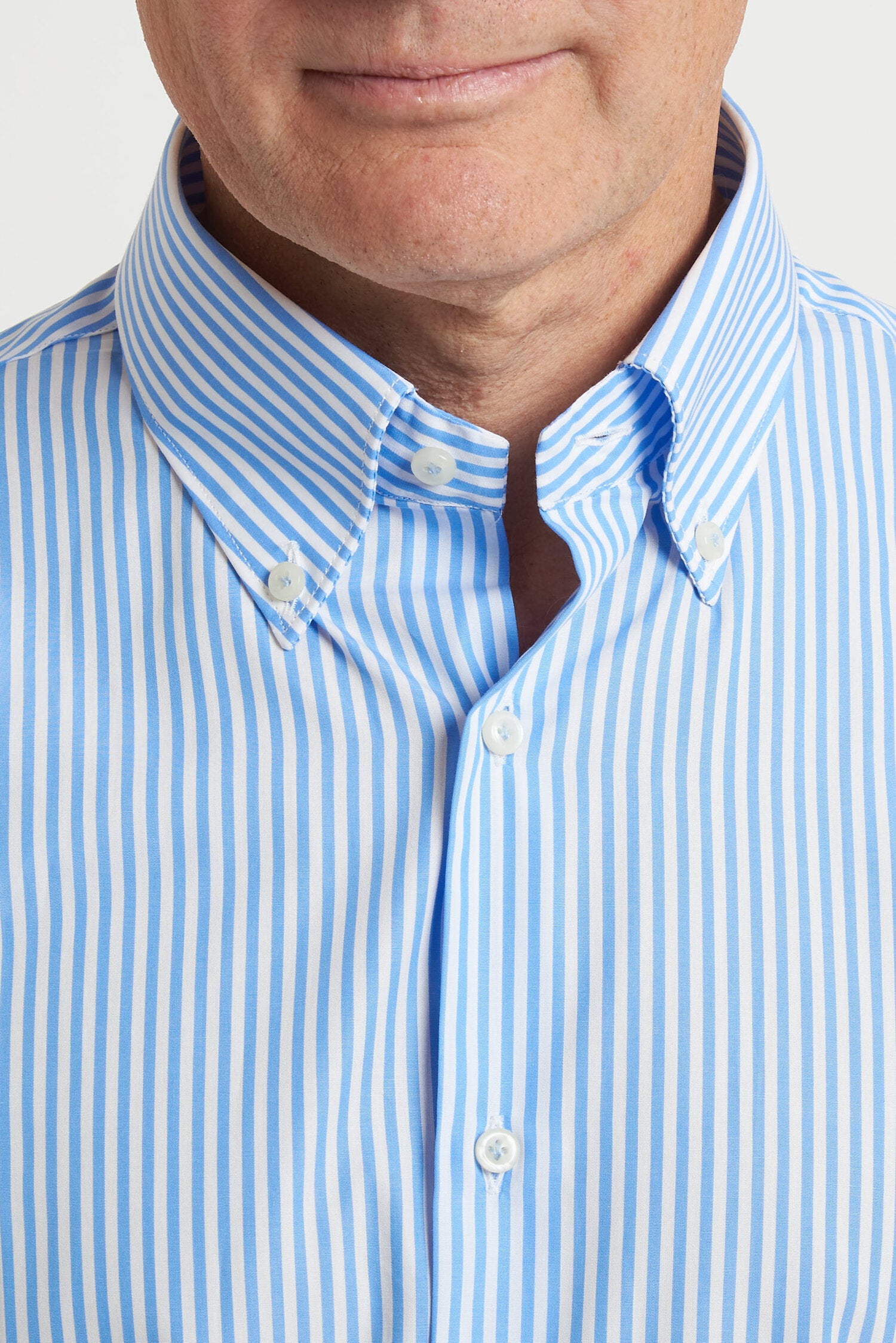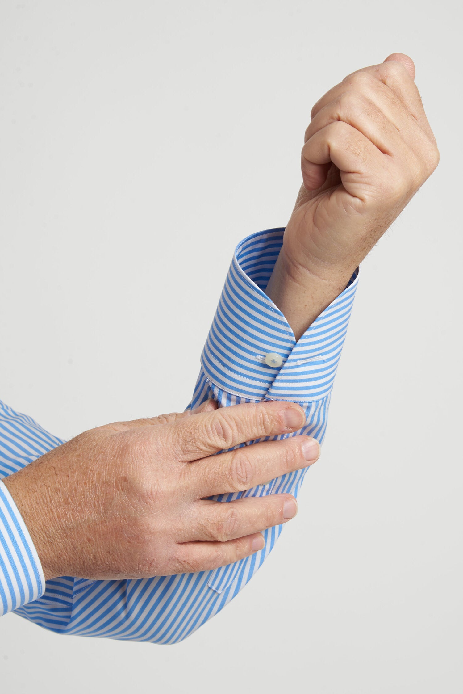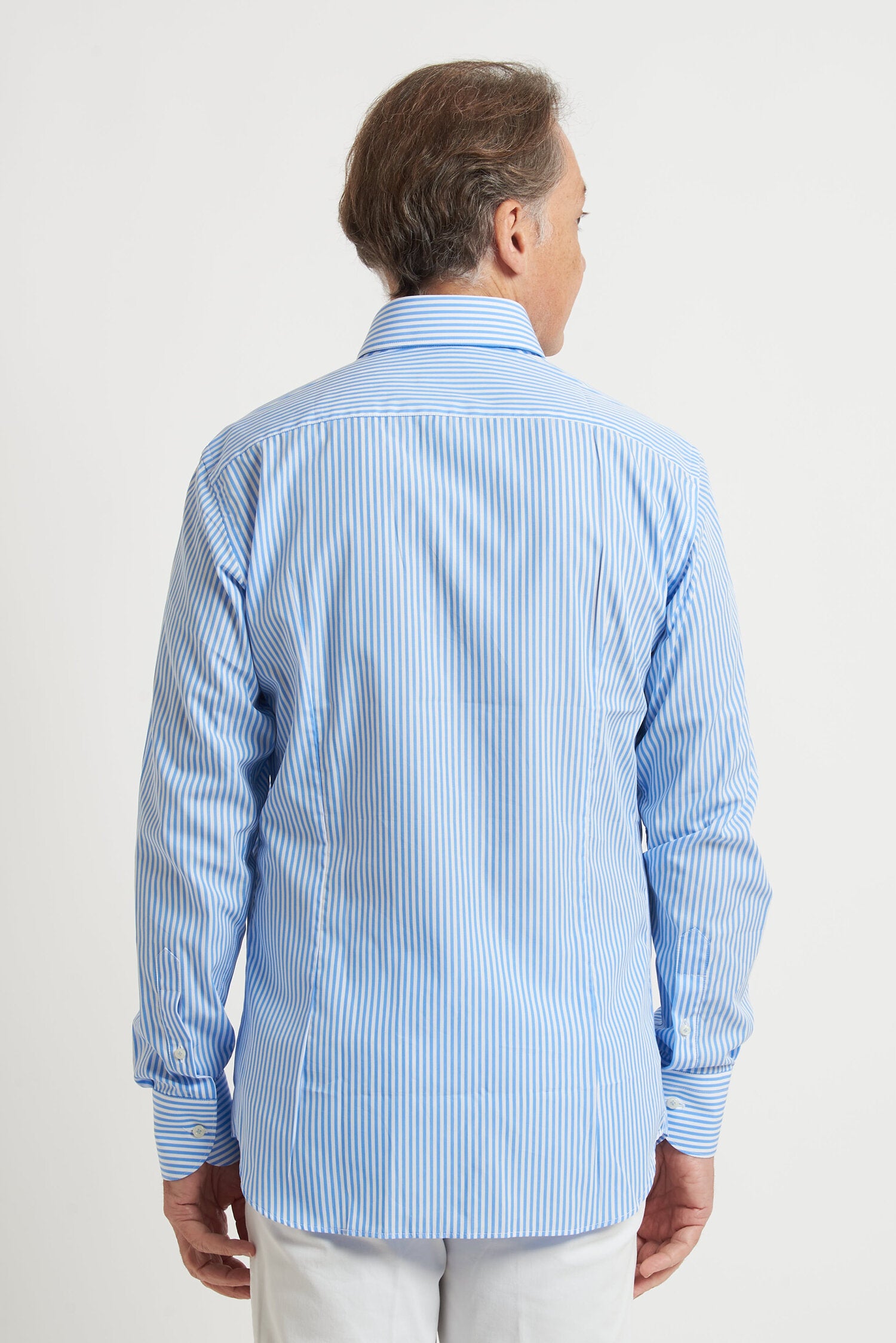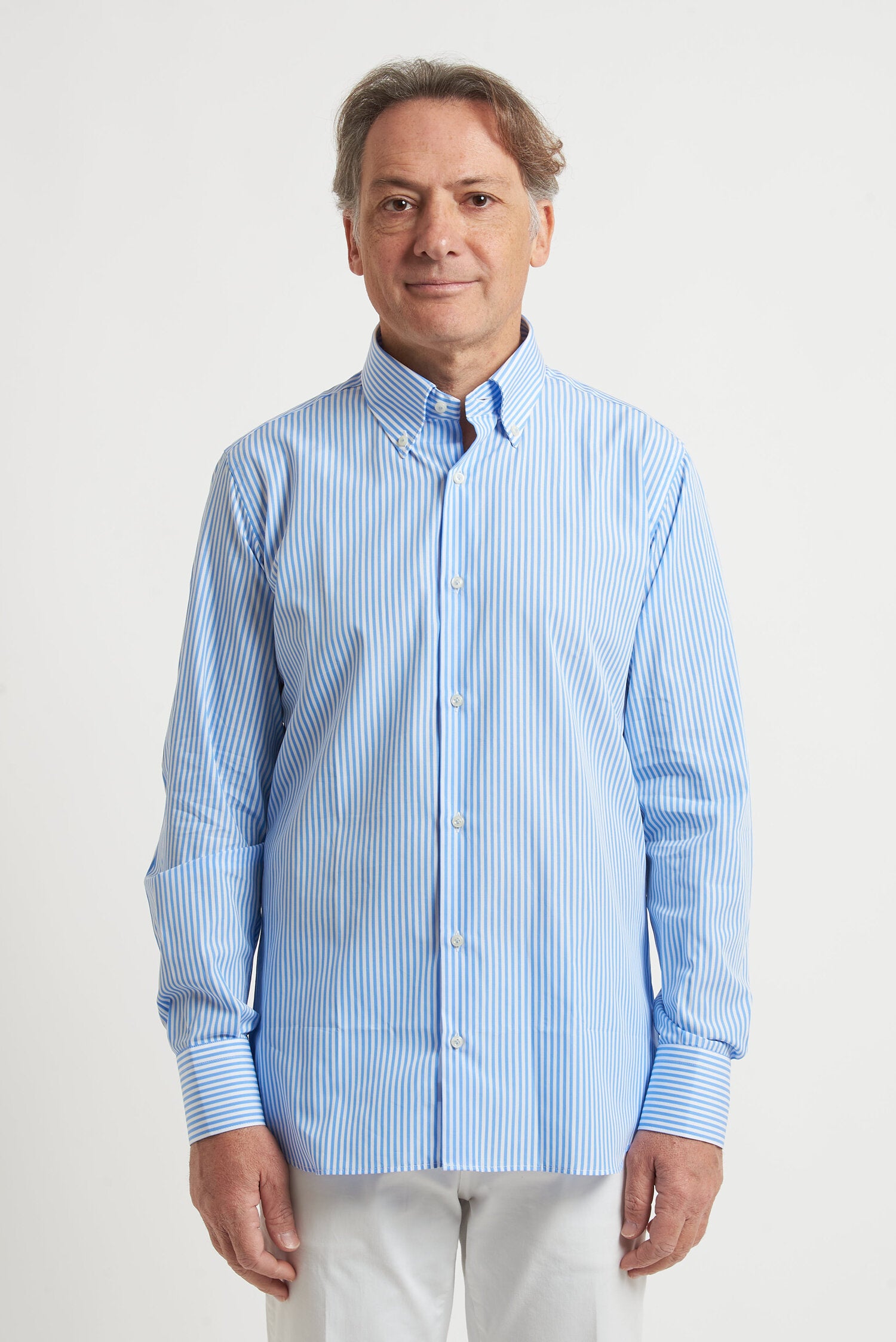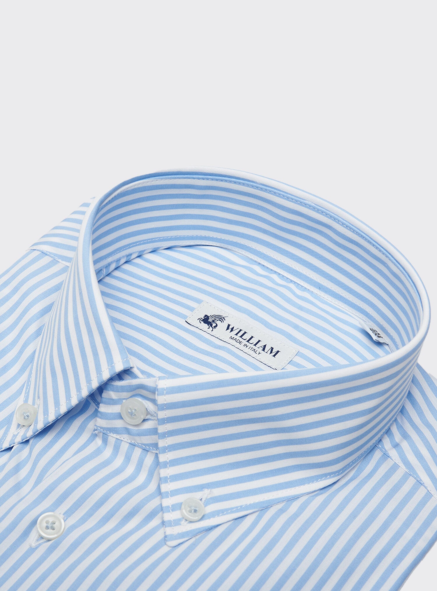Camicia rigata WILLIAM, realizzata in puro cotone di alta qualità liscio e compatto. Il collo è modello button down con pistagna di 3,5 cm di altezza. È realizzata con 2 pinces dietro la schiena. Il polso è caratterizzato dall'avere 2 asole ed 1 bottone...lo puoi abbottonare normalmente oppure puoi scegliere di indossare i gemelli. La vestibilità è regolare ma contemporanea. Composizione: 100% cotone.