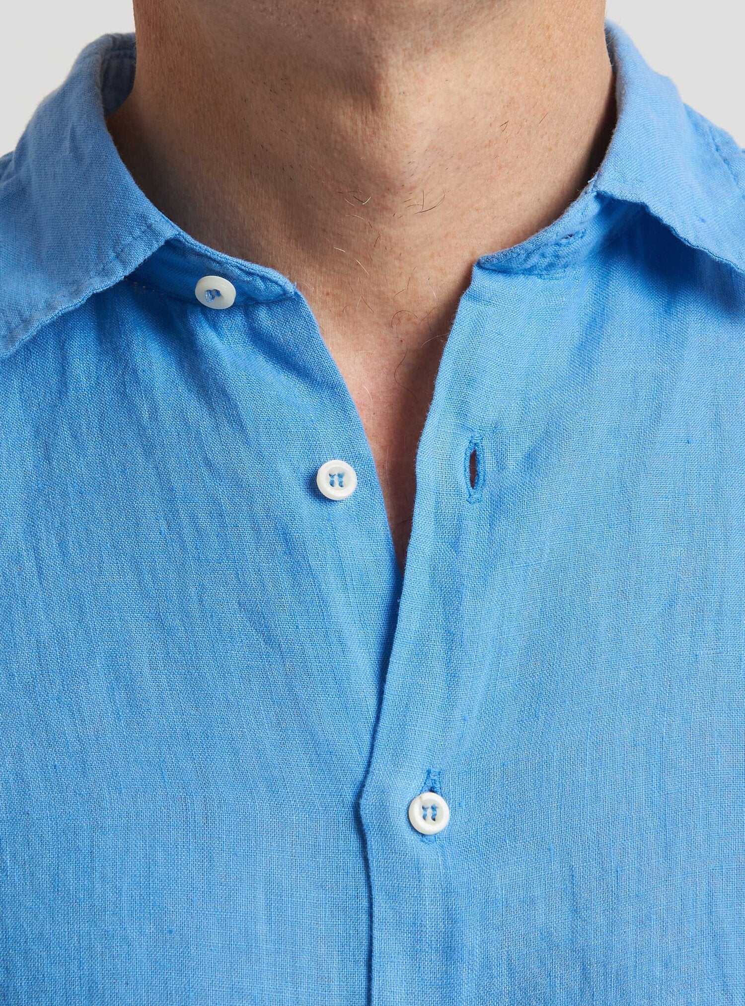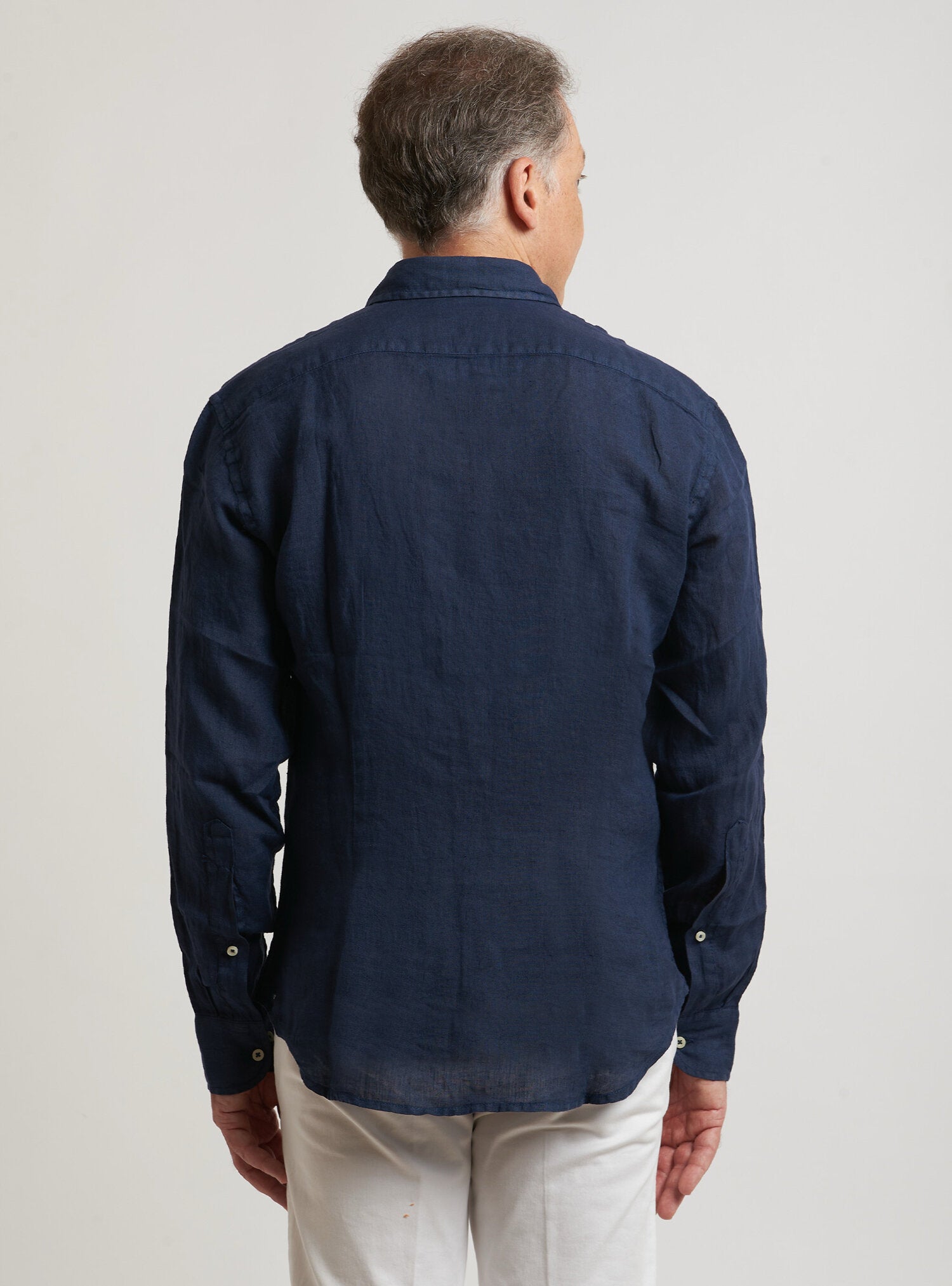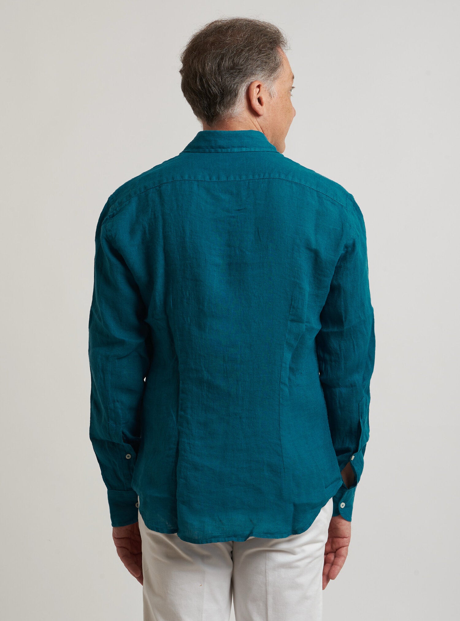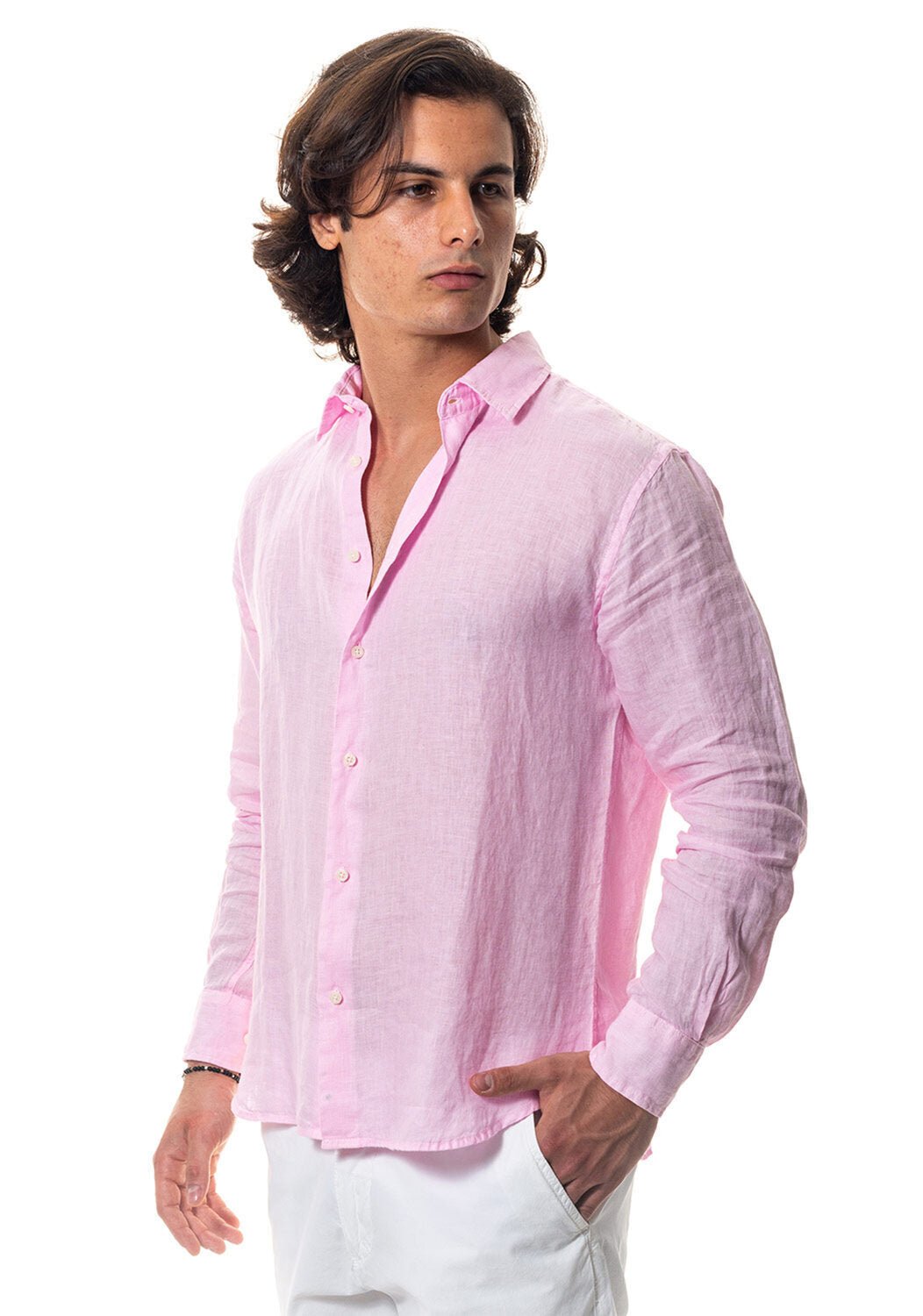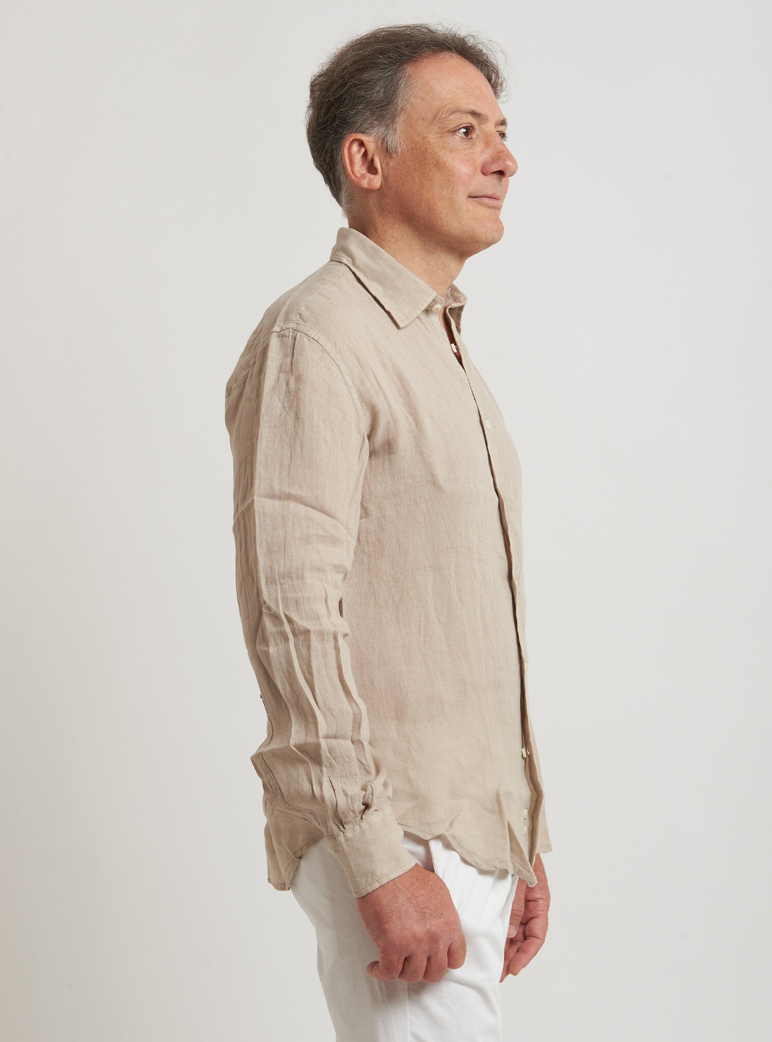 Camicia WILLIAM realizzata in puro lino lavato di alta qualità. Il collo è modello francese totalmente destrutturato e morbido. È realizzata con 2 pinces dietro la schiena. La vestibilità è semi slim. Composizione 100% lino.