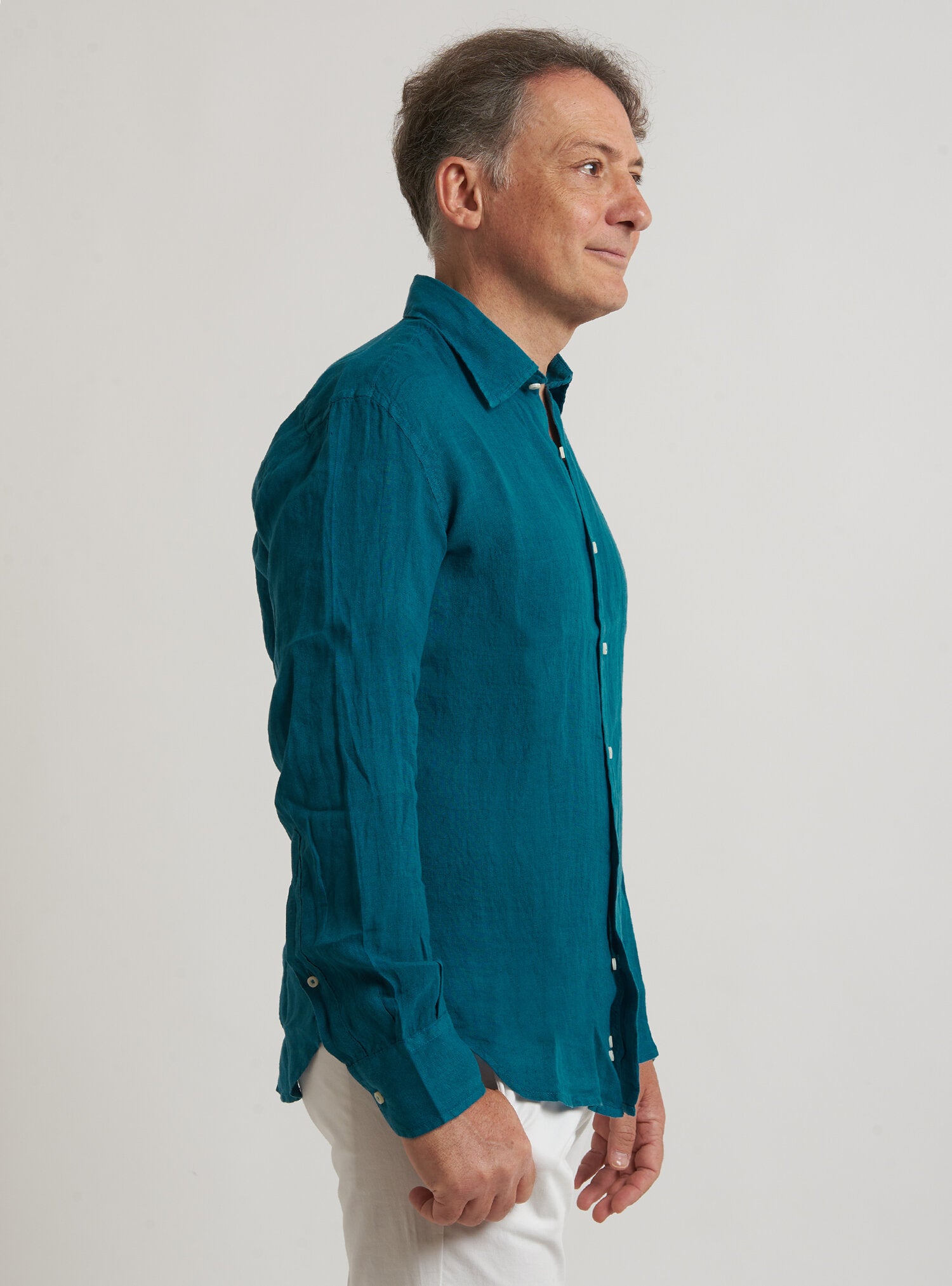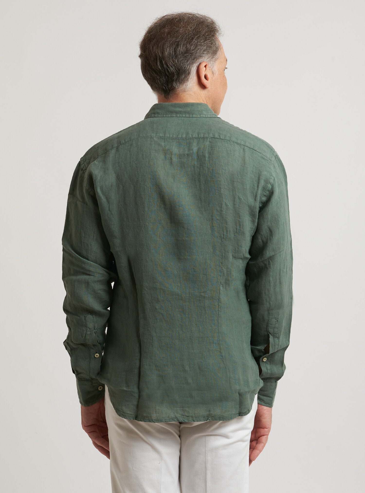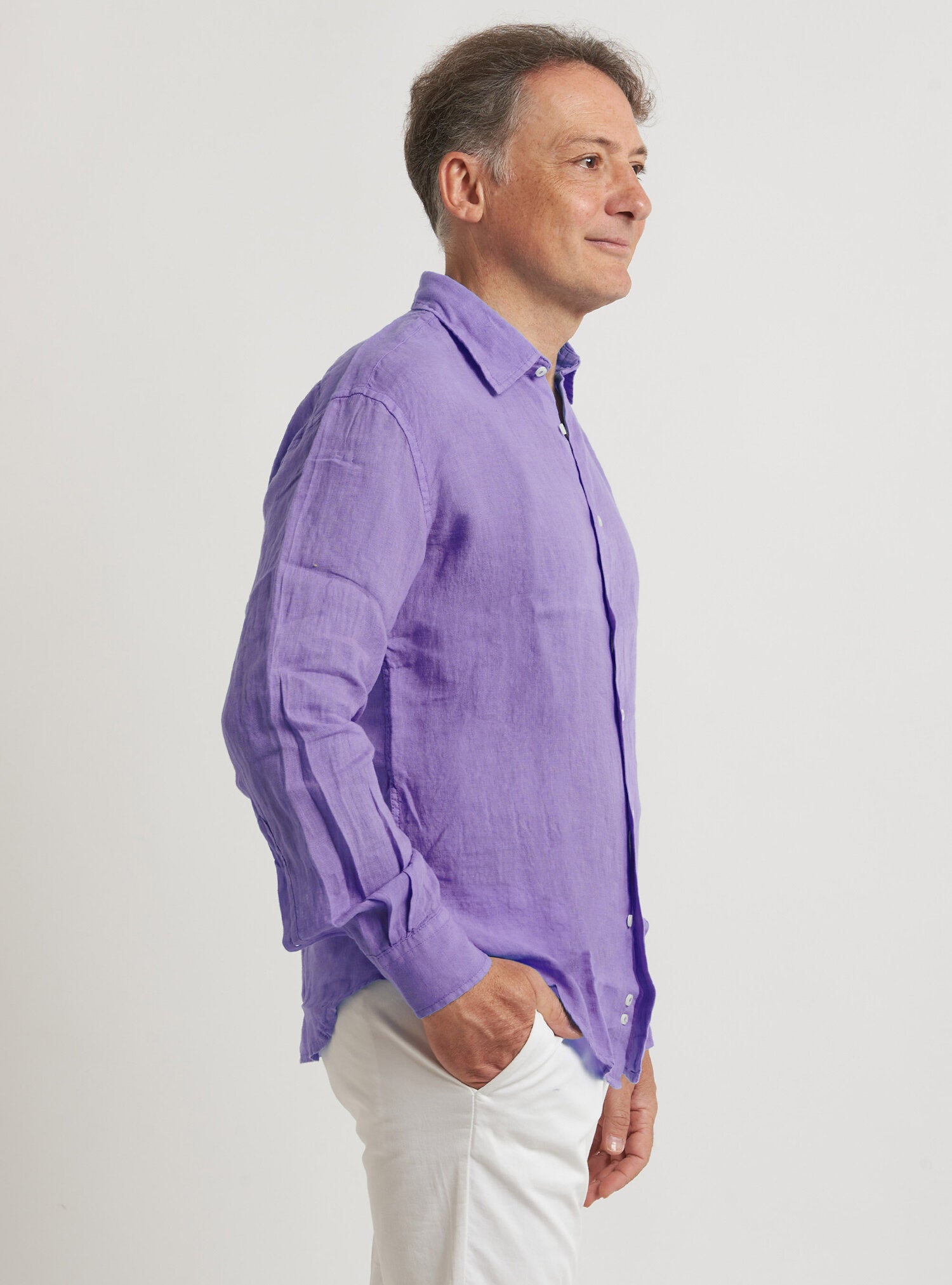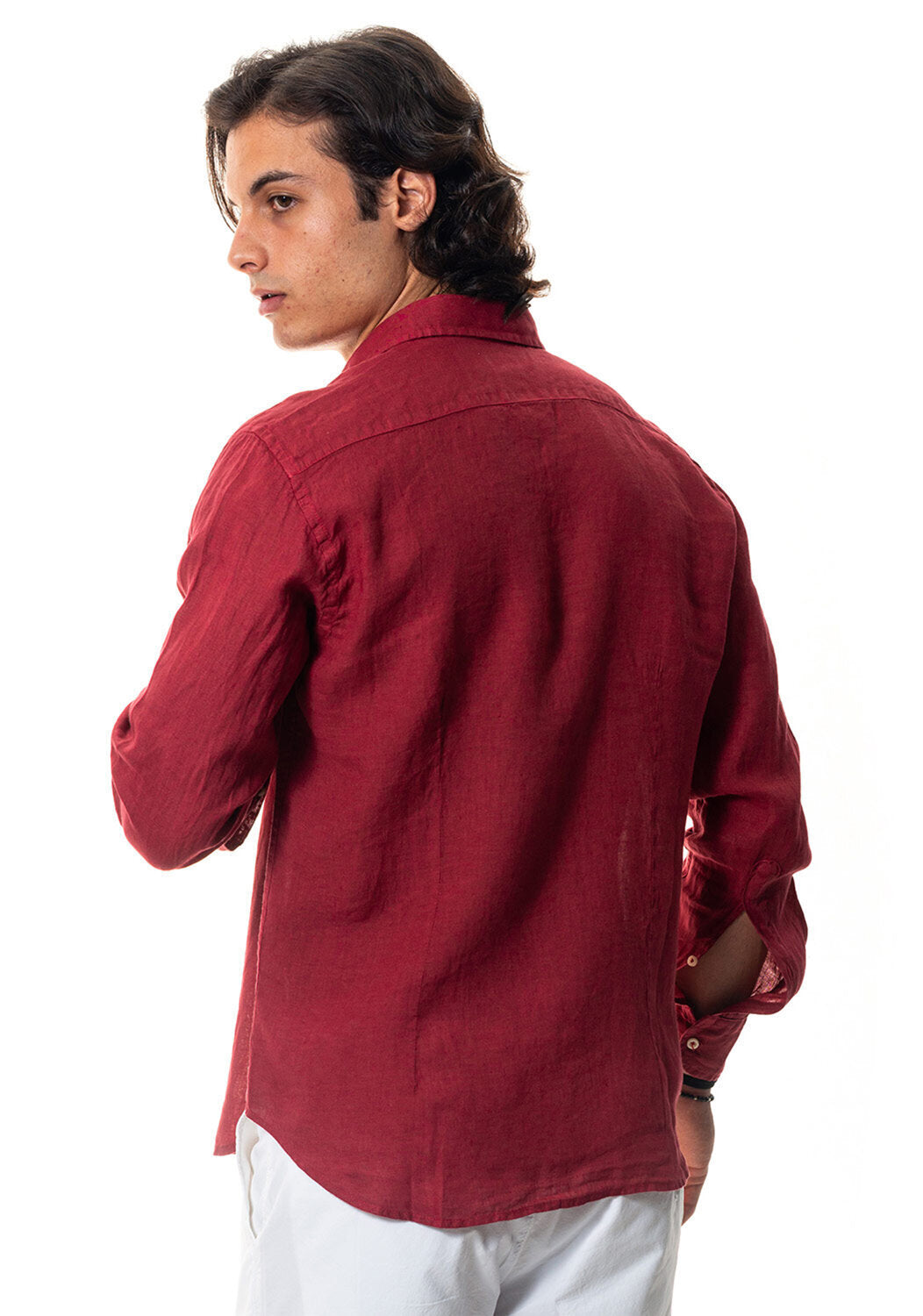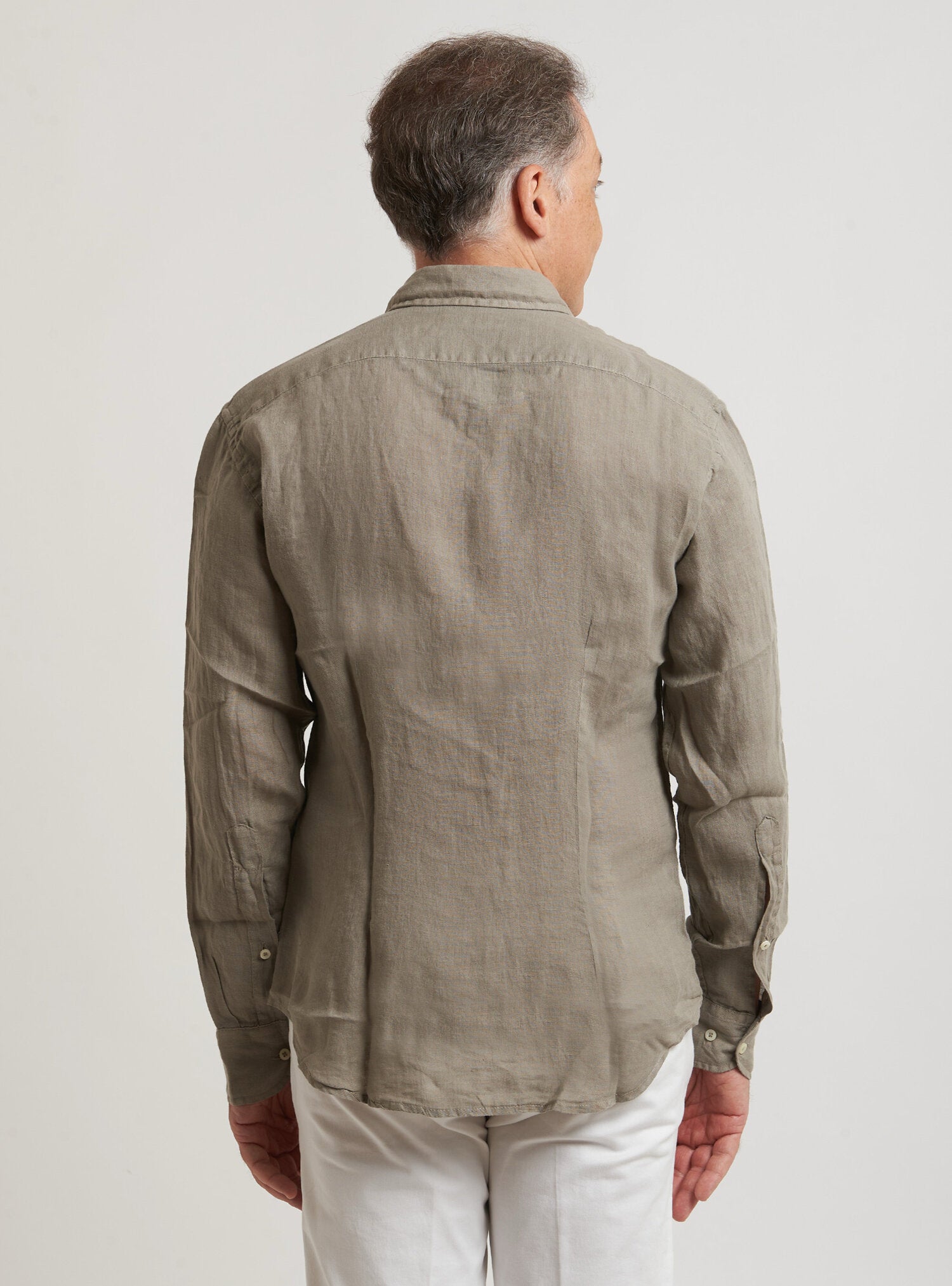 Camicia WILLIAM realizzata in puro lino lavato di alta qualità. Il collo è modello francese totalmente destrutturato e morbido. È realizzata con 2 pinces dietro la schiena. La vestibilità è semi slim. Composizione 100% lino.