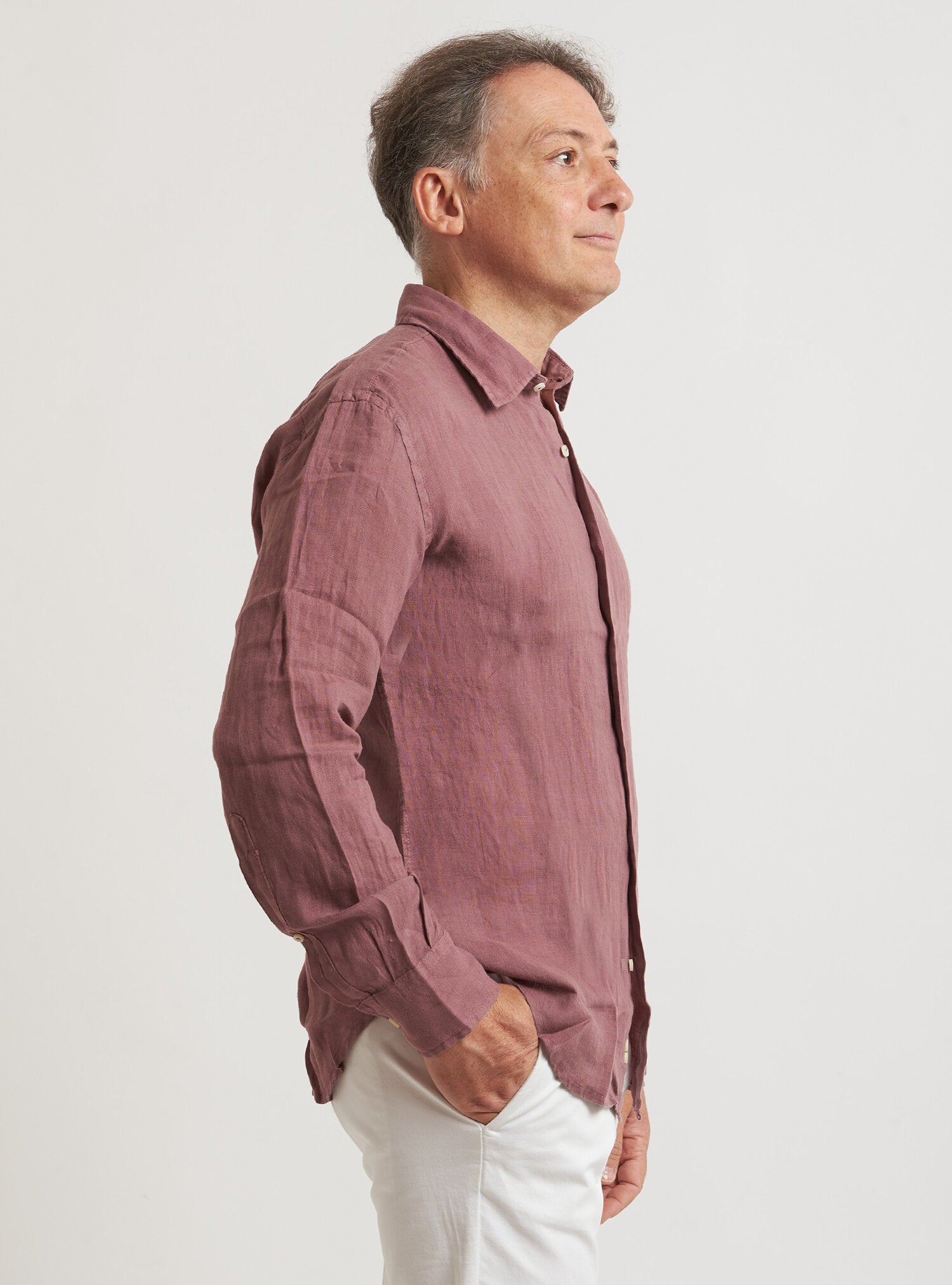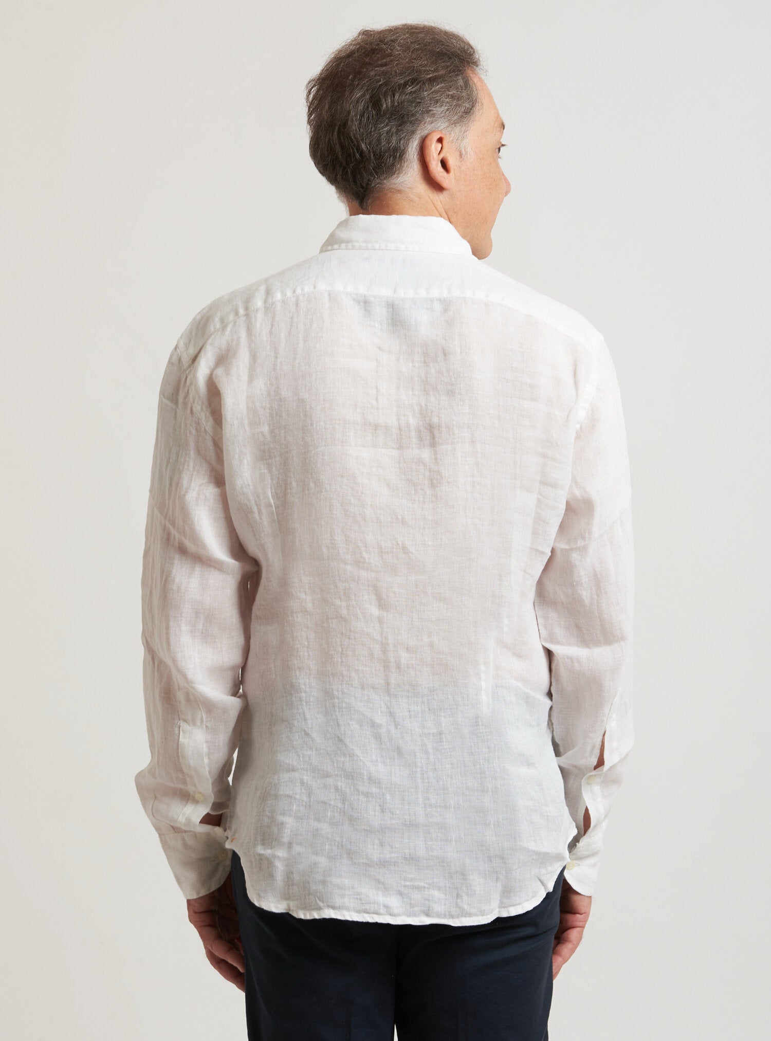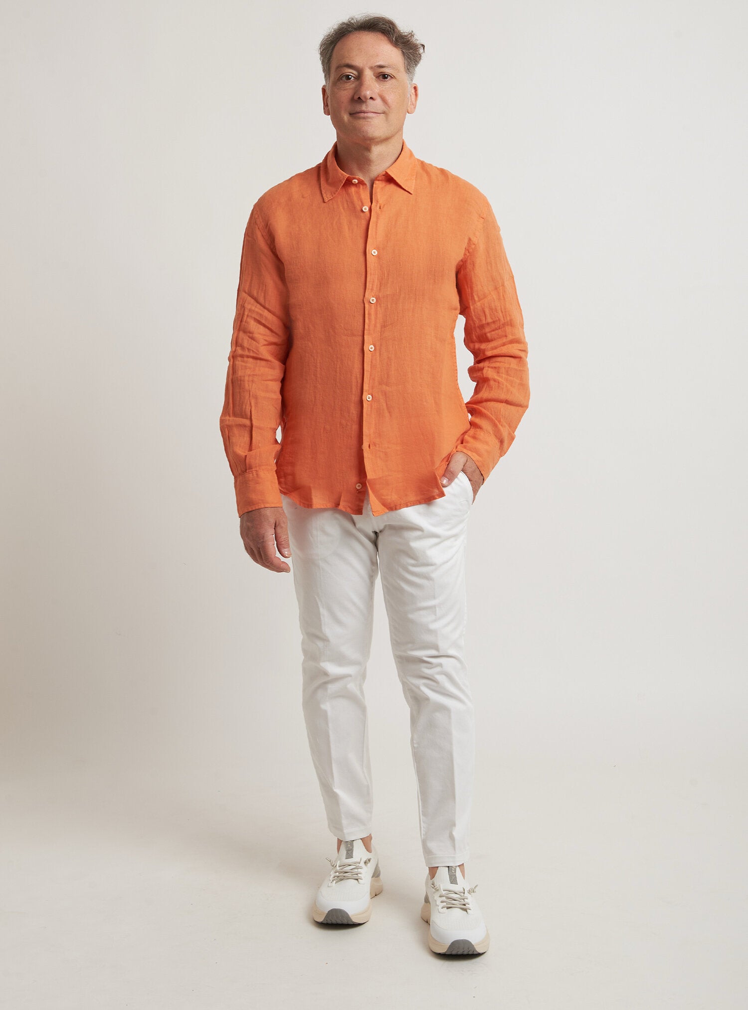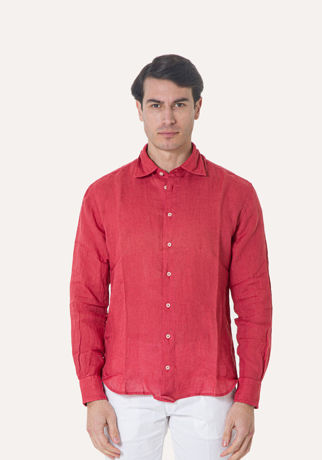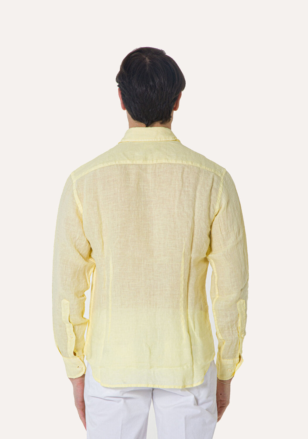 Camicia WILLIAM realizzata in puro lino lavato di alta qualità. Il collo è modello francese totalmente destrutturato e morbido. È realizzata con 2 pinces dietro la schiena. La vestibilità è semi slim. Composizione 100% lino.