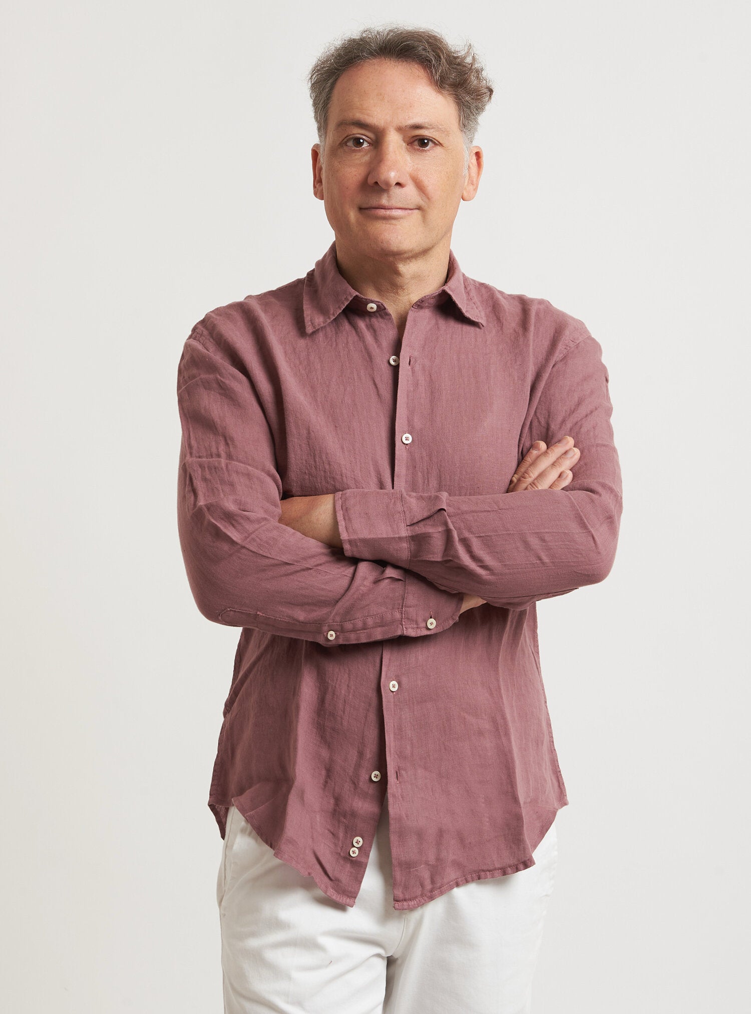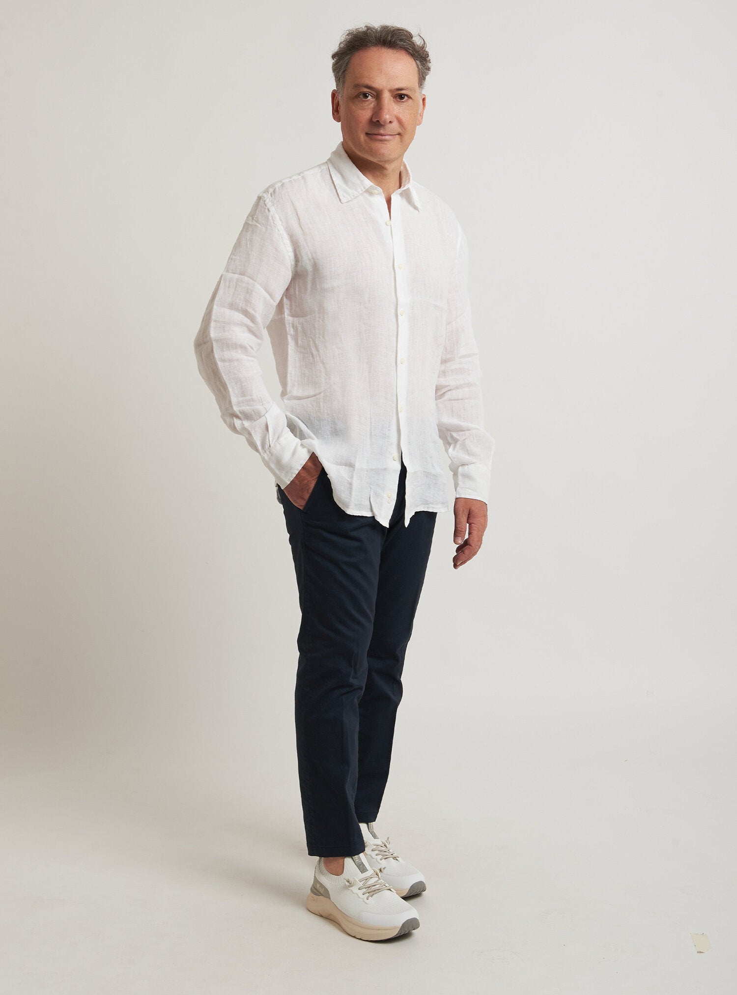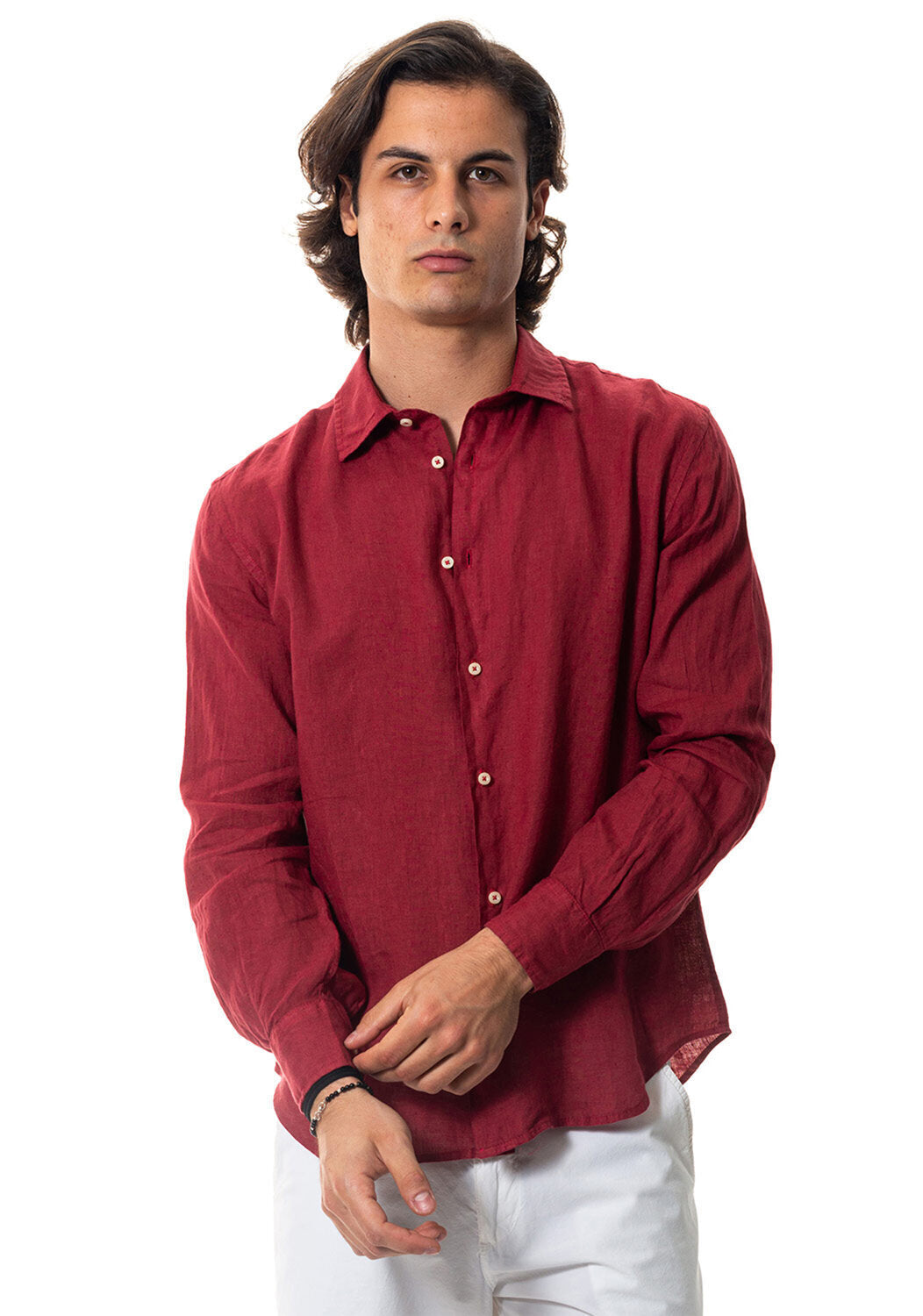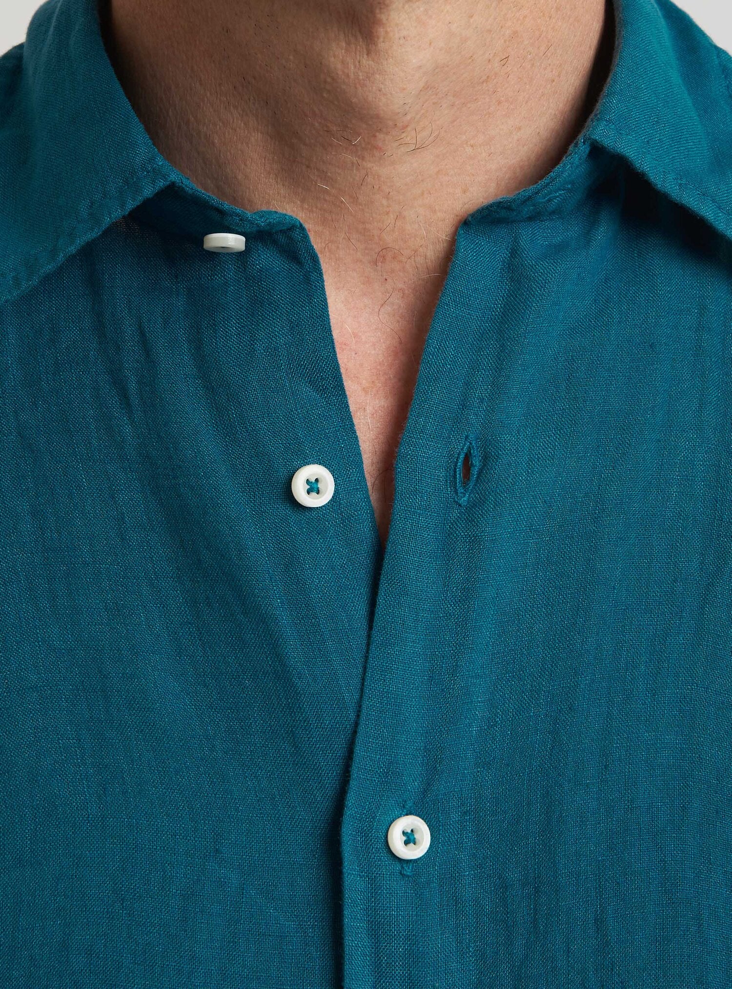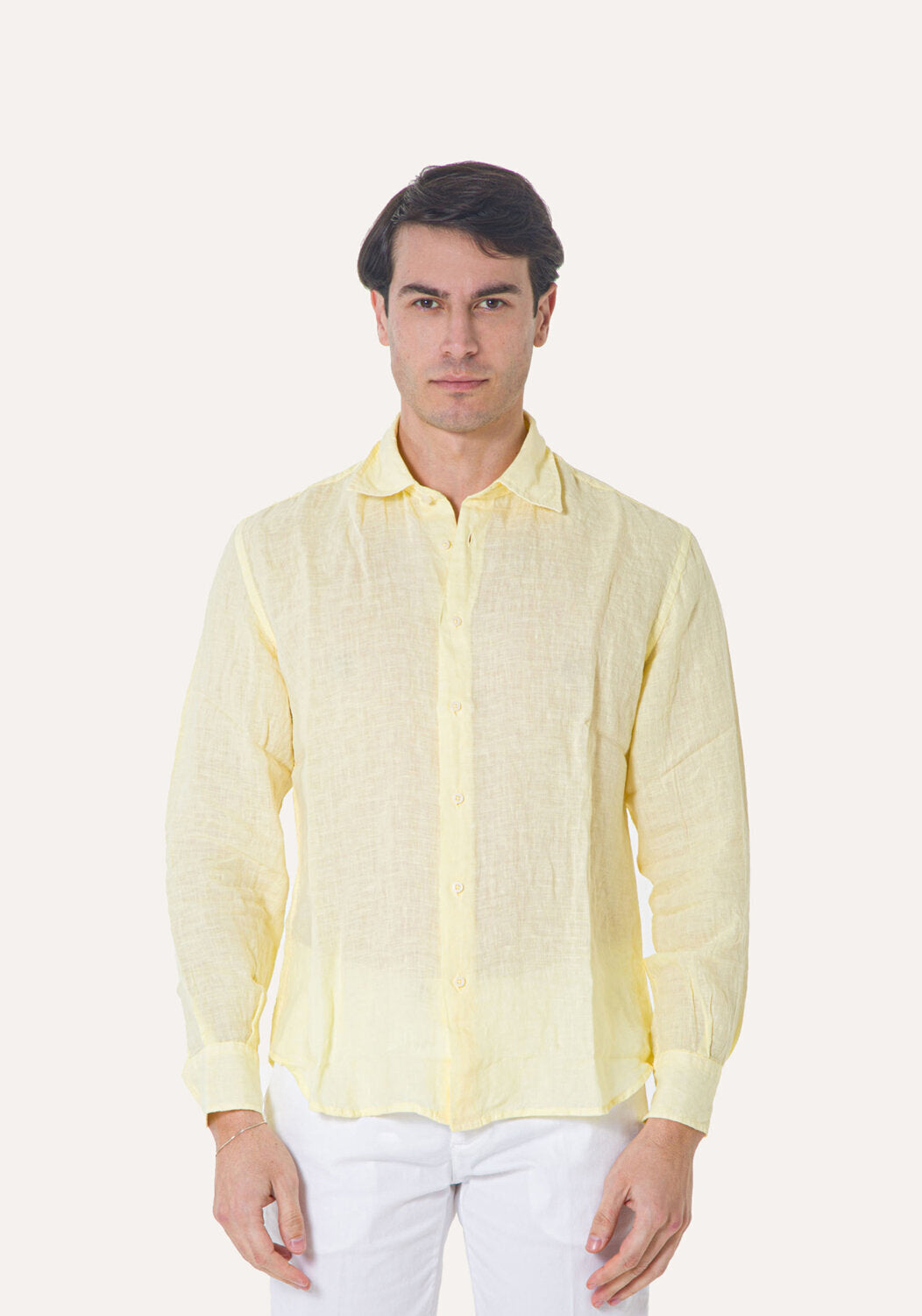 Camicia WILLIAM realizzata in puro lino lavato di alta qualità. Il collo è modello francese totalmente destrutturato e morbido. È realizzata con 2 pinces dietro la schiena. La vestibilità è semi slim. Composizione 100% lino.