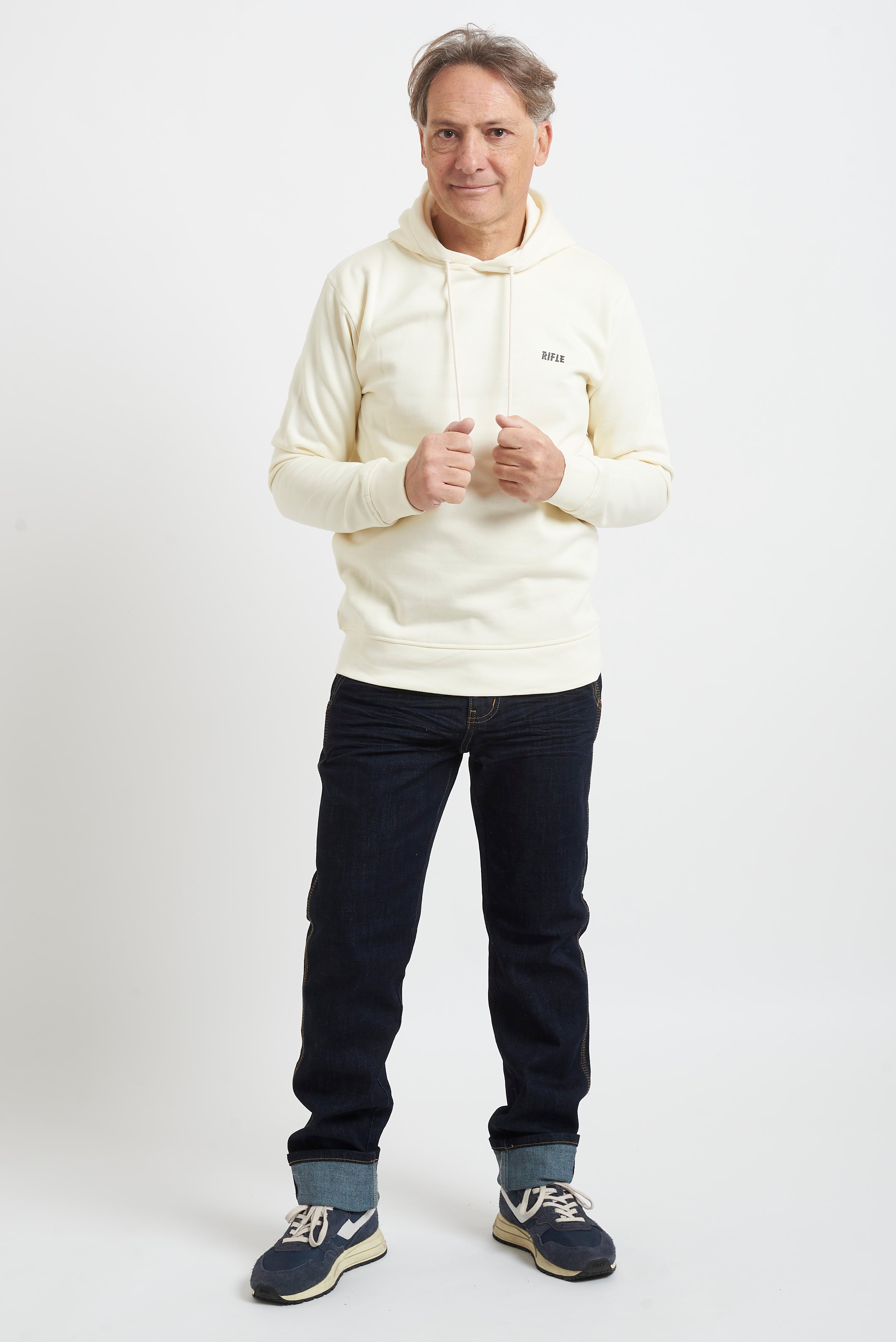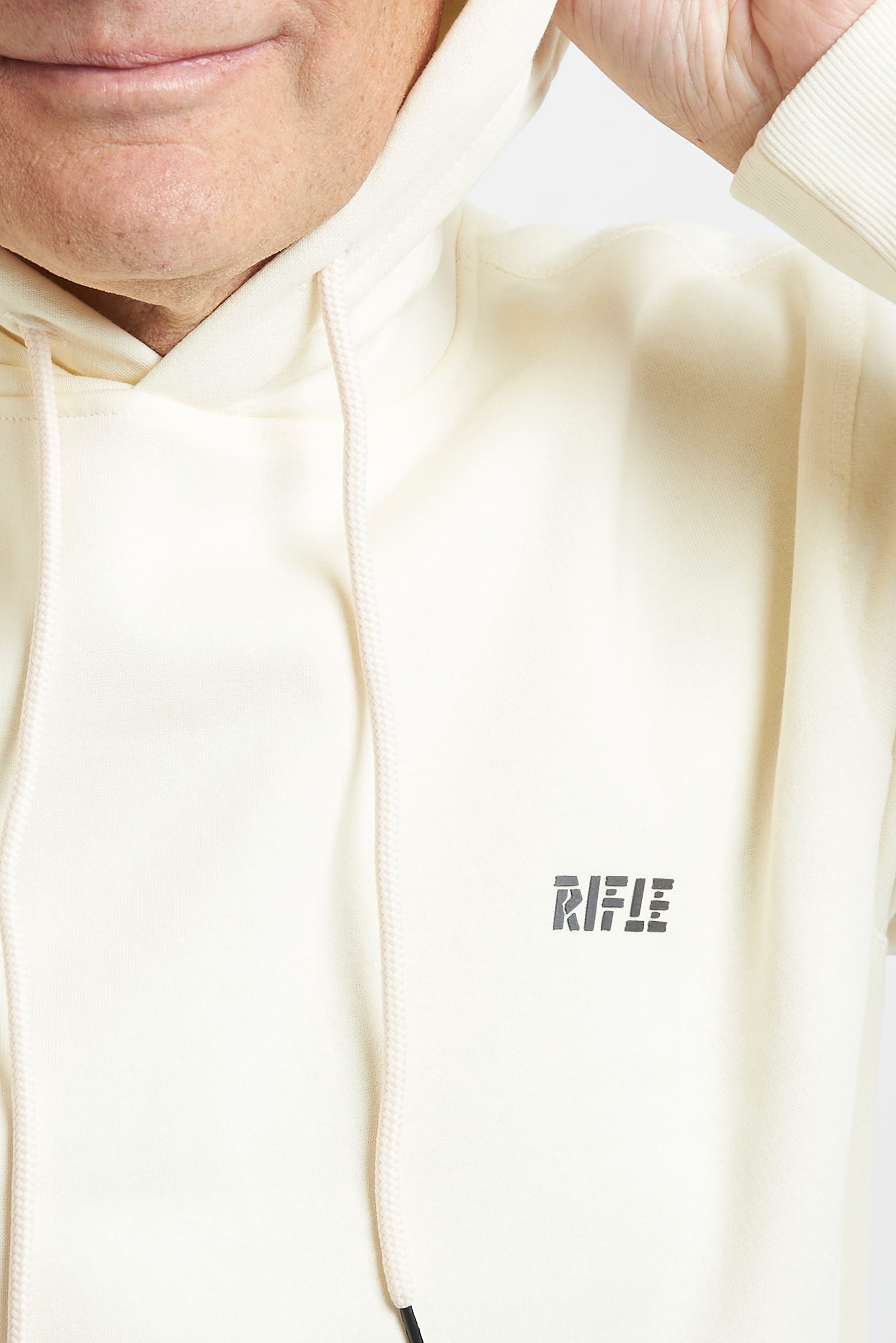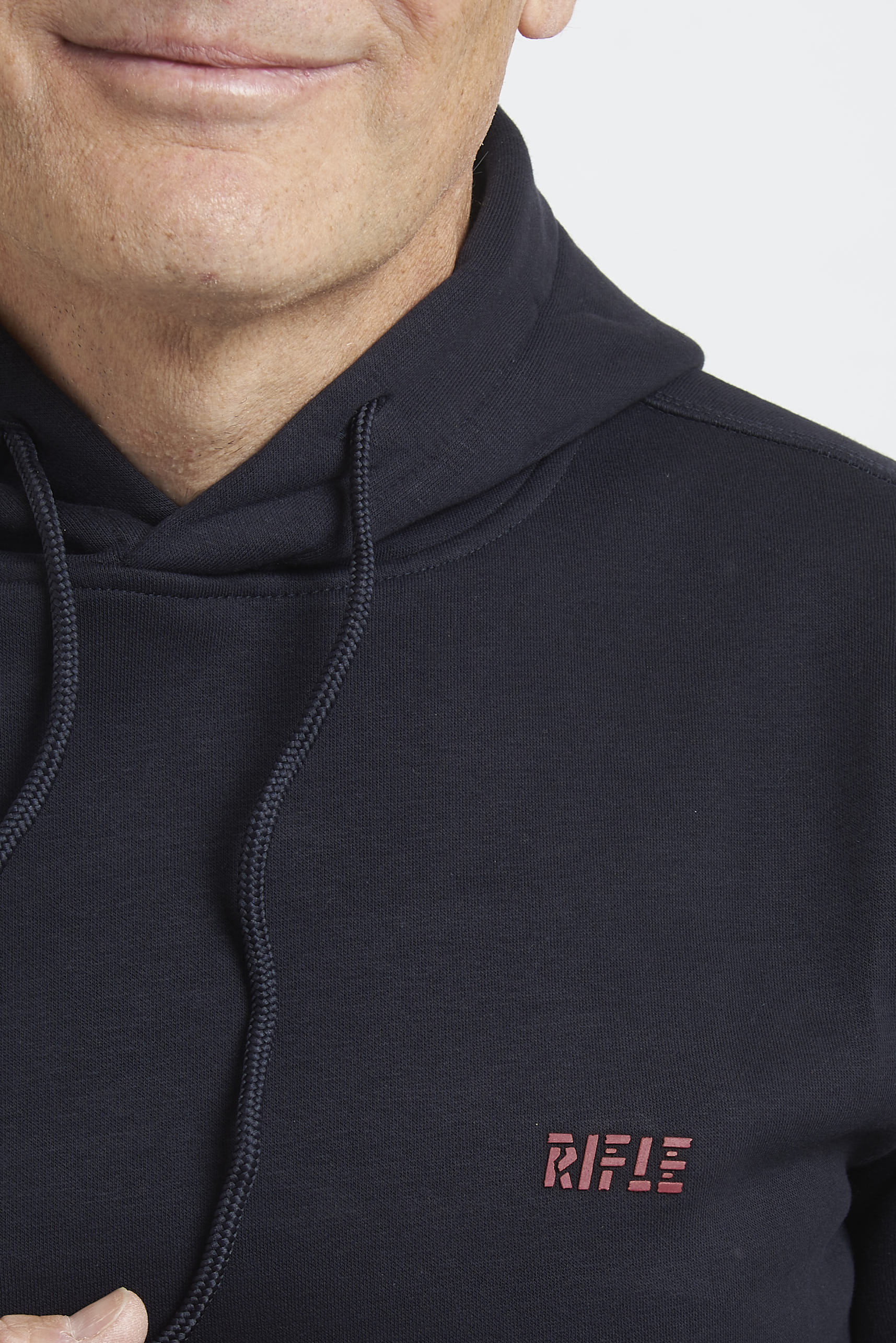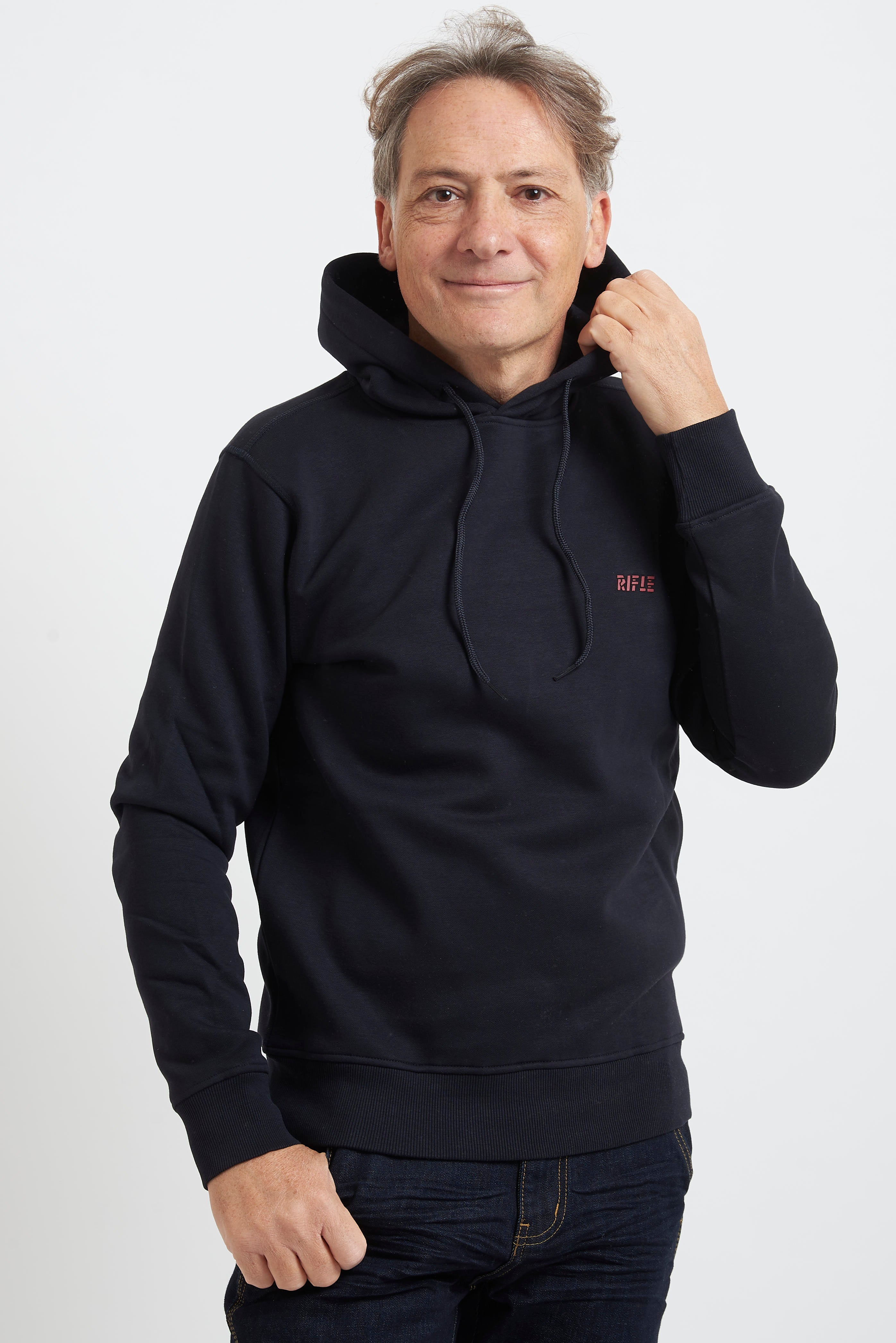 Felpa con cappuccio Rifle, realizzata in soffice e caldo cotone di peso invernale. L'interno è rifinito di tessuto felpato. I polsi e la balza sono lavorati a costina. Il capo è arricchito sul petto dalla presenza del logo realizzato in contrasto. La vestibilità è regolare. Composizione: 65% cotone - 35% poliestere.