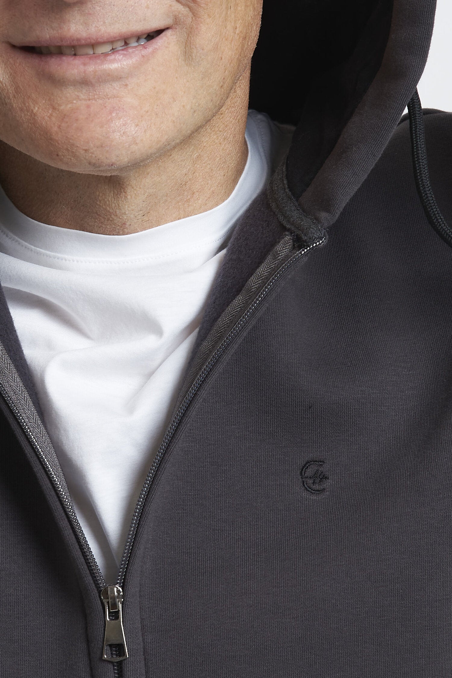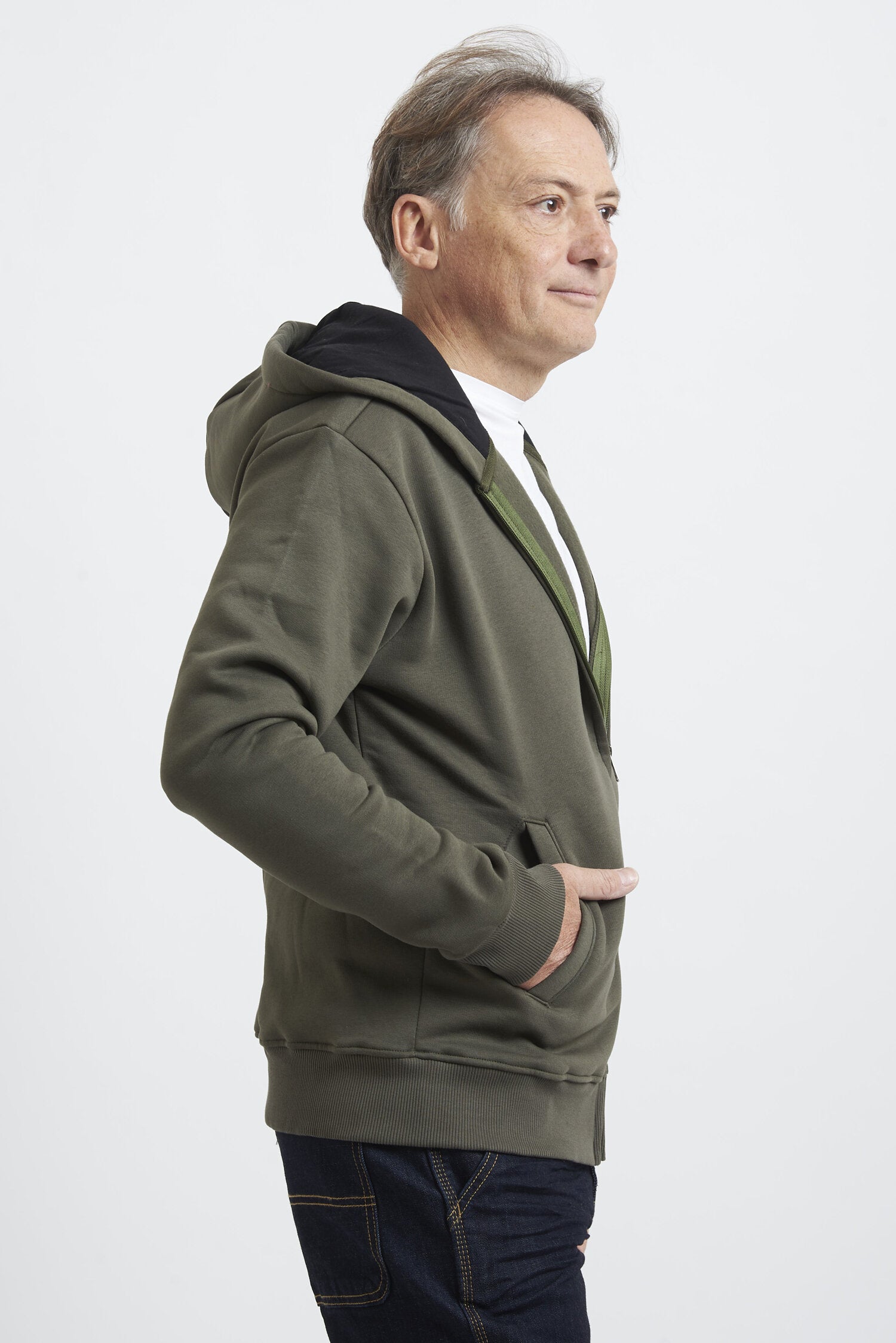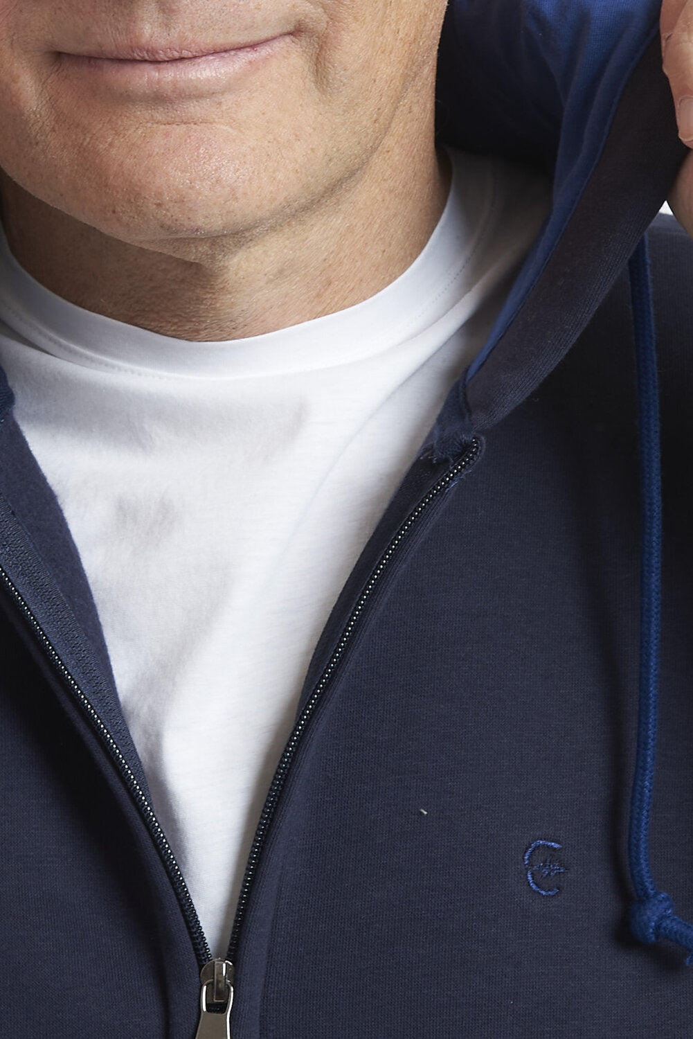 Felpa full zip Coveri Moving, realizzata in soffice e caldo cotone di peso invernale. L'interno è rifinito di tessuto felpato. I polsi e la balza sono lavorati a costina. Il cappuccio è realizzato con colore in contrasto al suo interno. Il modello è arricchio dalla presenza di due tasche scaldamani ai lati. La vestibilità è regolare. Composizione: 65% cotone - 35% poliestere.