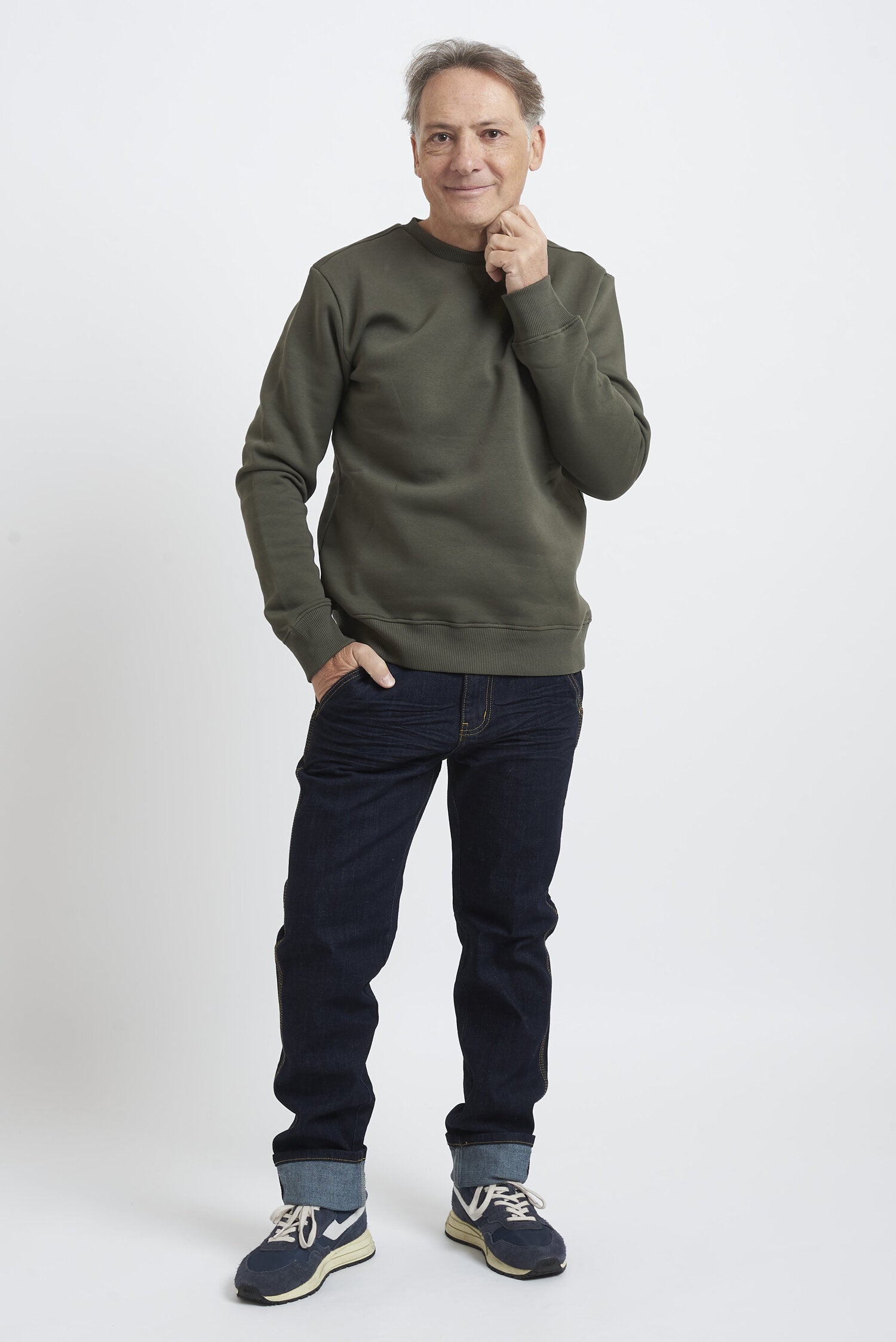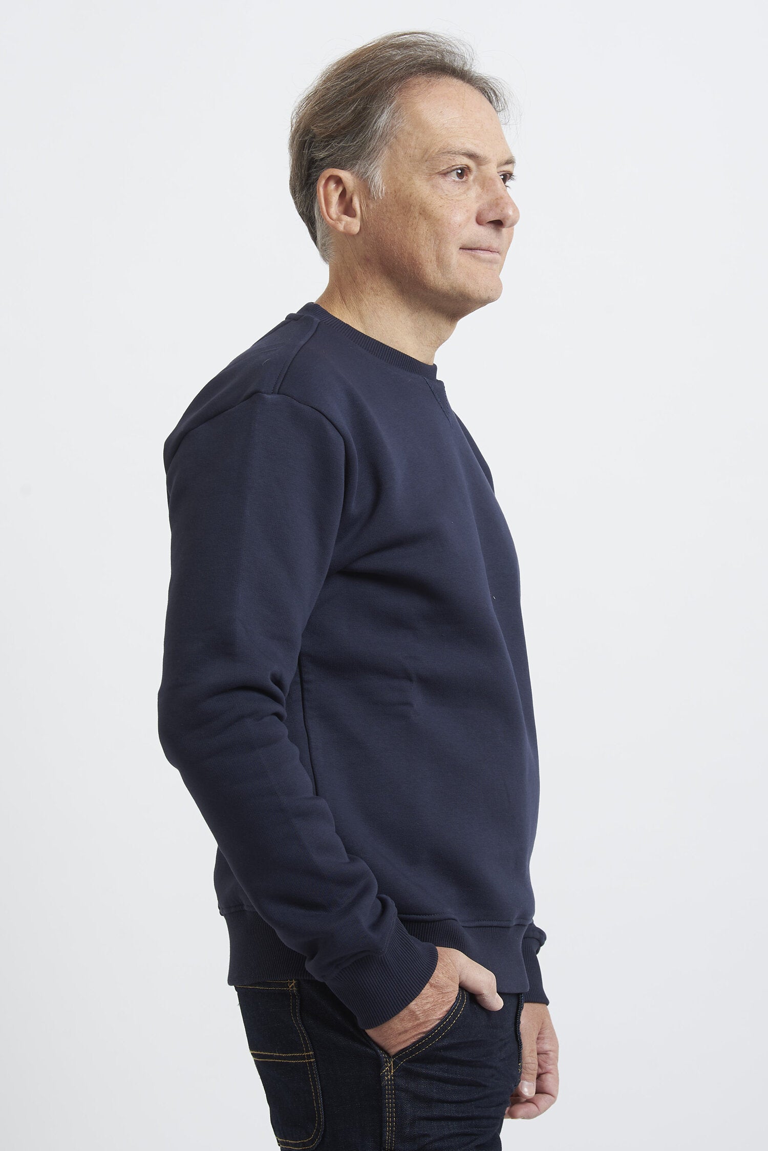 Felpa girocollo Coveri Moving, realizzata in soffice e caldo cotone di peso invernale. L'interno è rifinito di tessuto felpato. Il collo, i polsi e la balza sono lavorati a costina. Sotto al collo è presente una caratteristica lavorazione a V anch'essa lavorata a costina. La vestibilità è regolare. Composizione: 65% cotone - 35% poliestere.