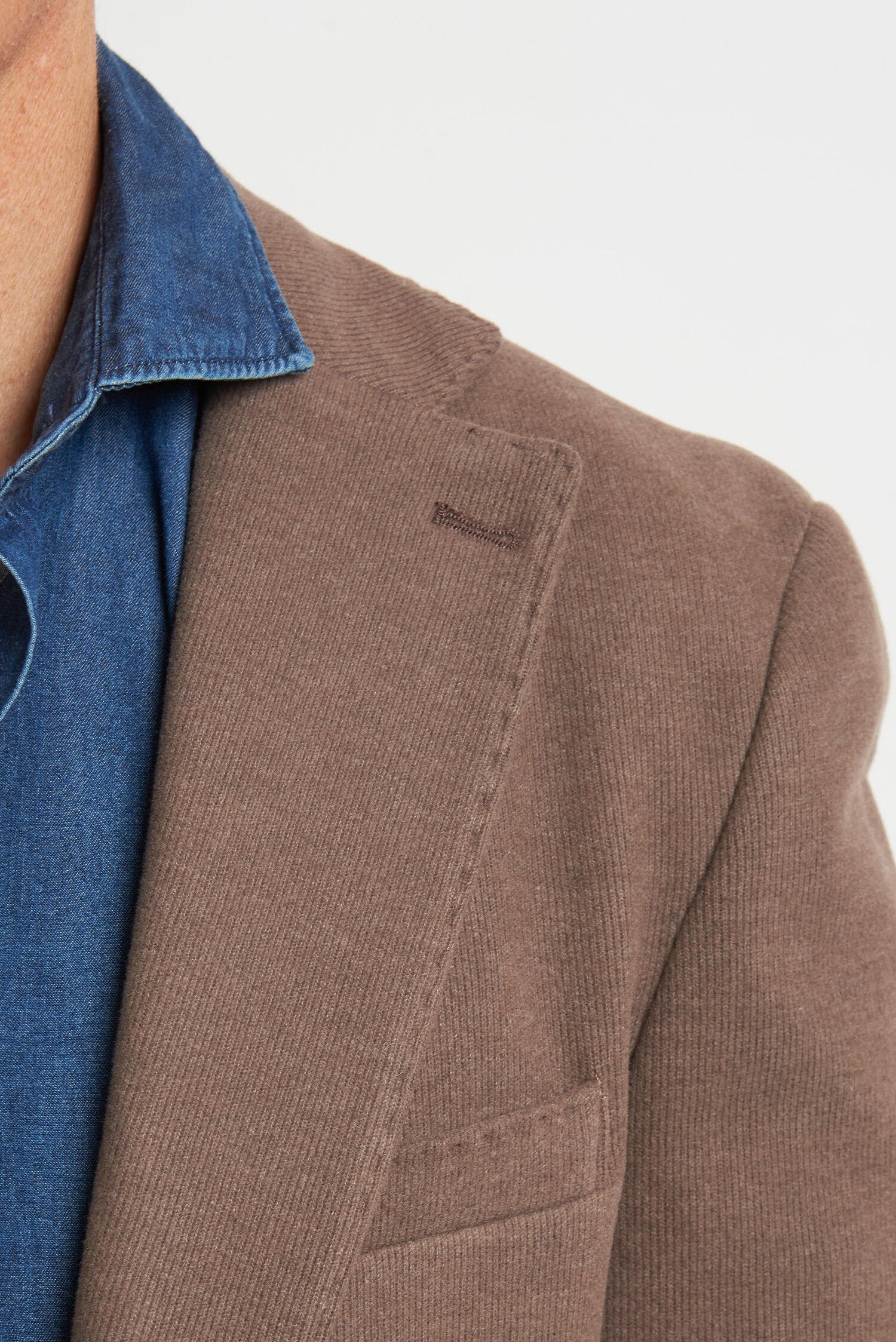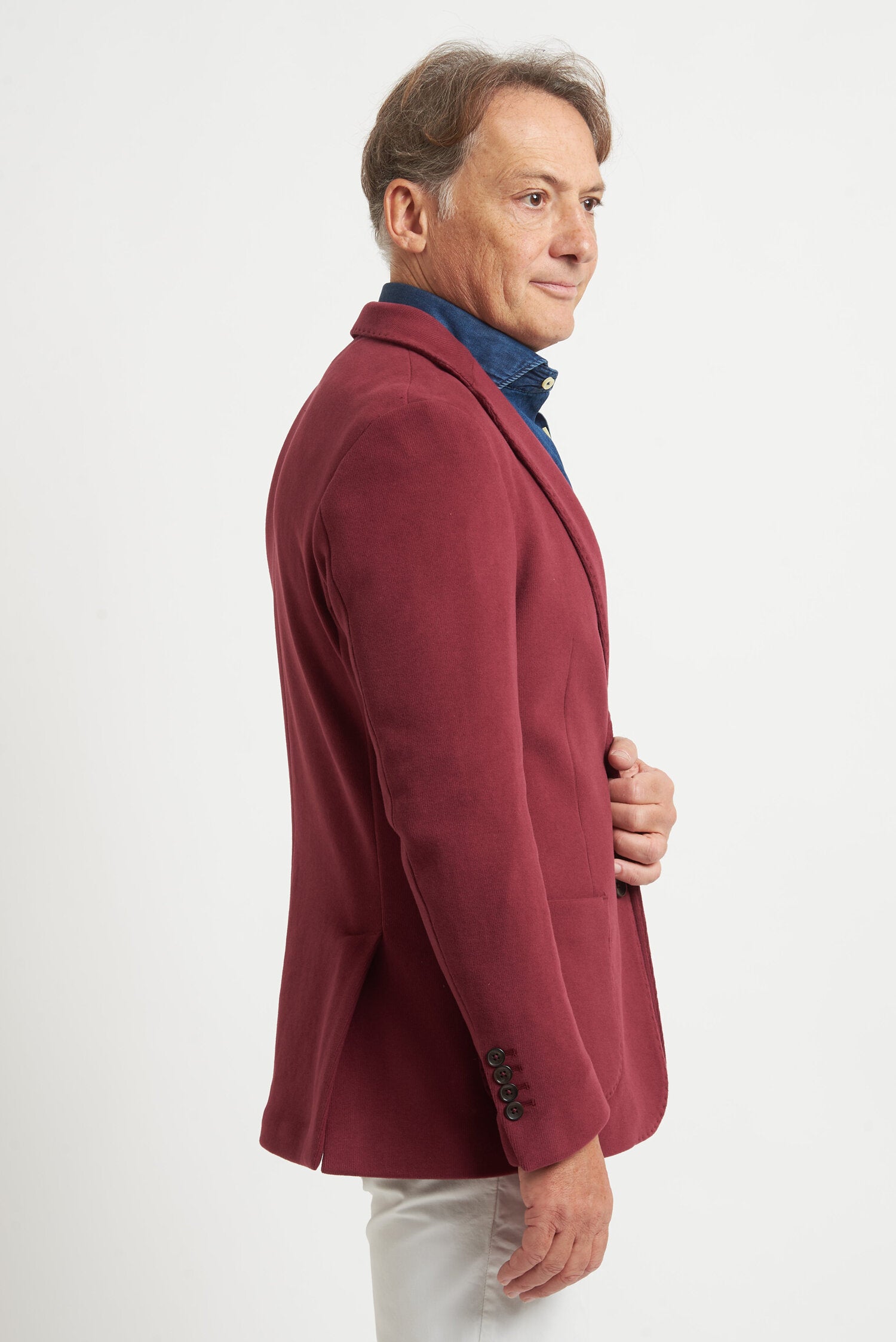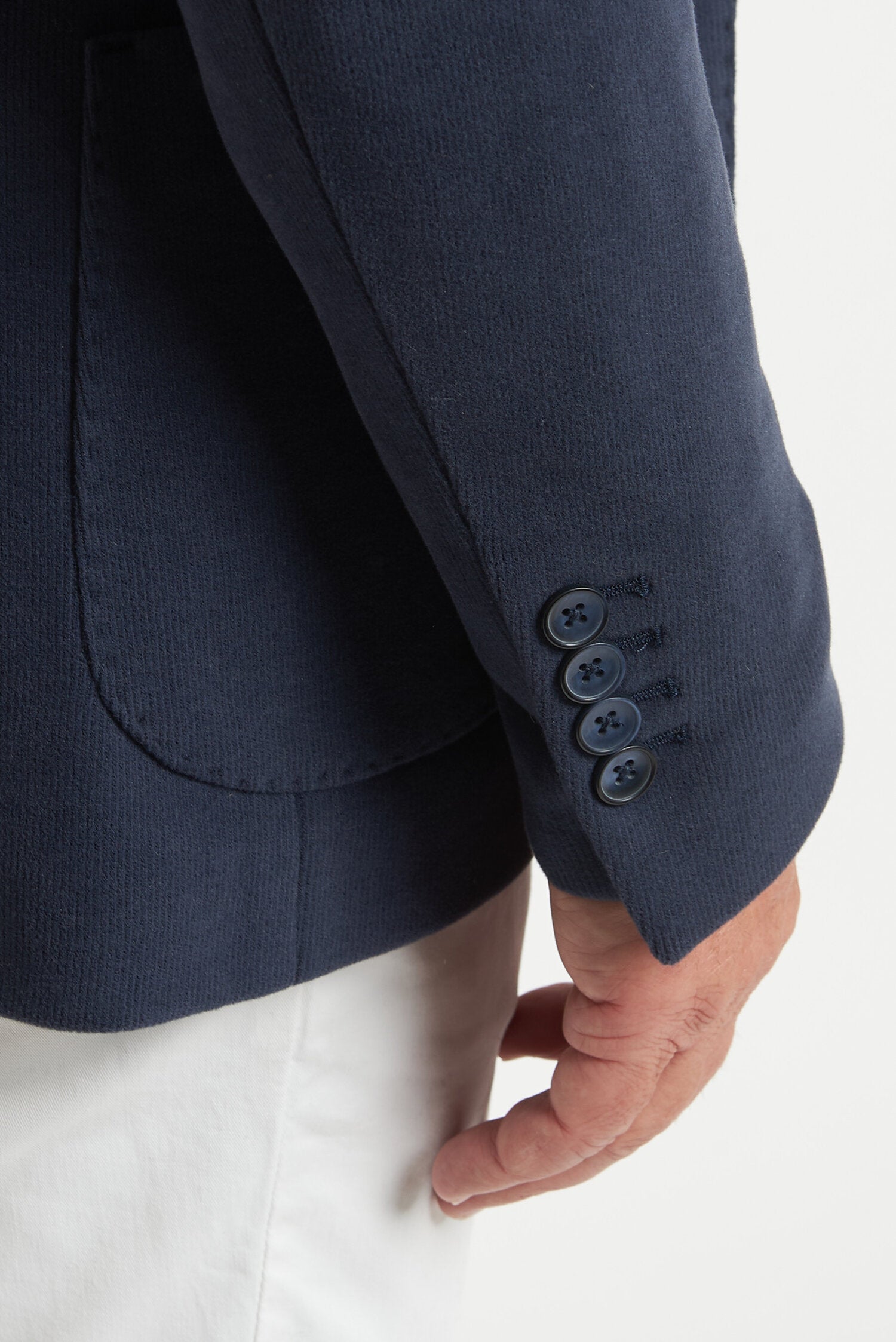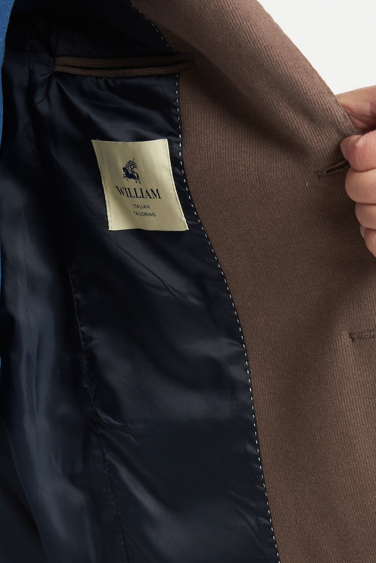 Giacca WILLIAM in tinta unita realizzata in un avvolgente cotone millerighe di peso consistente. La giacca è confezionata in modo sartoriale, di gusto napoletano, ed è completamente sfoderata per valorizzare la lavorazione e la pulizia interna. È caratterizzata dall'avere la spallina svuotata, il rever liscio, classico 8 cm e impunturato, tasca a barchetta sul petto, asole aperte alle maniche e tasche laterali applicate a toppa, anch'esse impunturate. Dietro chiude sul fondo con il doppio spacco. La vestibilità è regolare. Composizione: 100% cotone