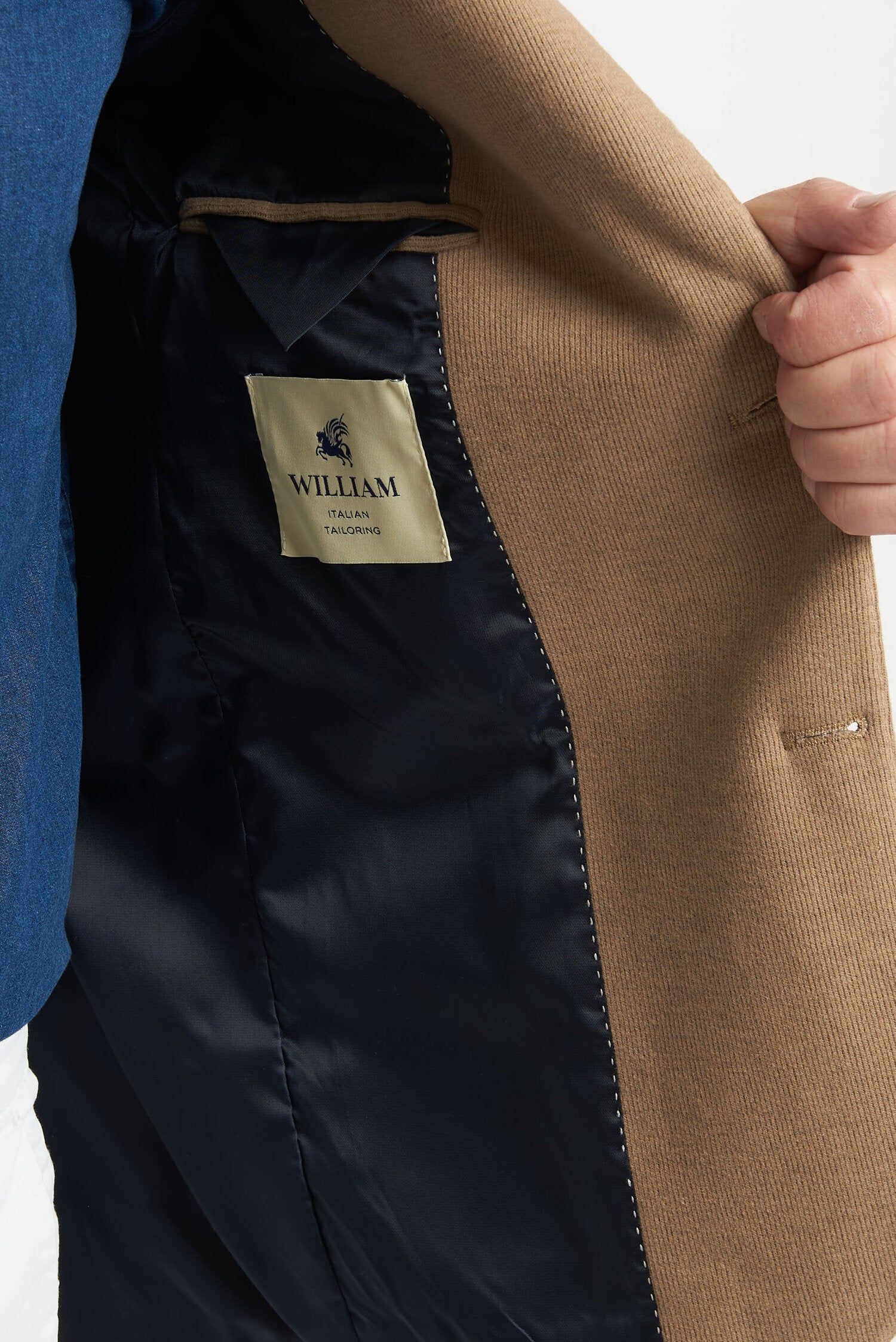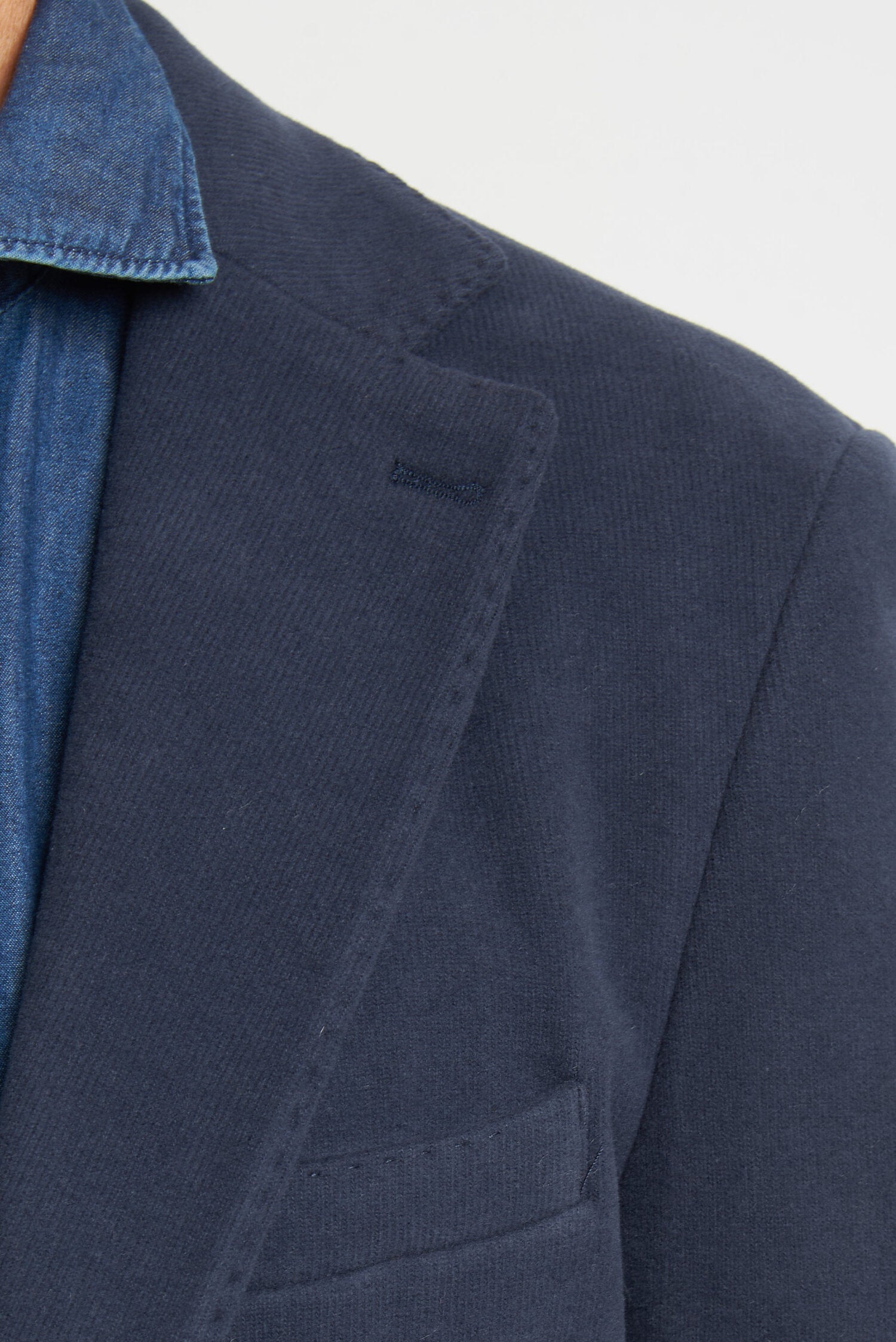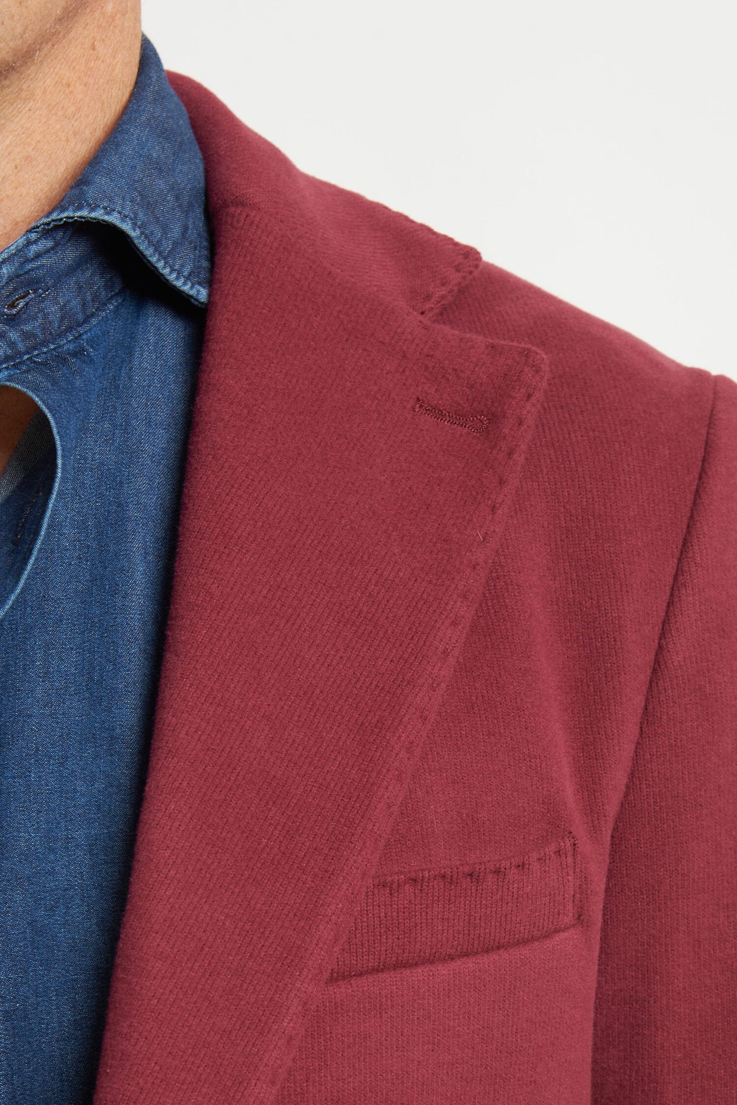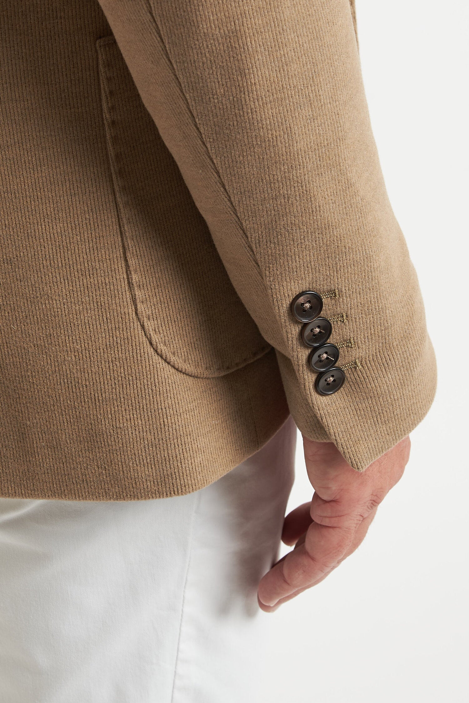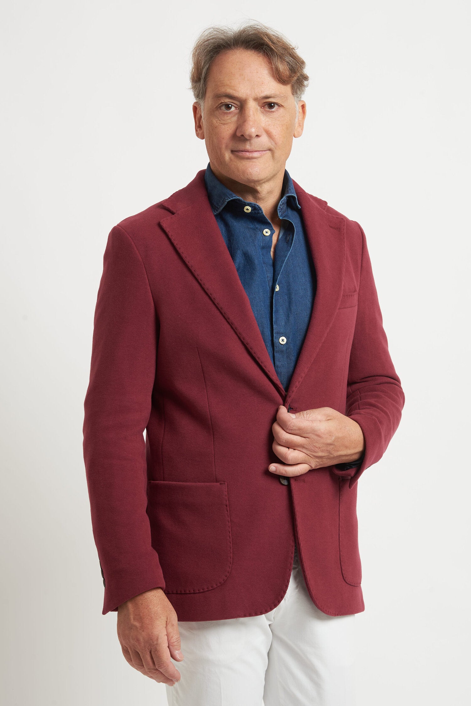Giacca WILLIAM in tinta unita realizzata in un avvolgente cotone millerighe di peso consistente. La giacca è confezionata in modo sartoriale, di gusto napoletano, ed è completamente sfoderata per valorizzare la lavorazione e la pulizia interna. È caratterizzata dall'avere la spallina svuotata, il rever liscio, classico 8 cm e impunturato, tasca a barchetta sul petto, asole aperte alle maniche e tasche laterali applicate a toppa, anch'esse impunturate. Dietro chiude sul fondo con il doppio spacco. La vestibilità è regolare. Composizione: 100% cotone