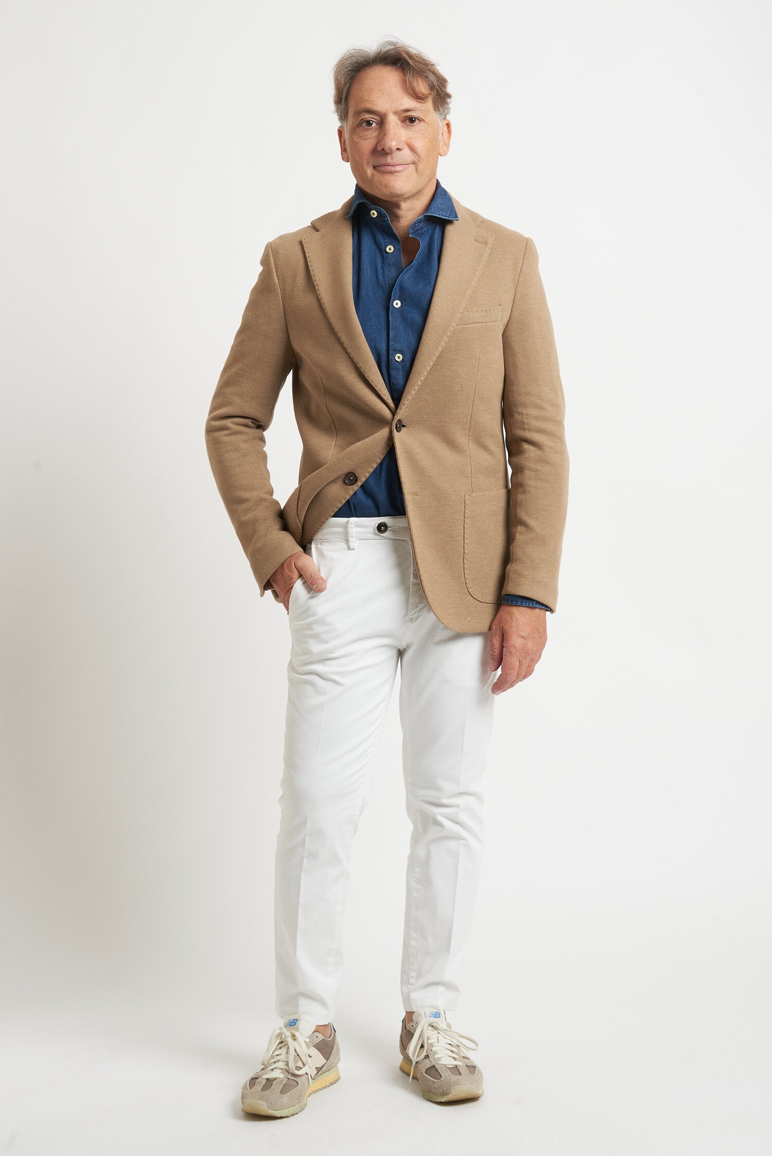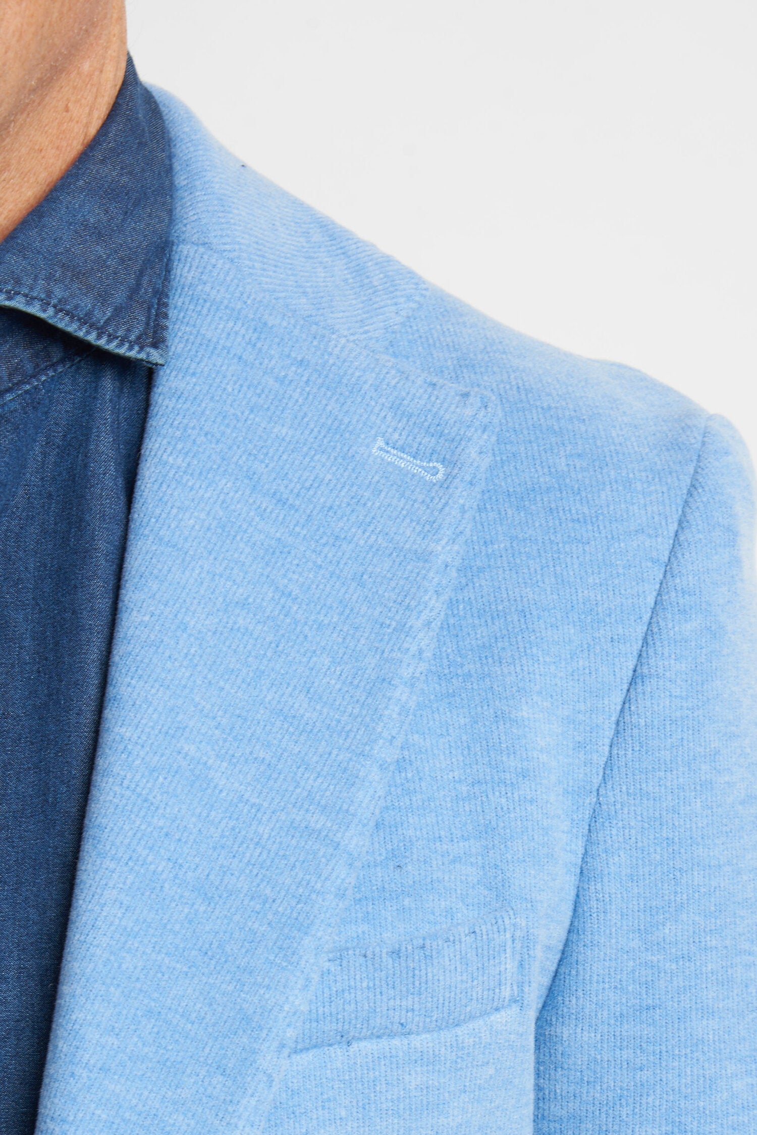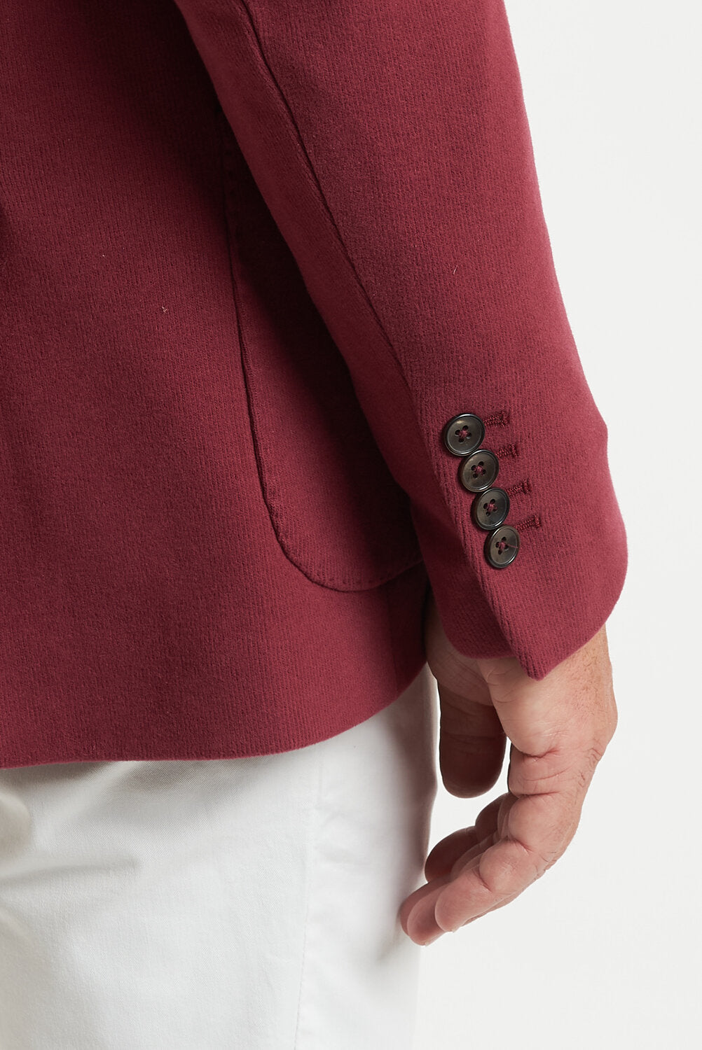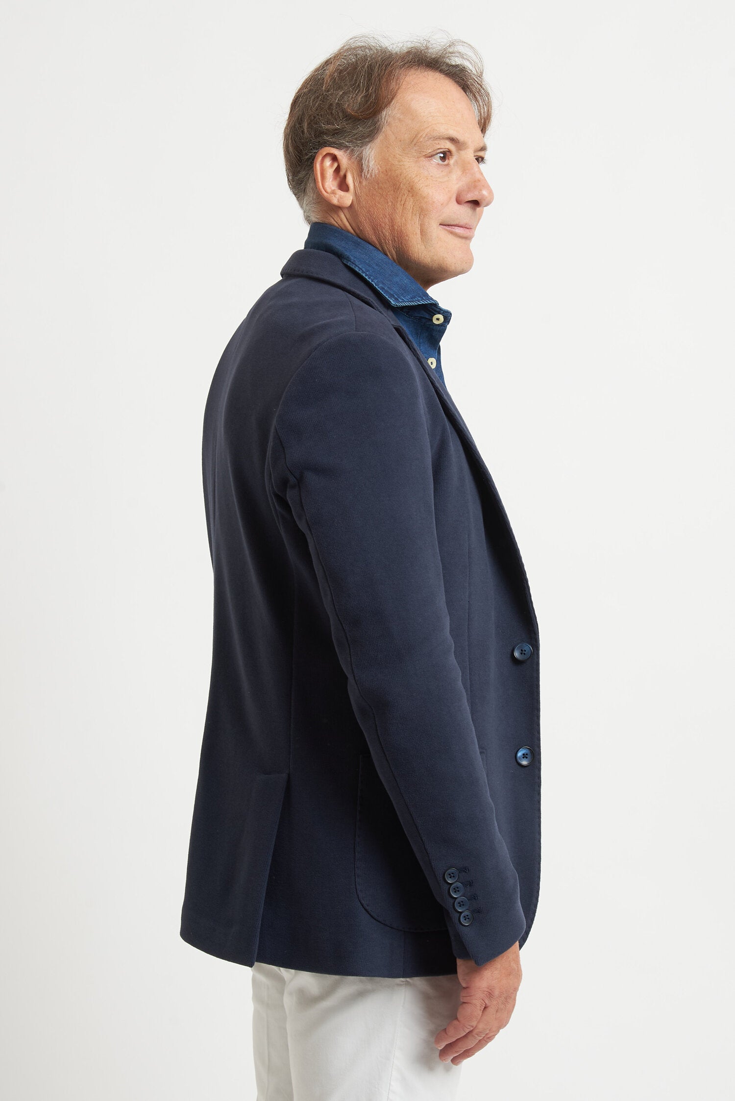 Giacca WILLIAM in tinta unita realizzata in un avvolgente cotone millerighe di peso consistente. La giacca è confezionata in modo sartoriale, di gusto napoletano, ed è completamente sfoderata per valorizzare la lavorazione e la pulizia interna. È caratterizzata dall'avere la spallina svuotata, il rever liscio, classico 8 cm e impunturato, tasca a barchetta sul petto, asole aperte alle maniche e tasche laterali applicate a toppa, anch'esse impunturate. Dietro chiude sul fondo con il doppio spacco. La vestibilità è regolare. Composizione: 100% cotone