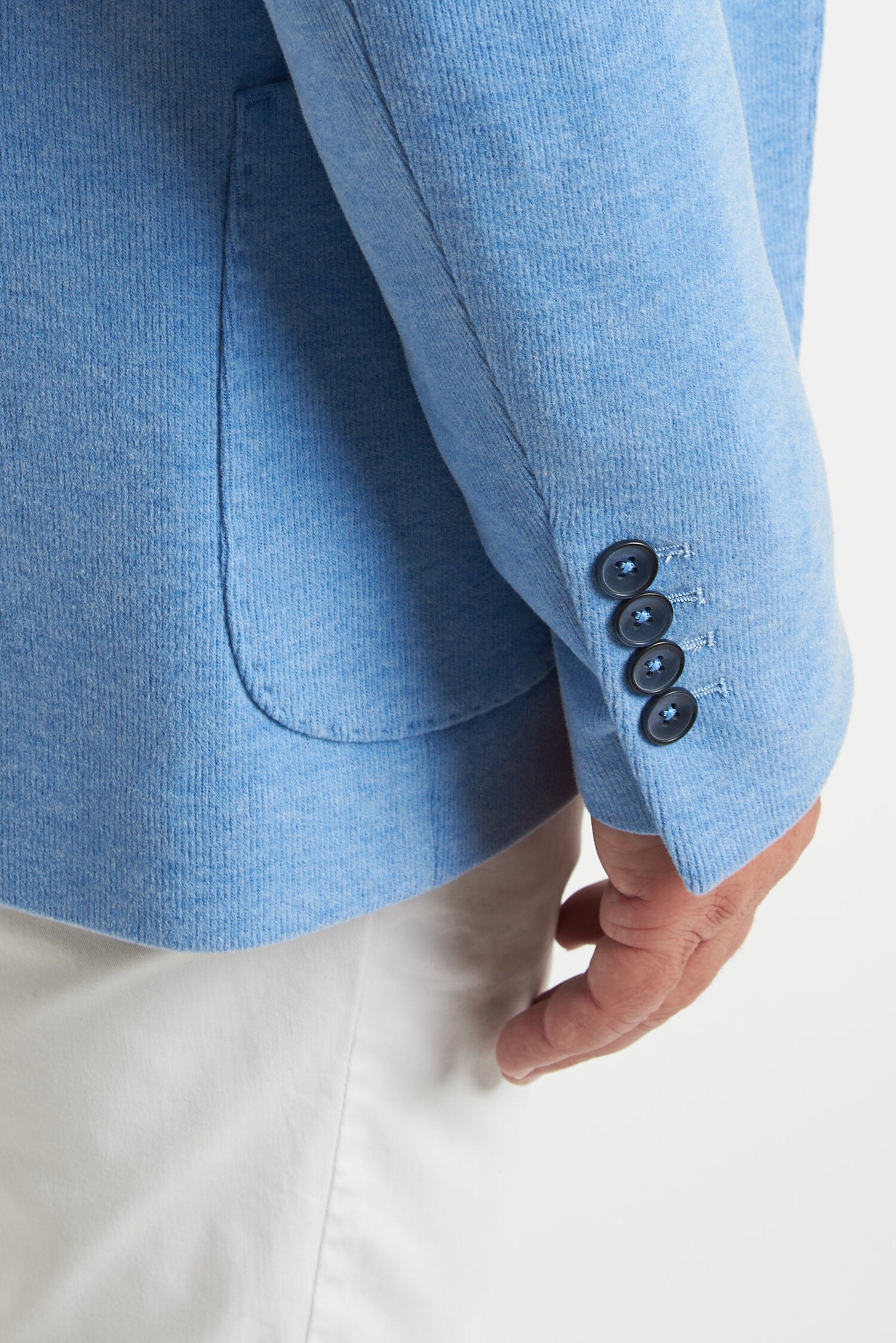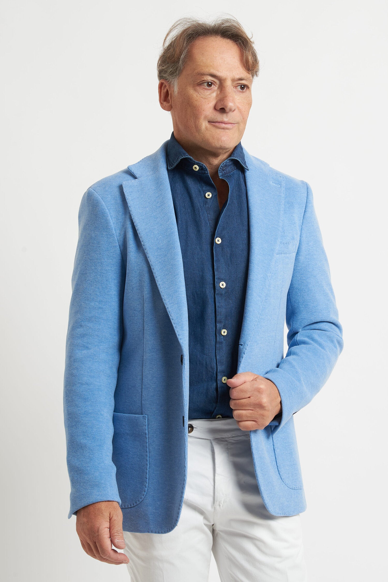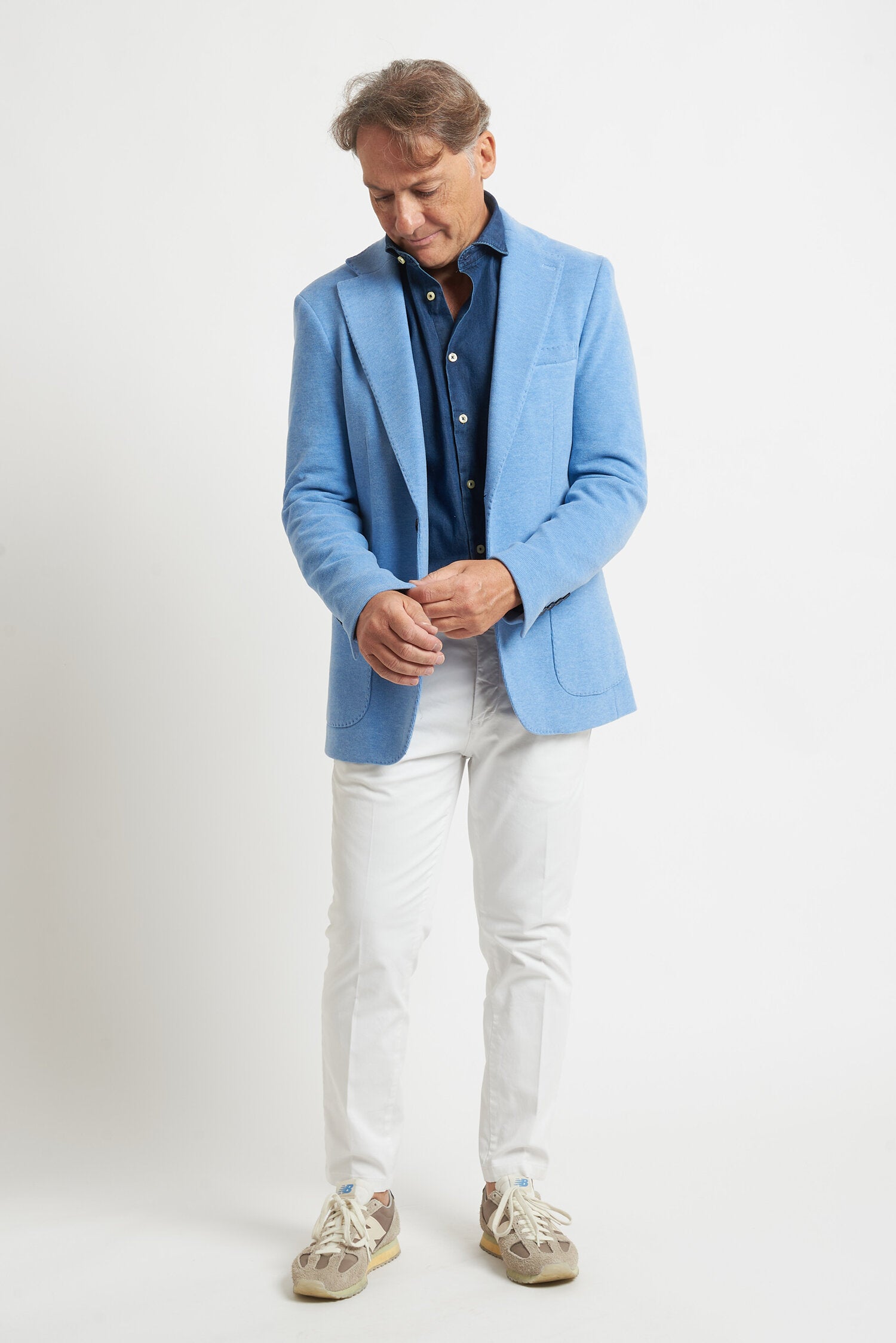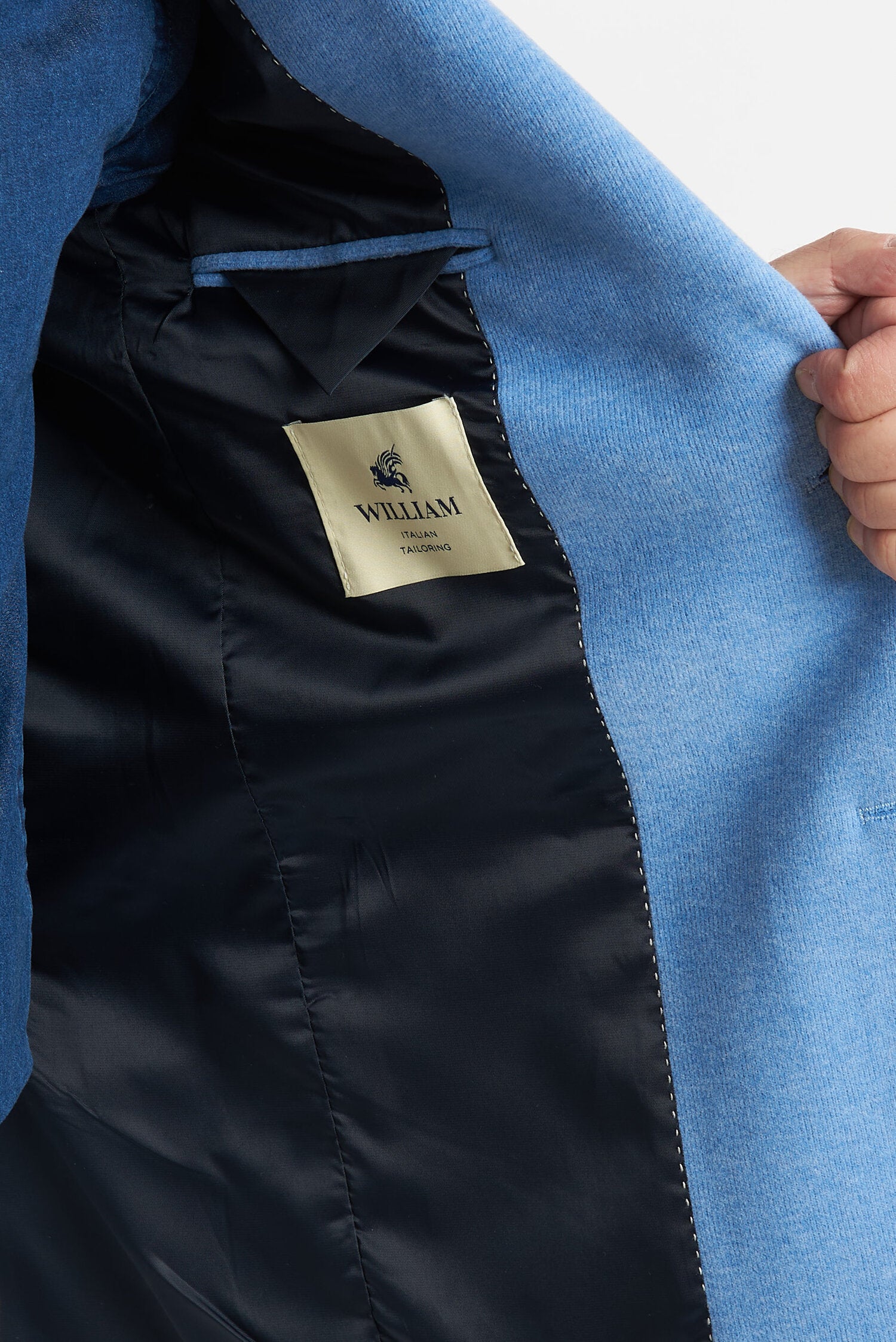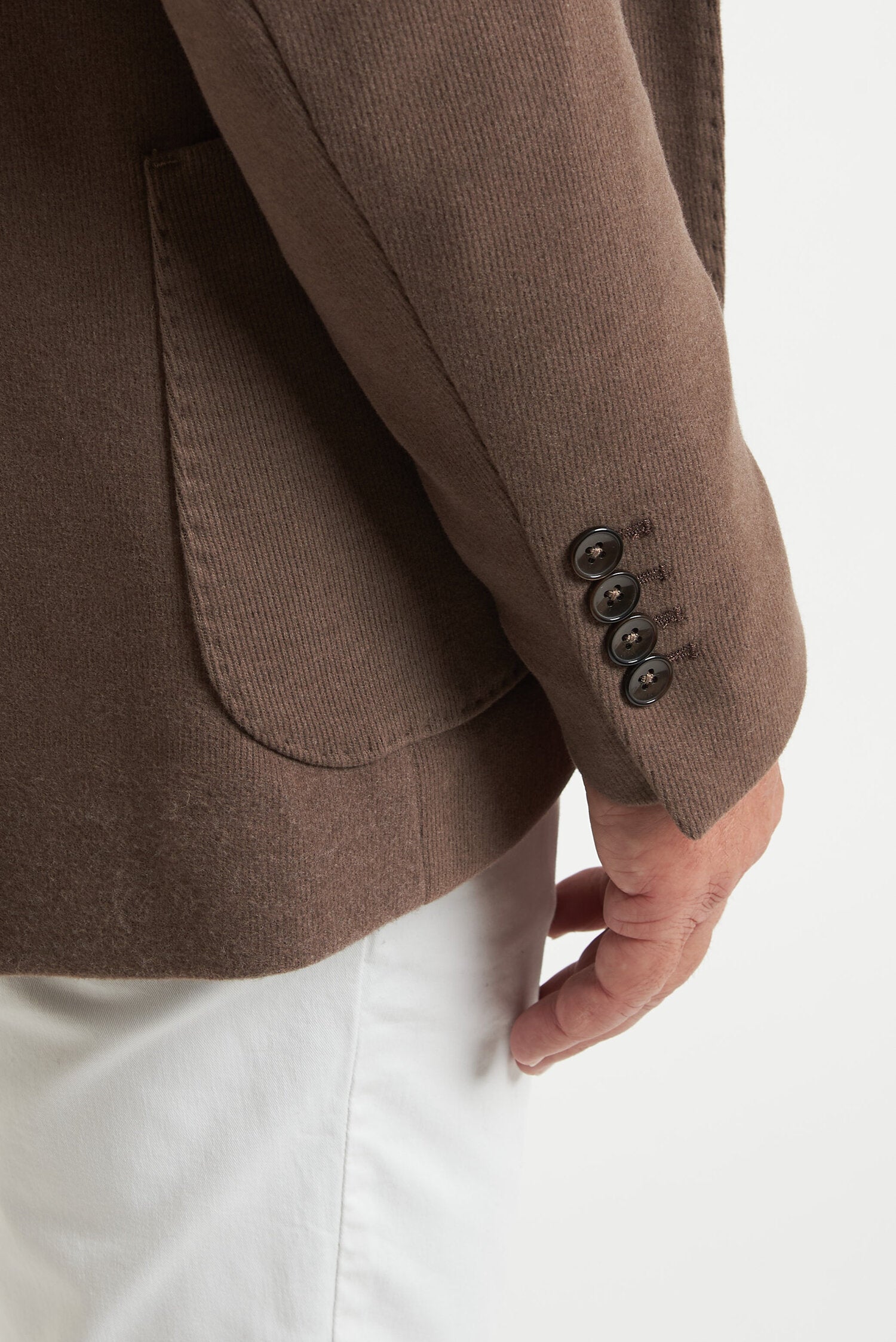 Giacca WILLIAM in tinta unita realizzata in un avvolgente cotone millerighe di peso consistente. La giacca è confezionata in modo sartoriale, di gusto napoletano, ed è completamente sfoderata per valorizzare la lavorazione e la pulizia interna. È caratterizzata dall'avere la spallina svuotata, il rever liscio, classico 8 cm e impunturato, tasca a barchetta sul petto, asole aperte alle maniche e tasche laterali applicate a toppa, anch'esse impunturate. Dietro chiude sul fondo con il doppio spacco. La vestibilità è regolare. Composizione: 100% cotone