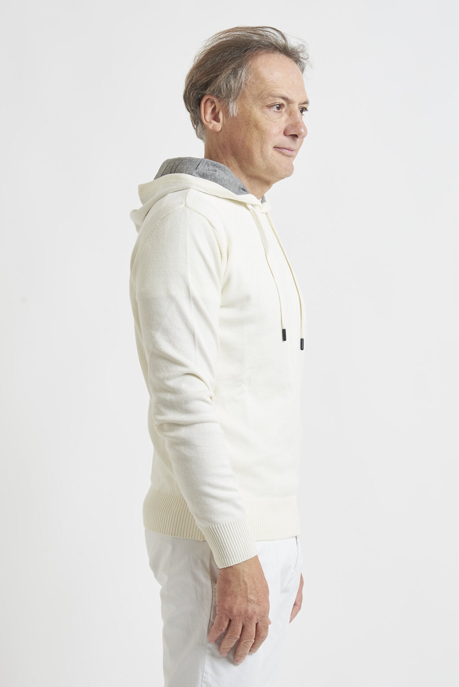 Pullover felpa BRUNO BASSI, realizzato in morbida e calda viscosa (per saperne di più su questo filato apri il link https://www.vestilanatura.it/fibre-tessili/artificiali/viscosa/). Il capo si contraddistingue per la presenza del cappuccio, che al suo interno ha un rivestimento in jersey a contrasto. Può essere indossato come capo casual, per il tempo libero o per lavoro. Realizzato in spessore finezza 12. La vestibilitàè semi slim. Composizione: 100% viscosa.