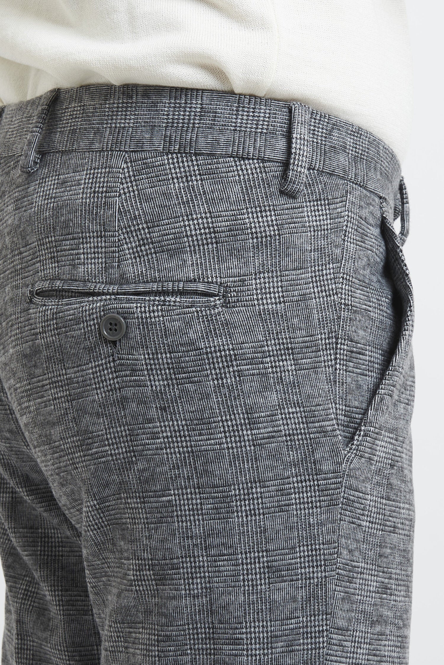 Pantaloni Consorti Milano modello tasca america in fantasia principe di galles, realizzati in pregiata lana. Hanno un fit comodo perchè il tessuto è composto anche da una piccola percentuale di elastan. Ai lati realizzati con tasca all'americana e dietro con tasca con profilo a soffietto e bottone. La vestibilità è regolare. Composizione: 27% lana - 70% viscosa - 3% elastan.
