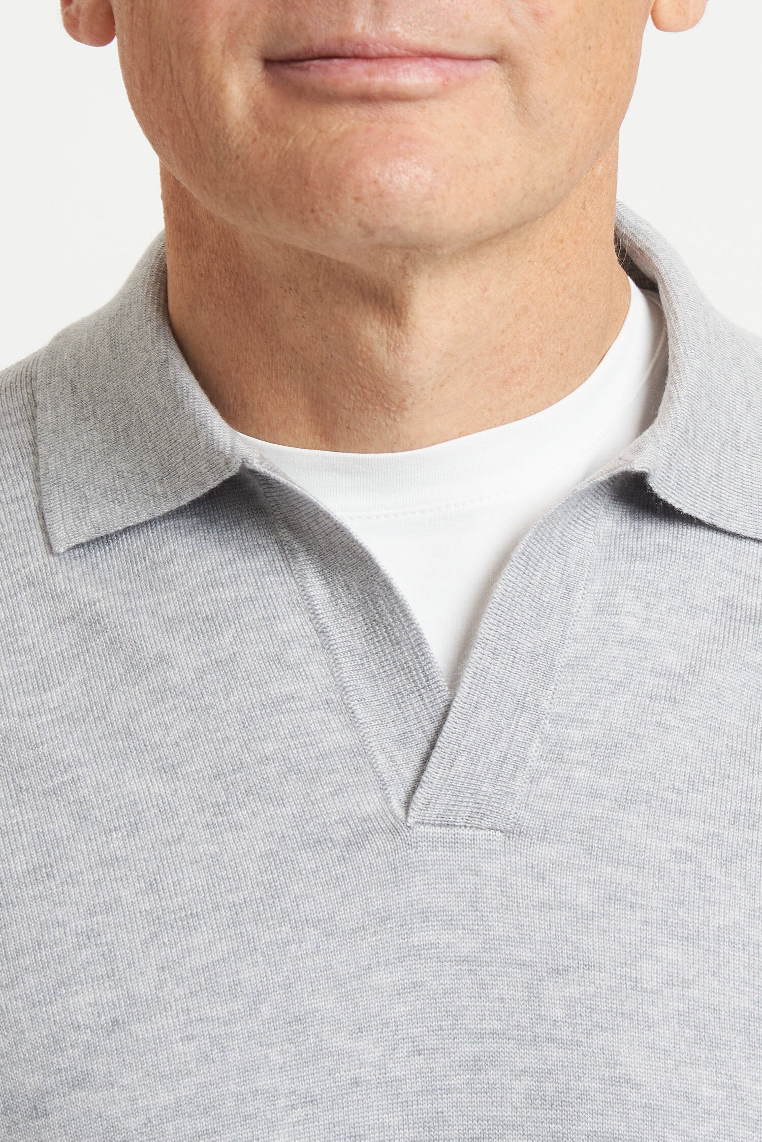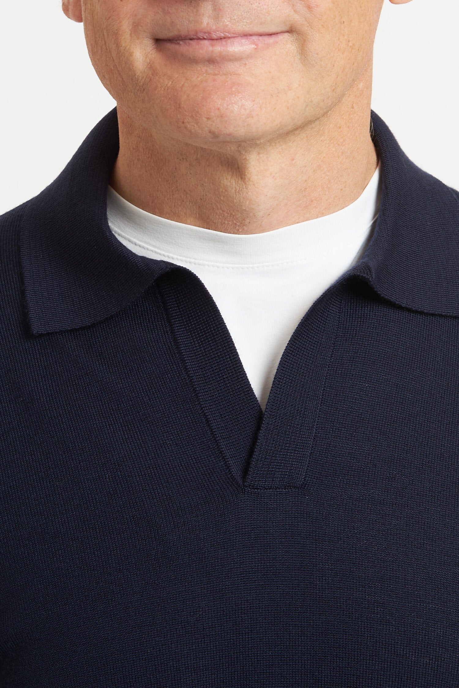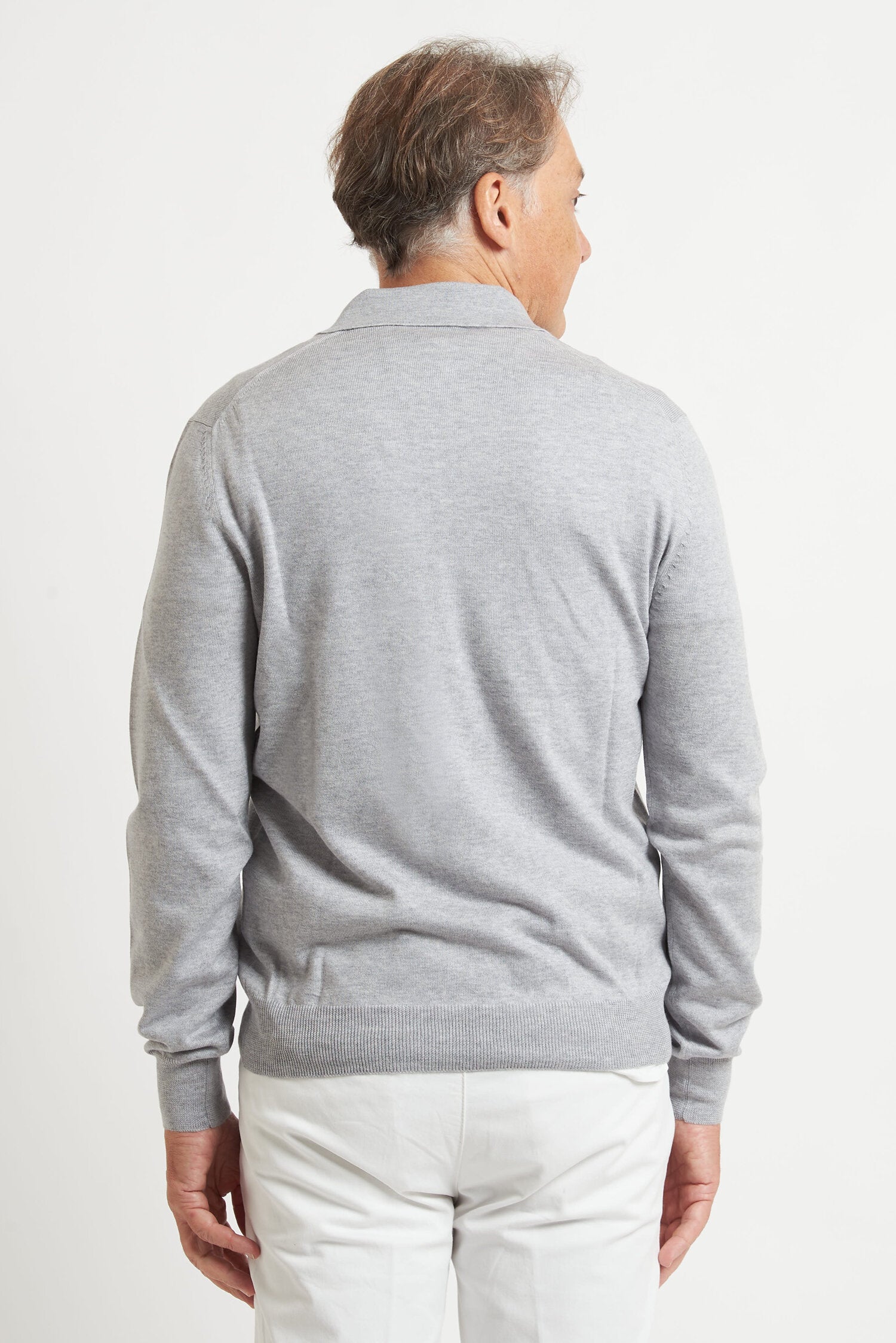Polo con collo derby, senza bottoni, della GRAN SASSO, realizzato in soffice e preziosissimo filato di lana merino extrafine, che gli conferisce un effetto setoso. Un capo raffinato da risultare casual ed elegante allo stesso tempo, e che può essere indossato anche come sottogiacca. Spessore di consistenza media lavorato in finezza 12. Vestibilità regolare. Composizione: 1000% lana merinos extrafine.