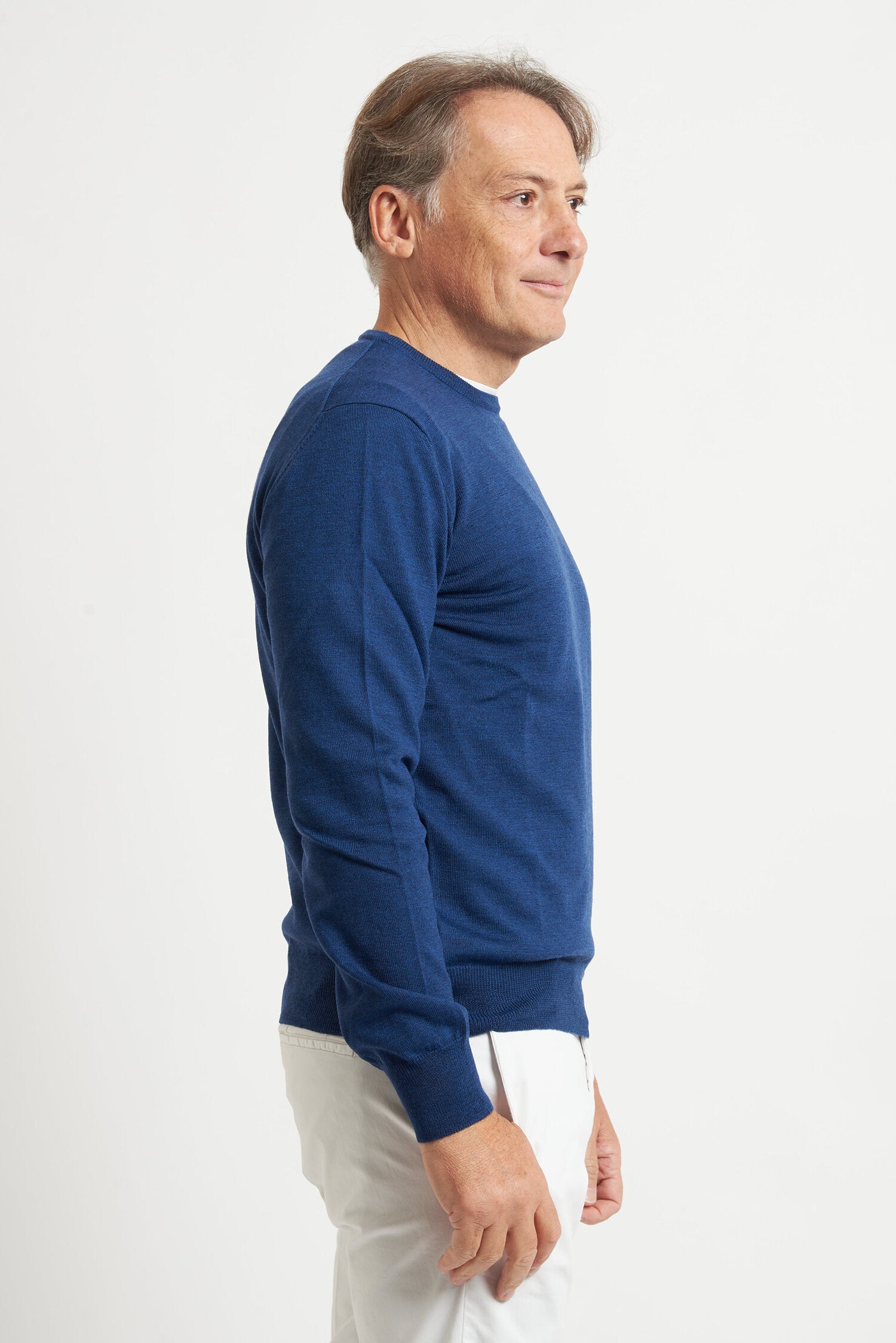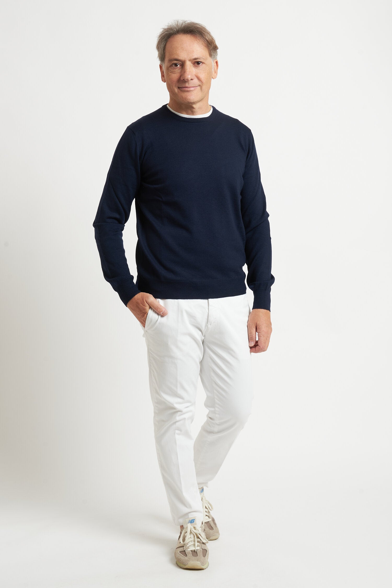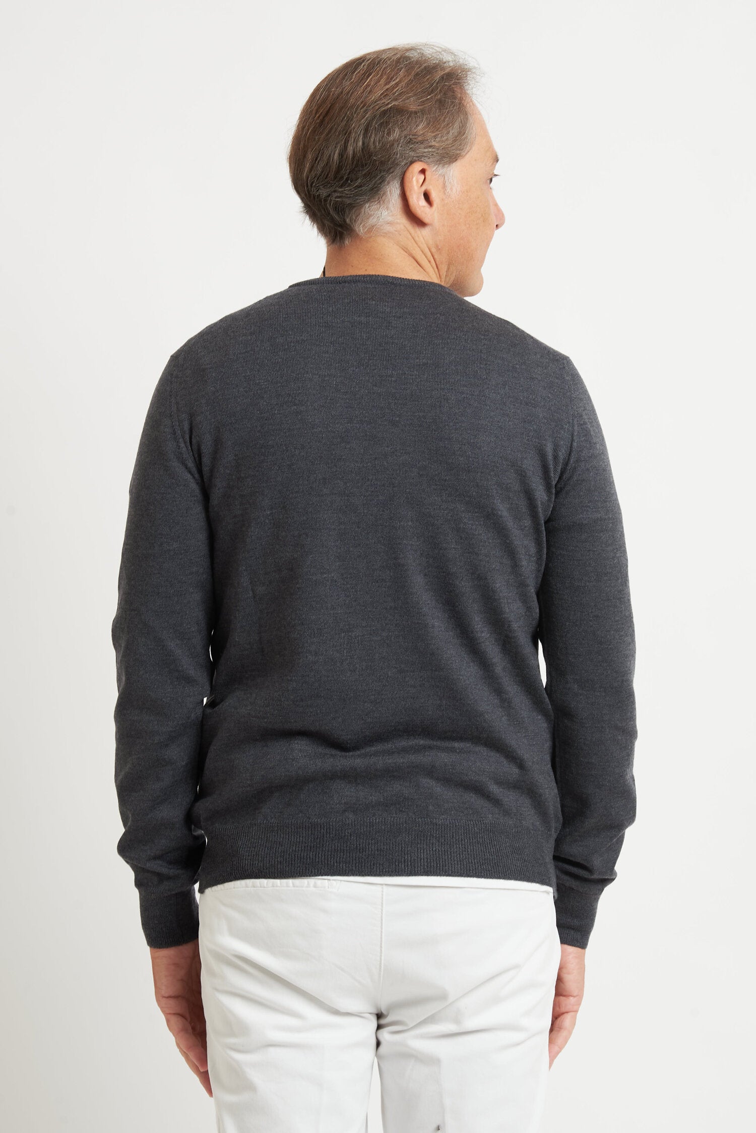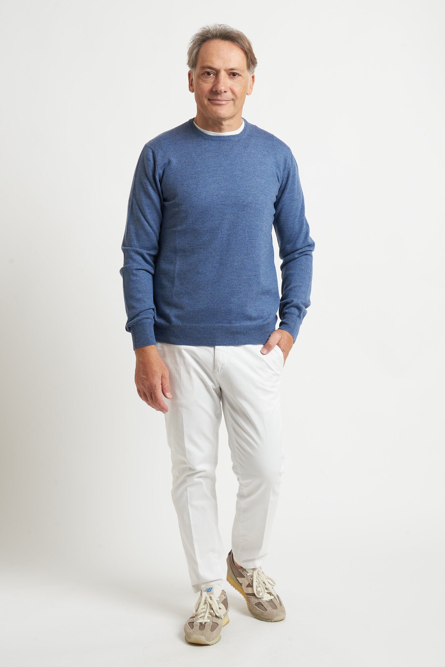 Pullover girocollo GRAN SASSO, realizzato in soffice e preziosissimo filato di lana merino extrafine, che gli conferisce un effetto setoso. Un capo raffinato da risultare casual ed elegante allo stesso tempo, e che può essere indossato anche come sottogiacca. Spessore di consistenza media lavorato in finezza 12. Vestibilità regolare. Composizione: 1000% lana merinos extrafine.