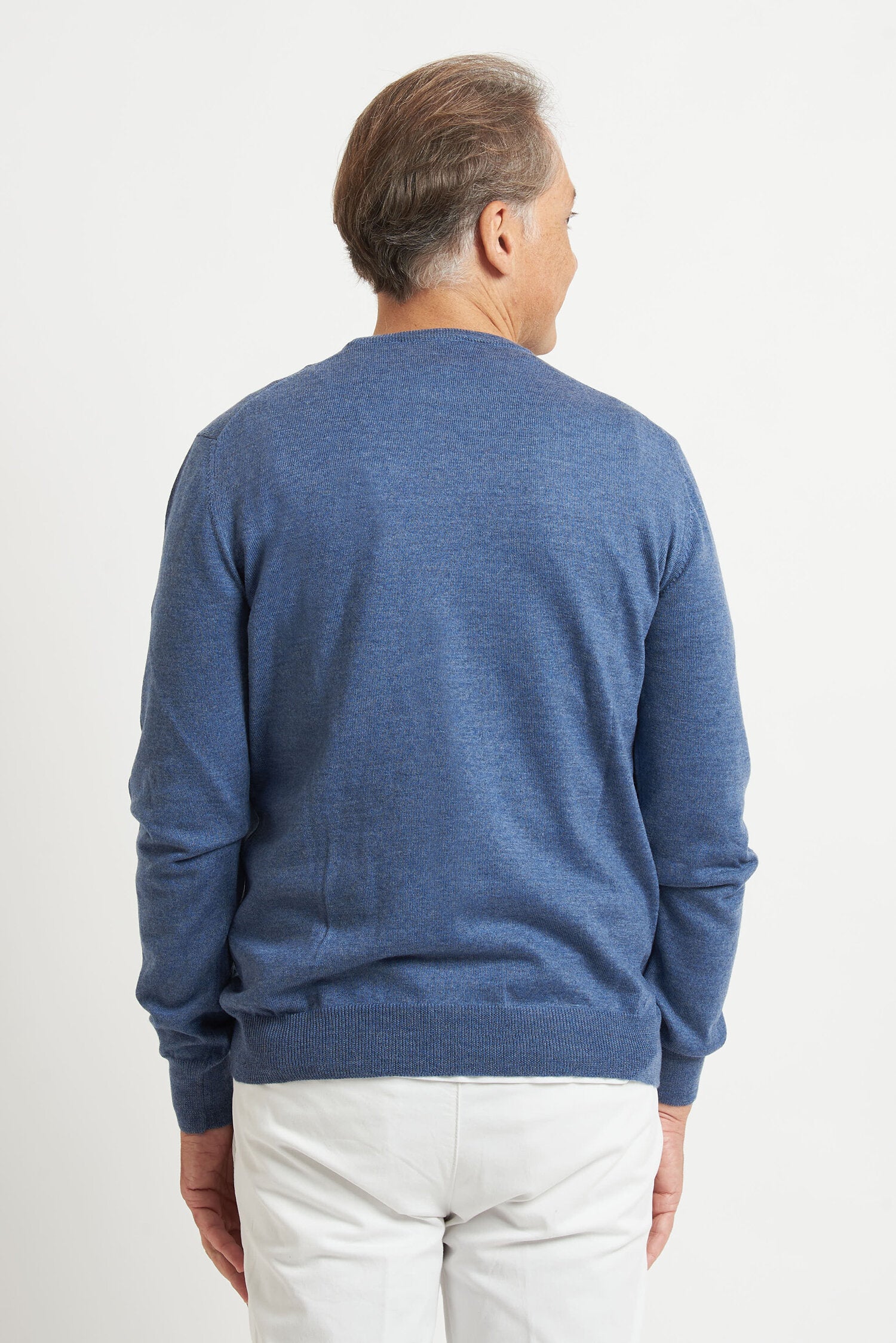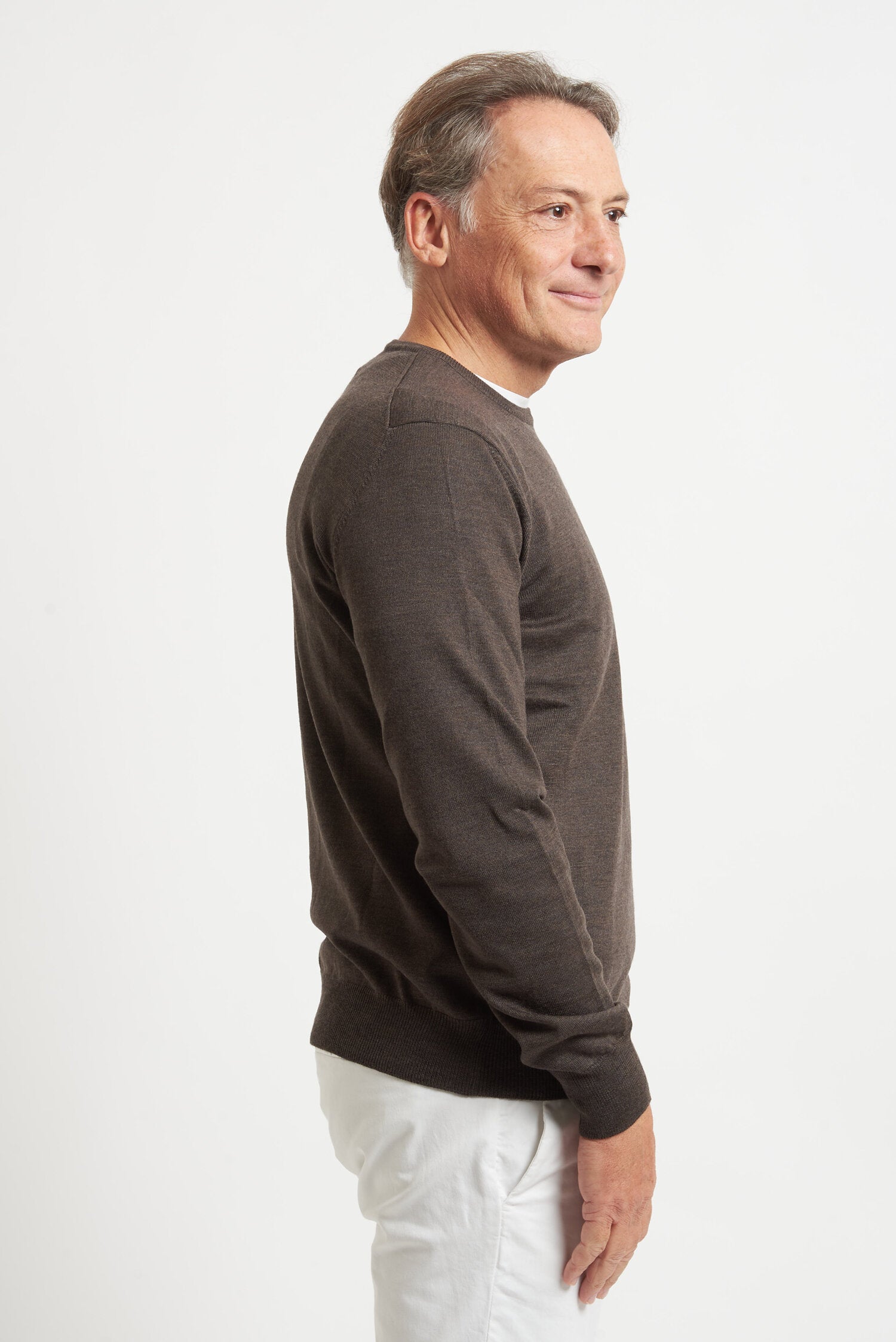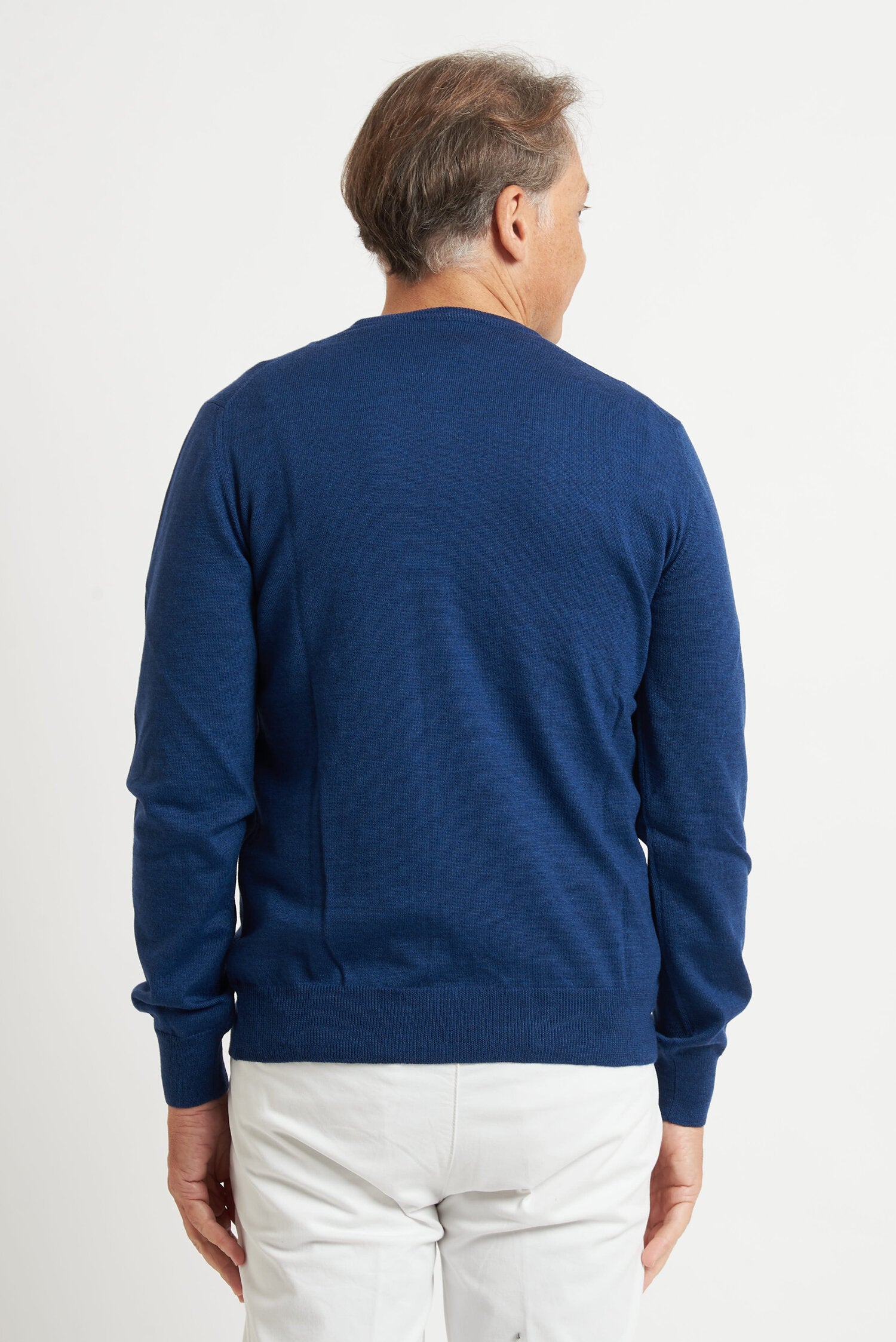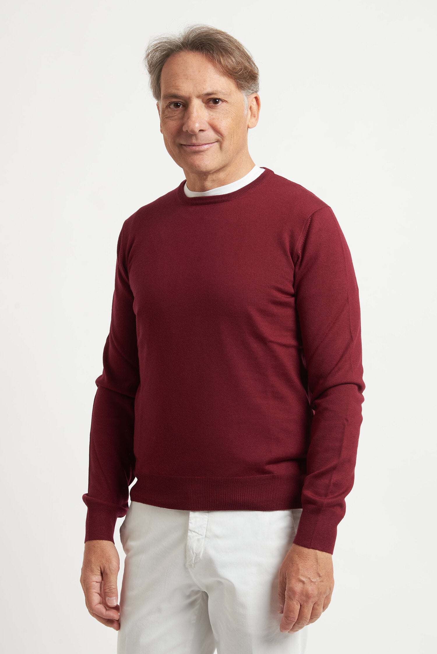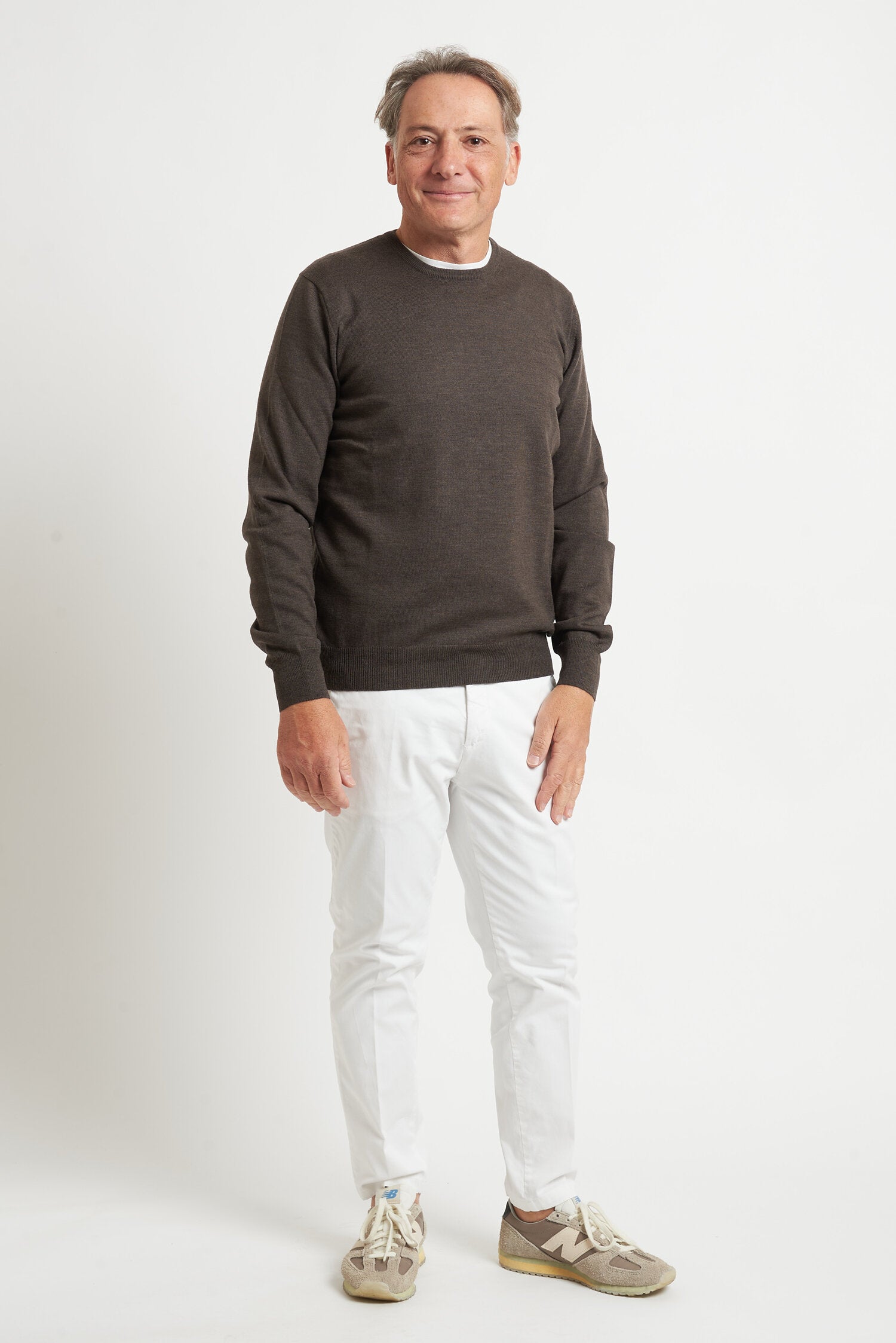 Pullover girocollo GRAN SASSO, realizzato in soffice e preziosissimo filato di lana merino extrafine, che gli conferisce un effetto setoso. Un capo raffinato da risultare casual ed elegante allo stesso tempo, e che può essere indossato anche come sottogiacca. Spessore di consistenza media lavorato in finezza 12. Vestibilità regolare. Composizione: 1000% lana merinos extrafine.