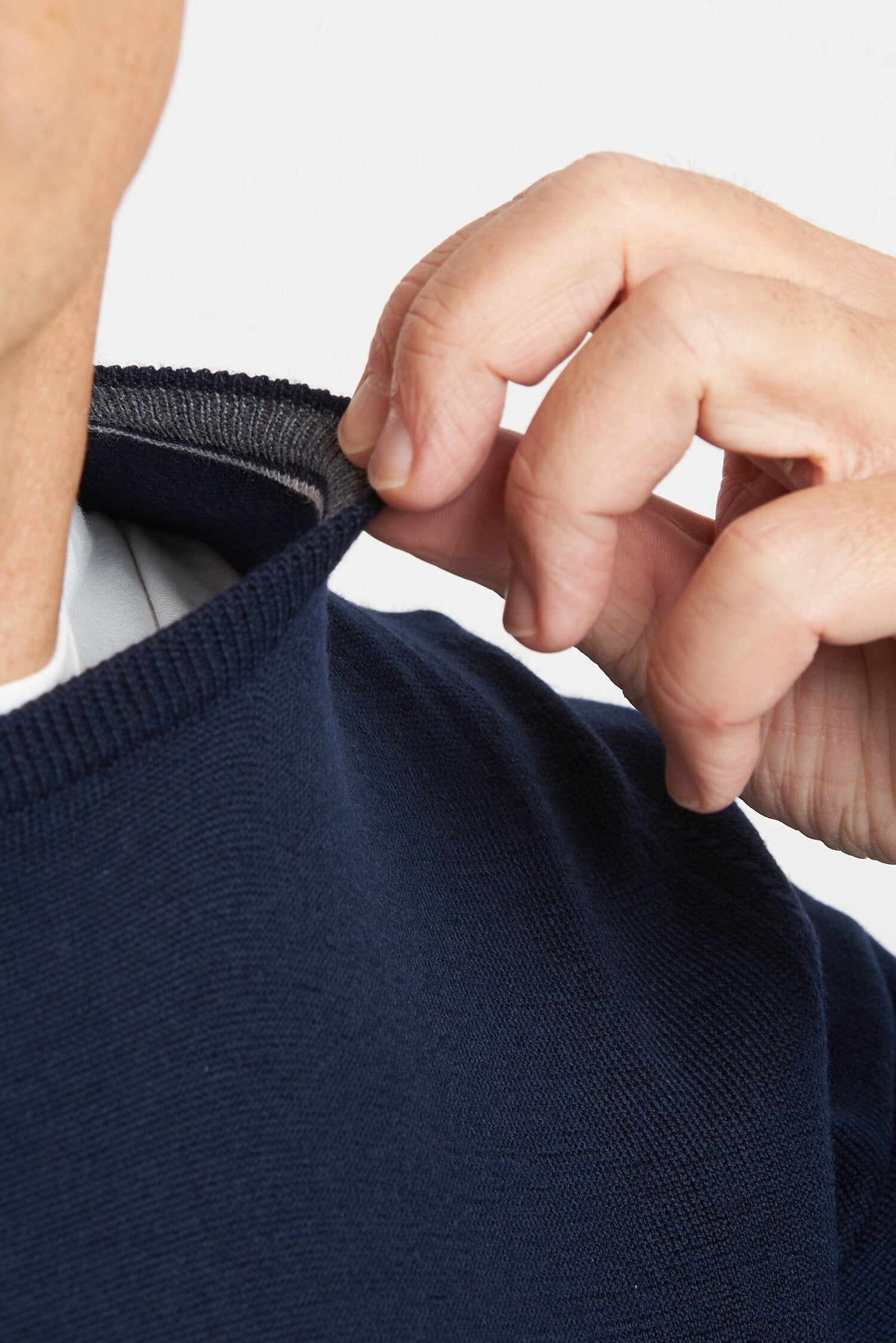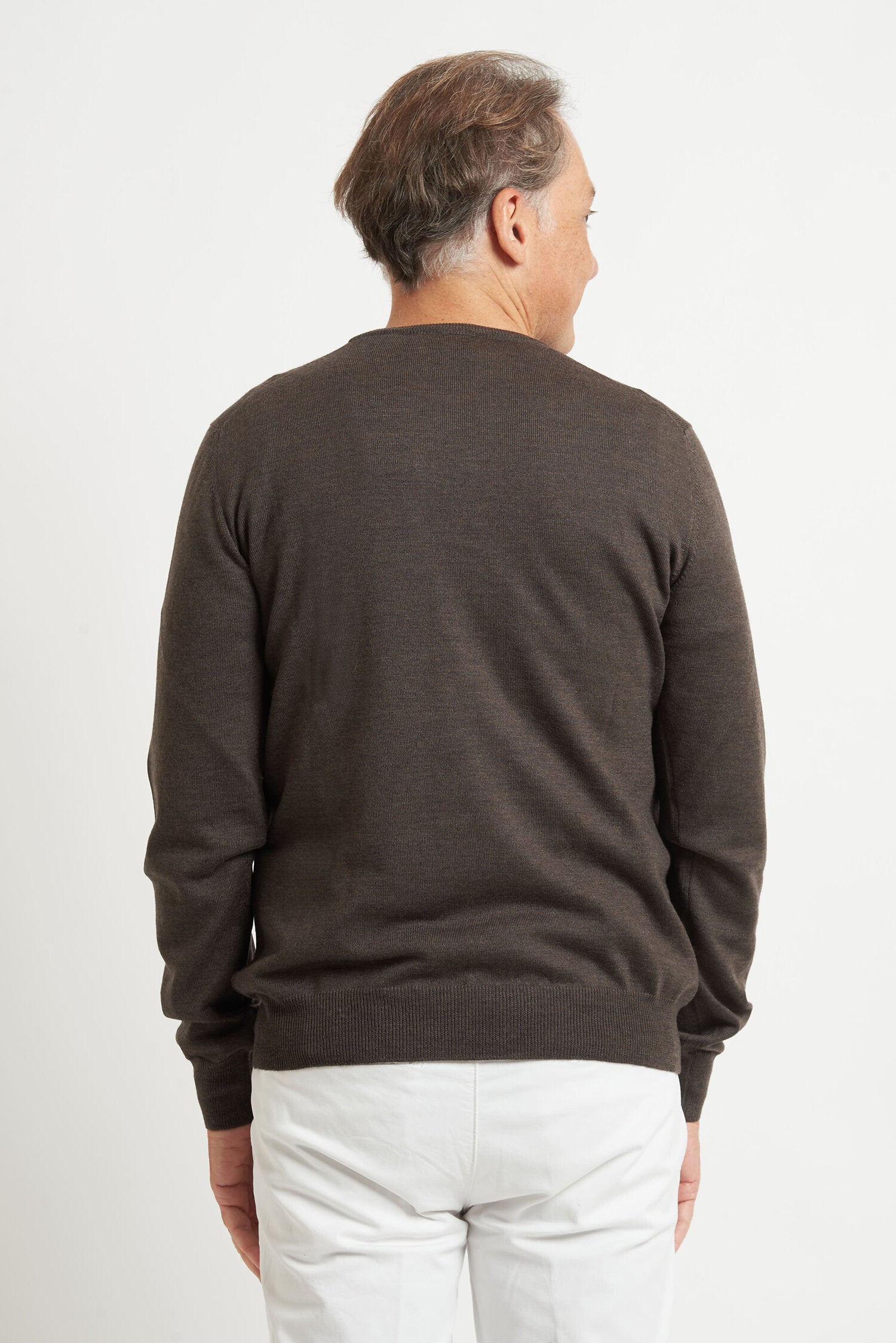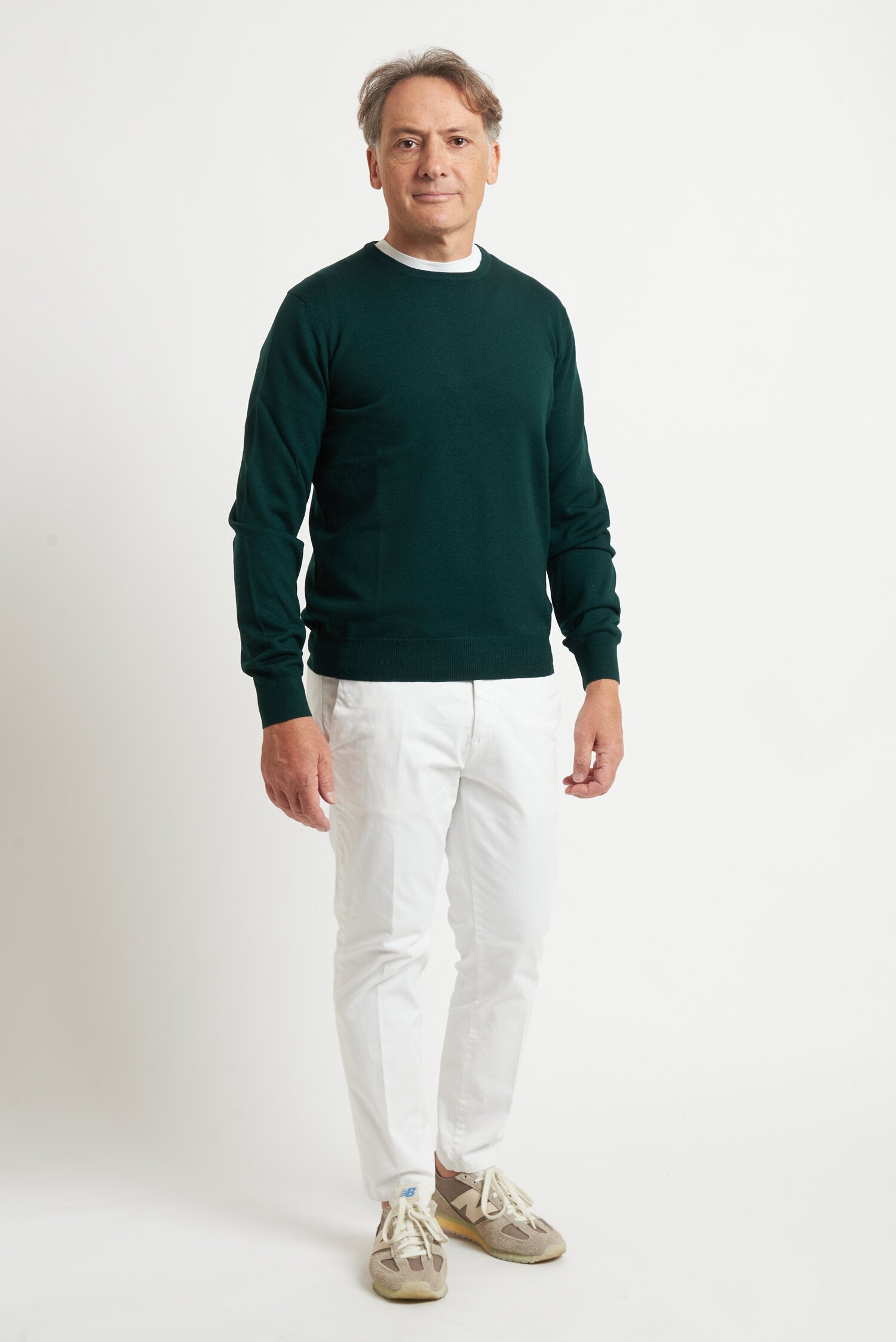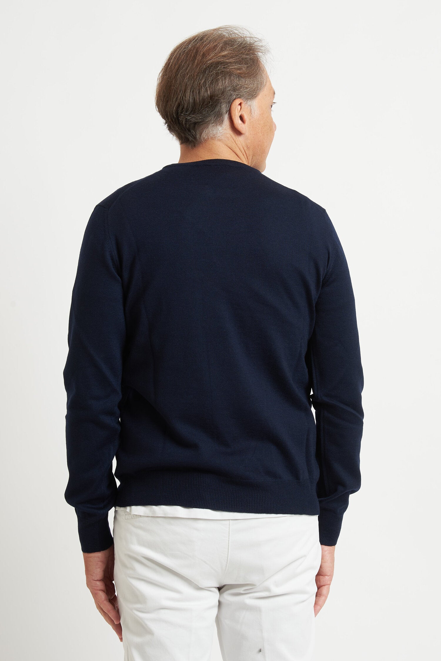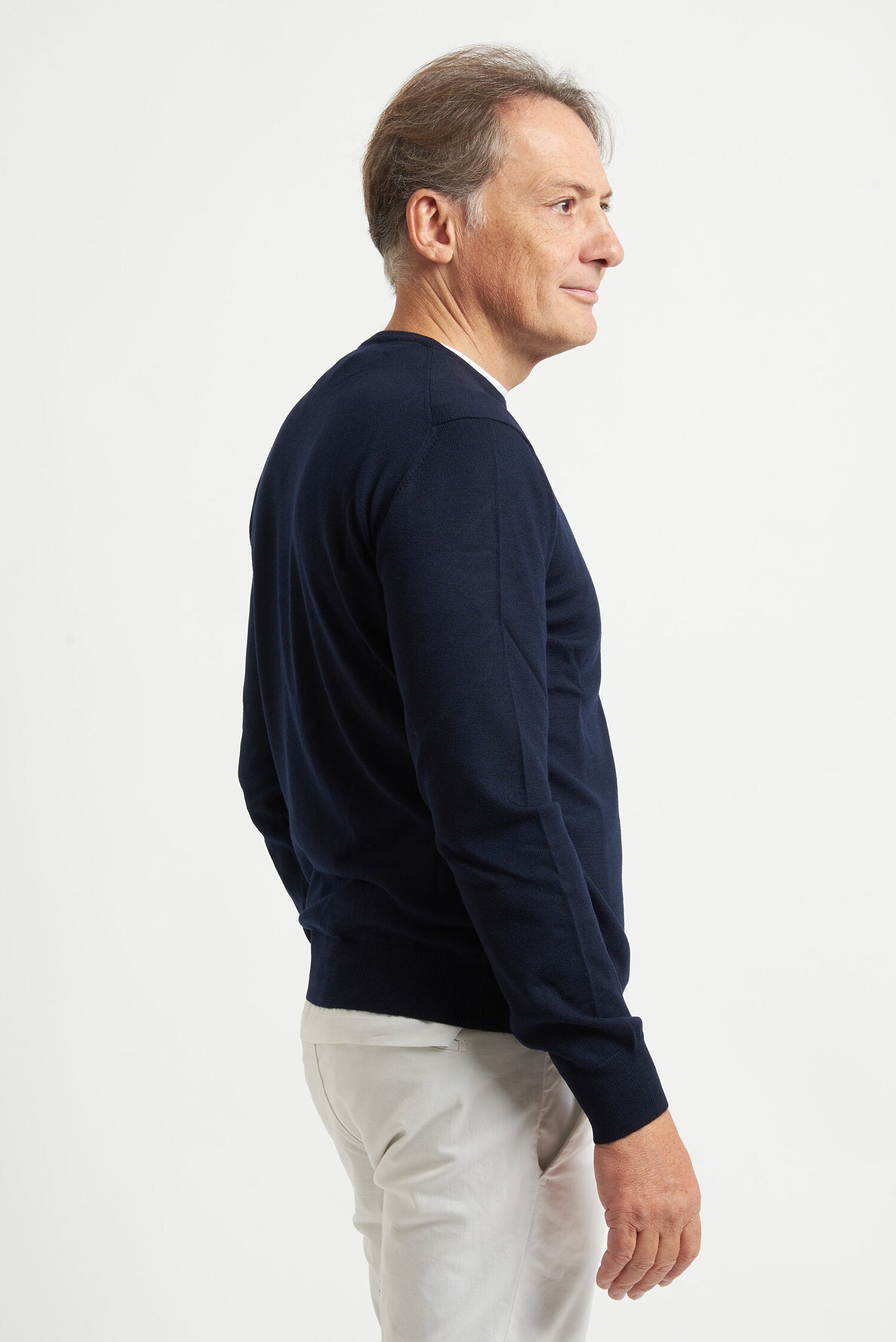 Pullover girocollo GRAN SASSO, realizzato in soffice e preziosissimo filato di lana merino extrafine, che gli conferisce un effetto setoso. Un capo raffinato da risultare casual ed elegante allo stesso tempo, e che può essere indossato anche come sottogiacca. Spessore di consistenza media lavorato in finezza 12. Vestibilità regolare. Composizione: 1000% lana merinos extrafine.
