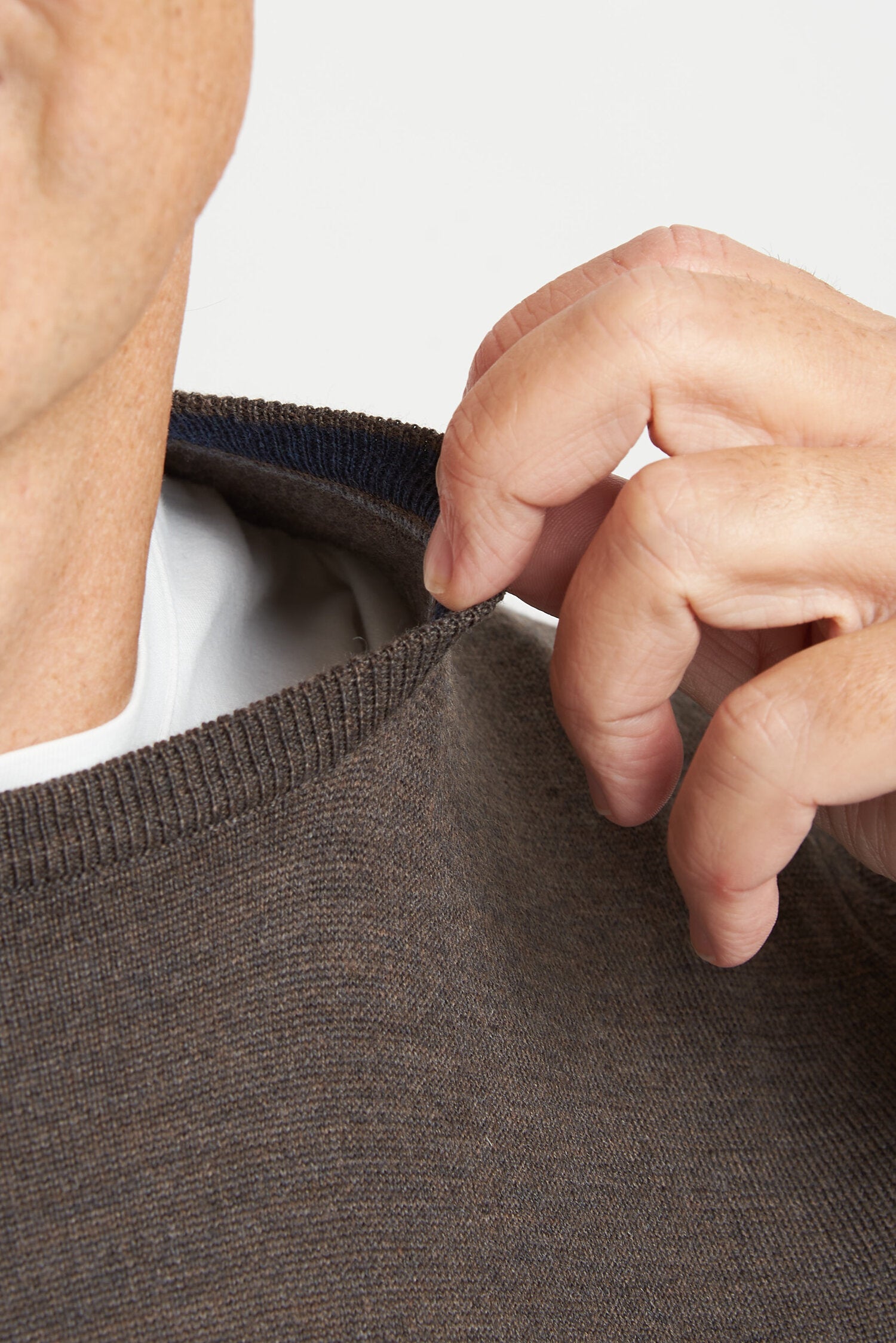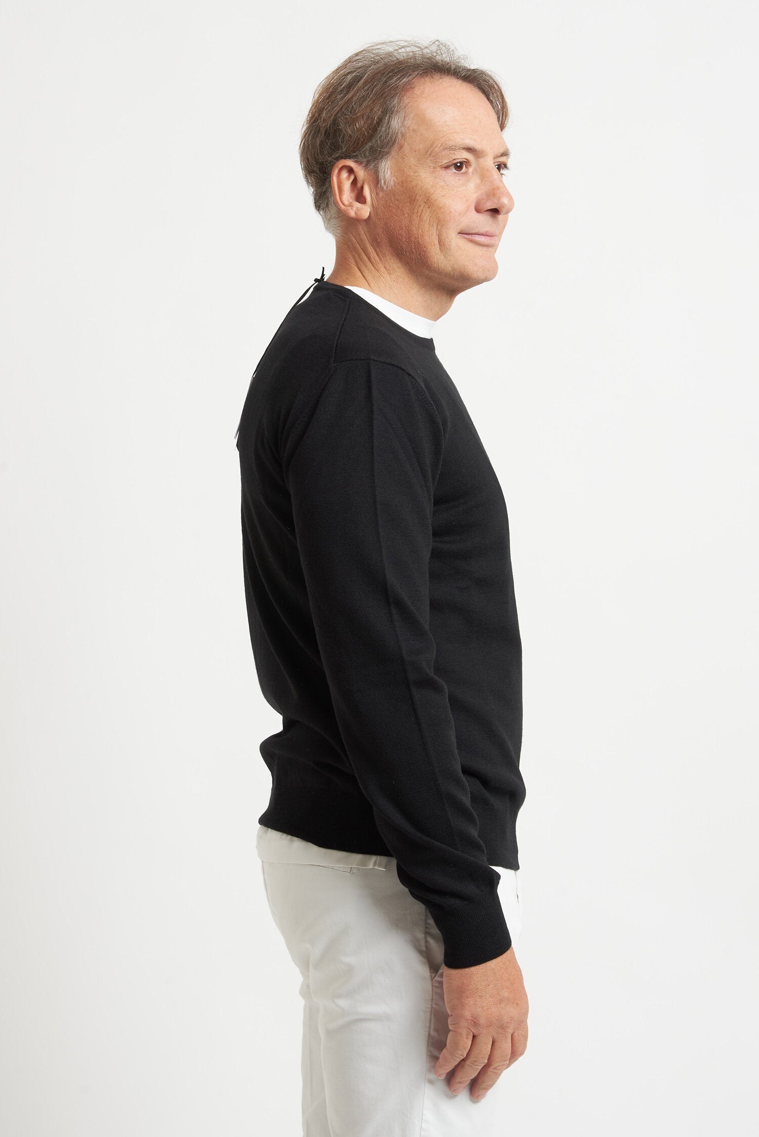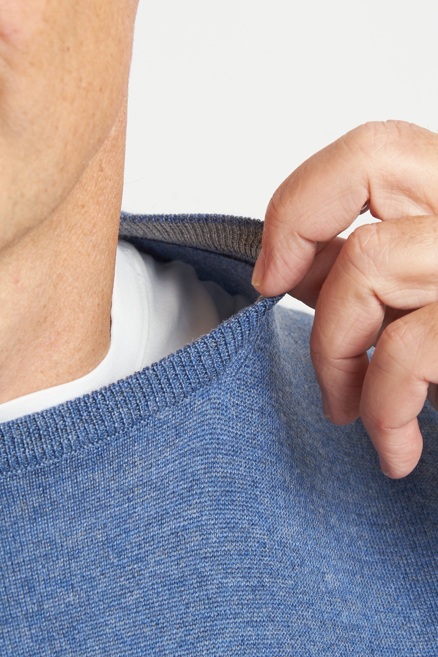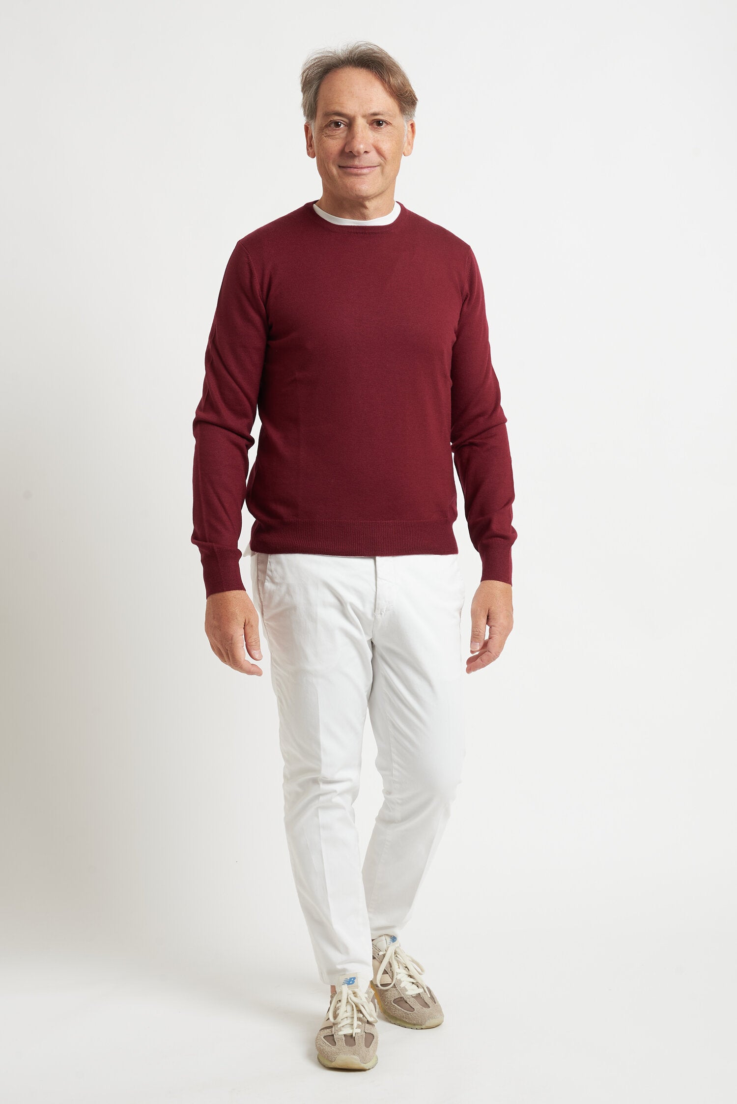 Pullover girocollo GRAN SASSO, realizzato in soffice e preziosissimo filato di lana merino extrafine, che gli conferisce un effetto setoso. Un capo raffinato da risultare casual ed elegante allo stesso tempo, e che può essere indossato anche come sottogiacca. Spessore di consistenza media lavorato in finezza 12. Vestibilità regolare. Composizione: 1000% lana merinos extrafine.