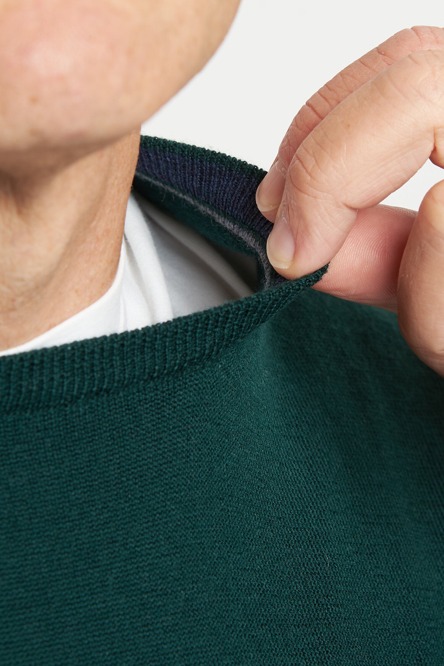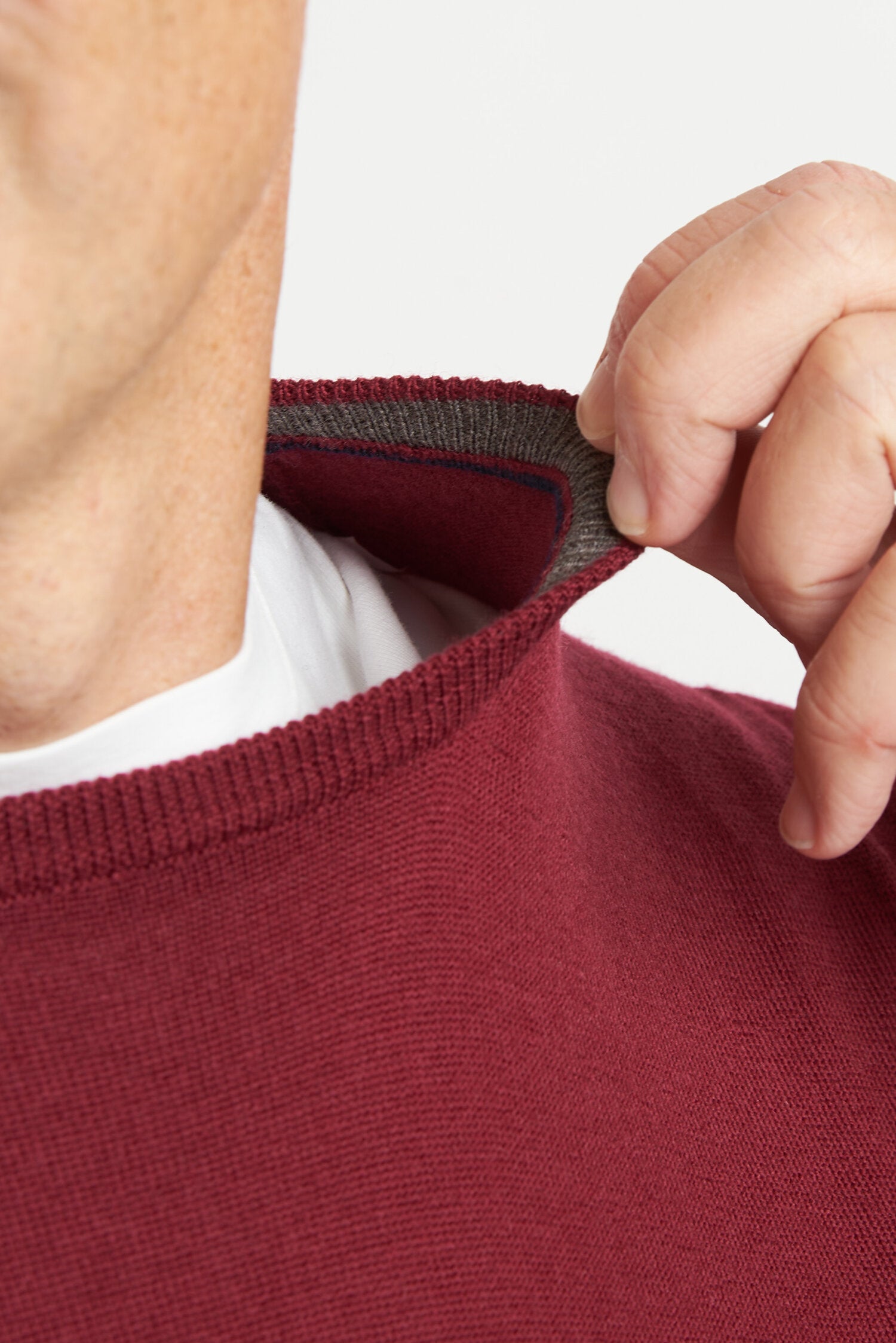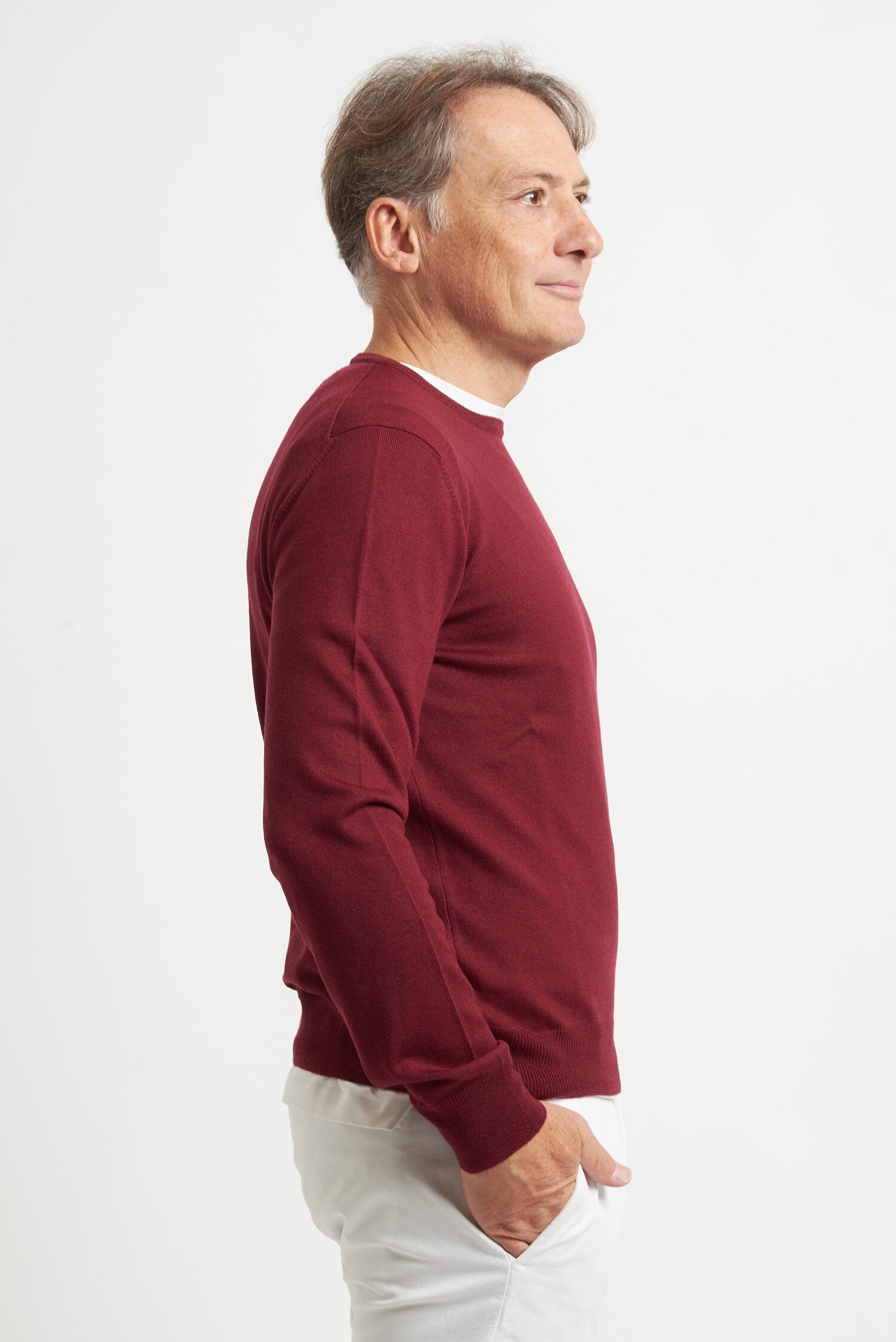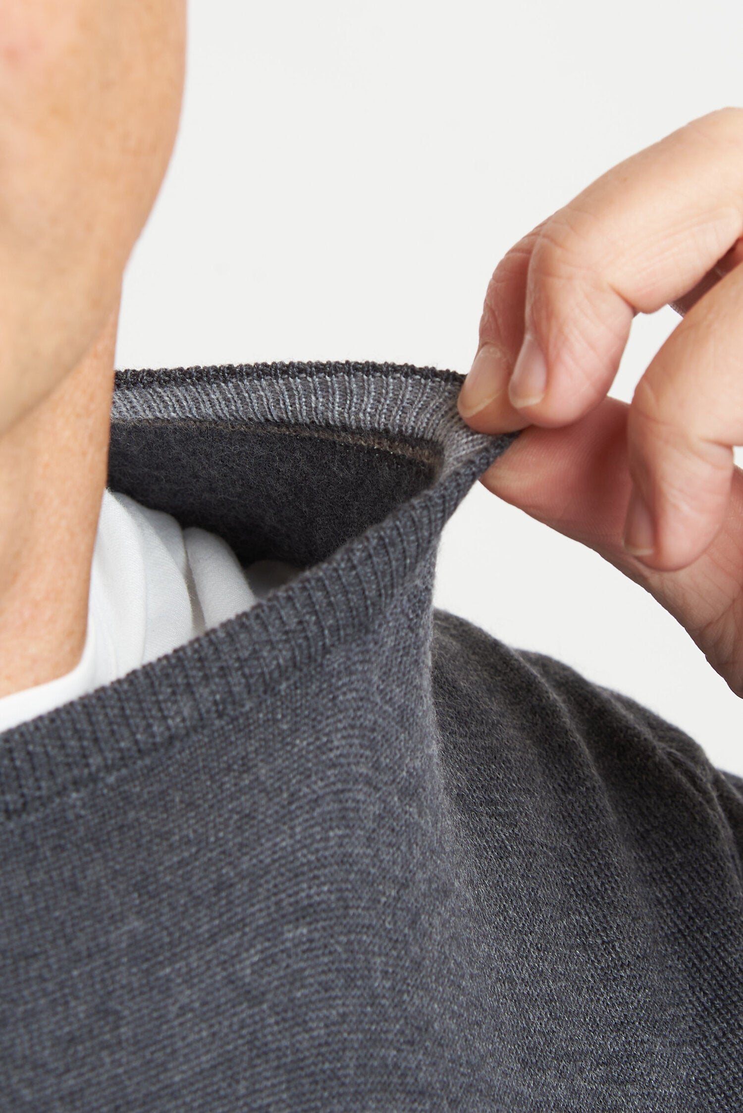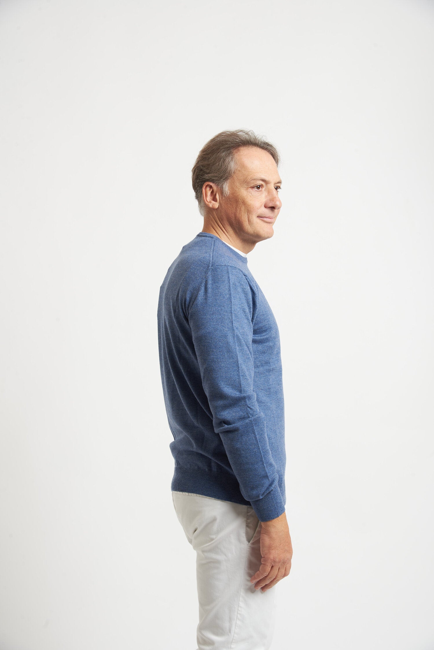 Pullover girocollo GRAN SASSO, realizzato in soffice e preziosissimo filato di lana merino extrafine, che gli conferisce un effetto setoso. Un capo raffinato da risultare casual ed elegante allo stesso tempo, e che può essere indossato anche come sottogiacca. Spessore di consistenza media lavorato in finezza 12. Vestibilità regolare. Composizione: 1000% lana merinos extrafine.