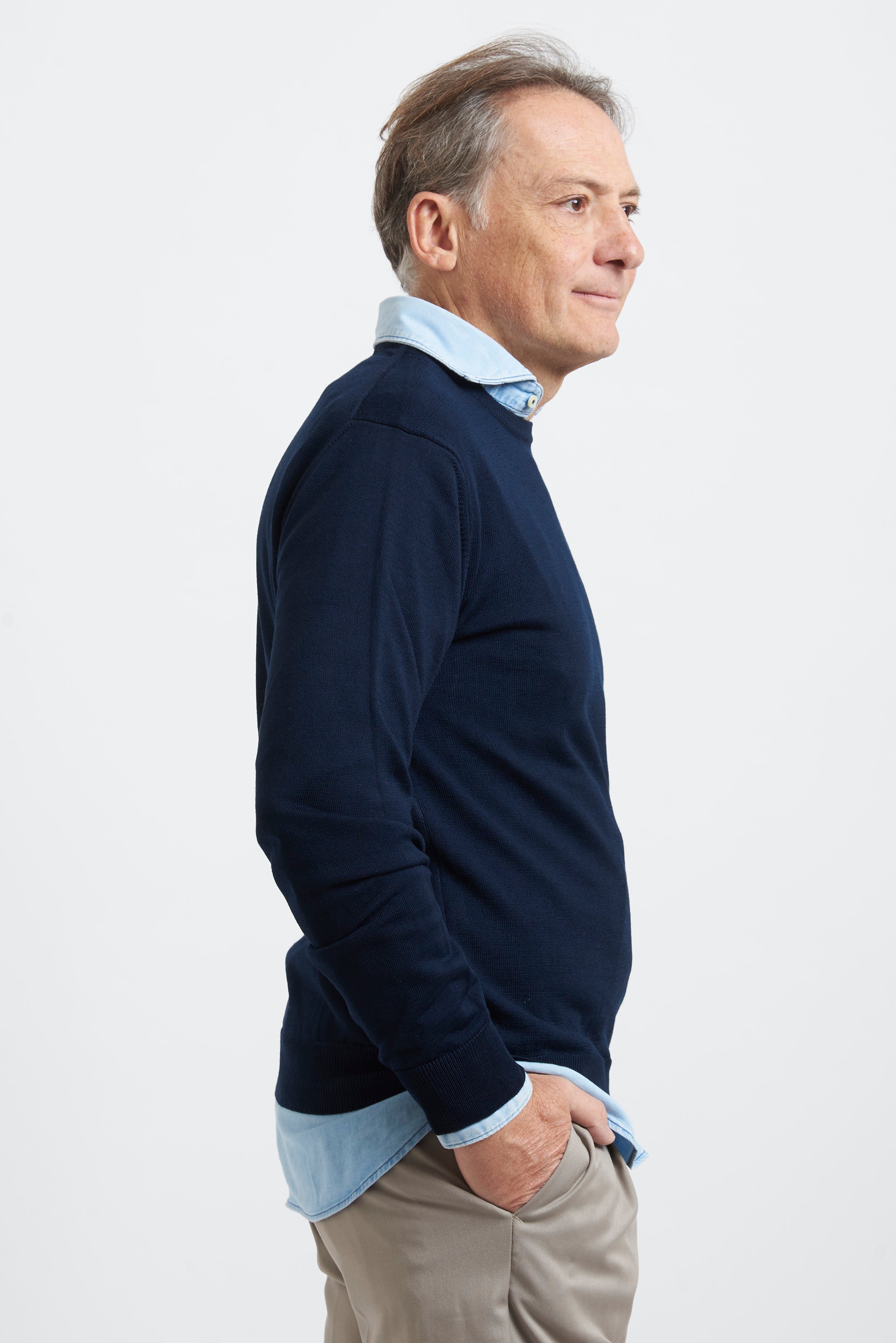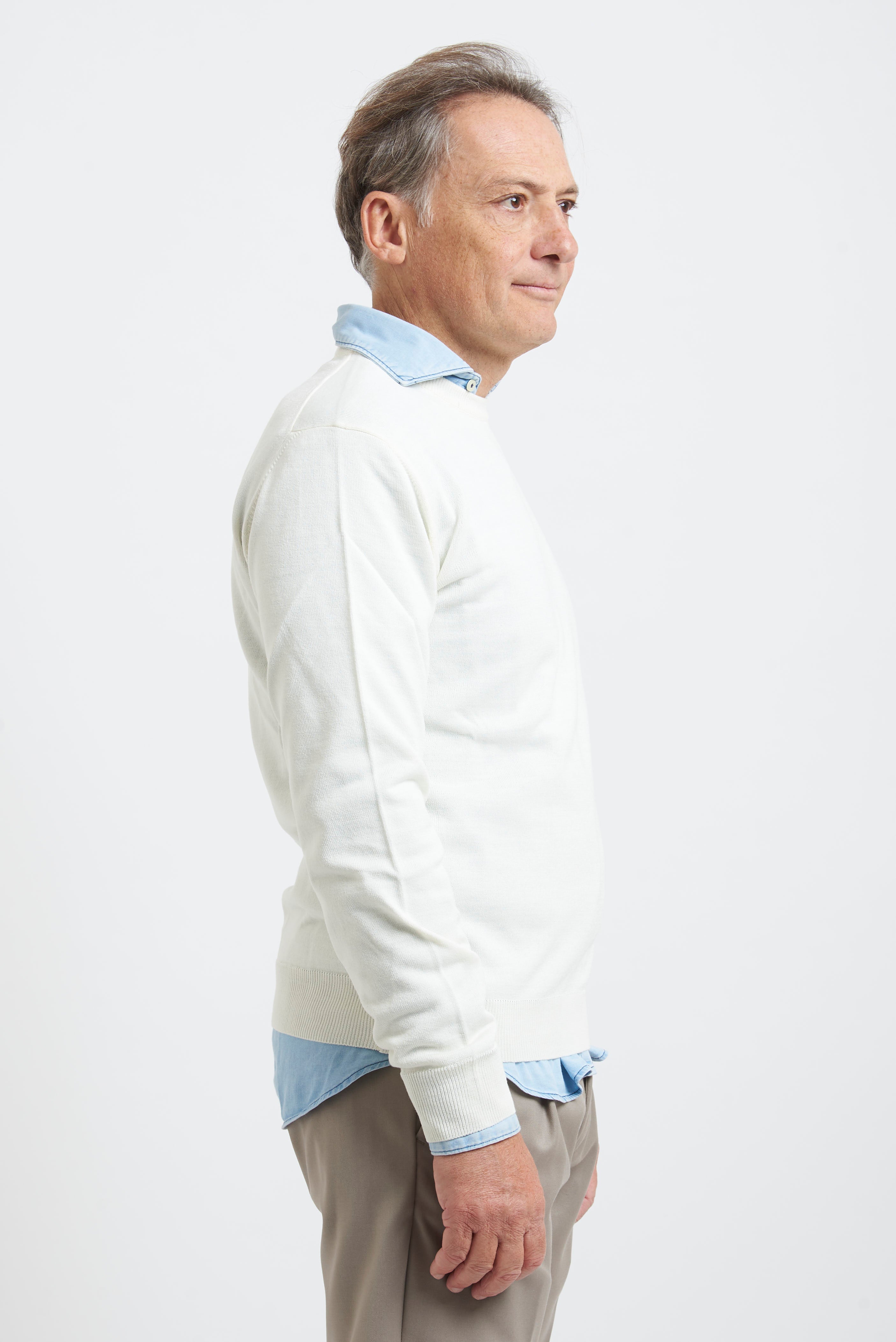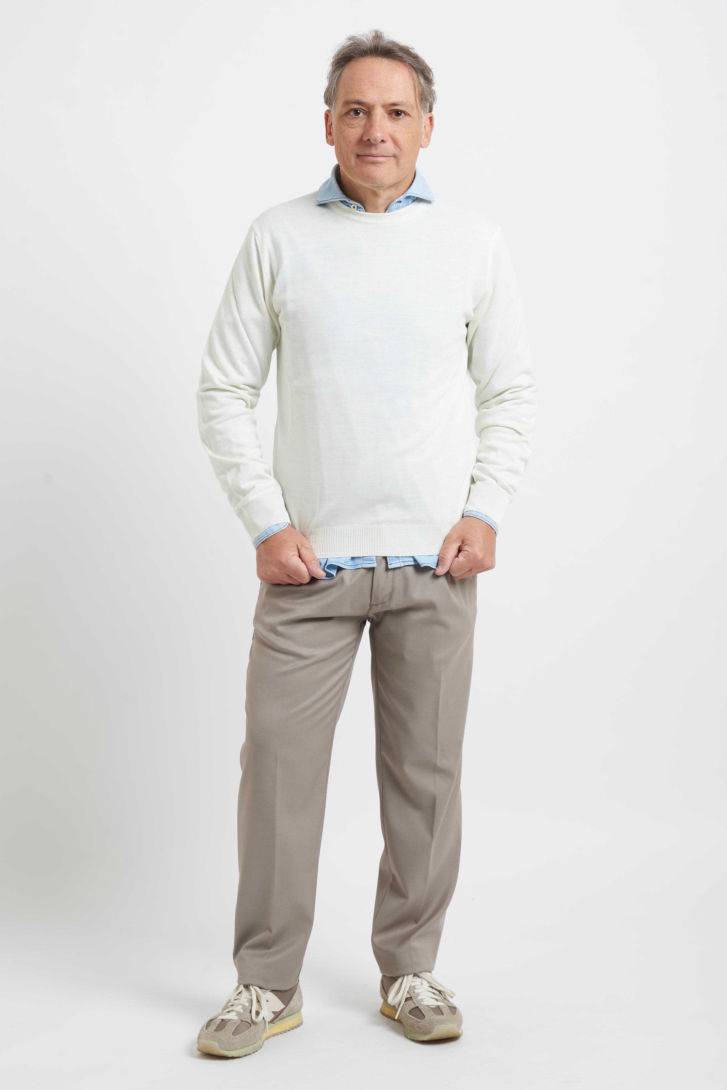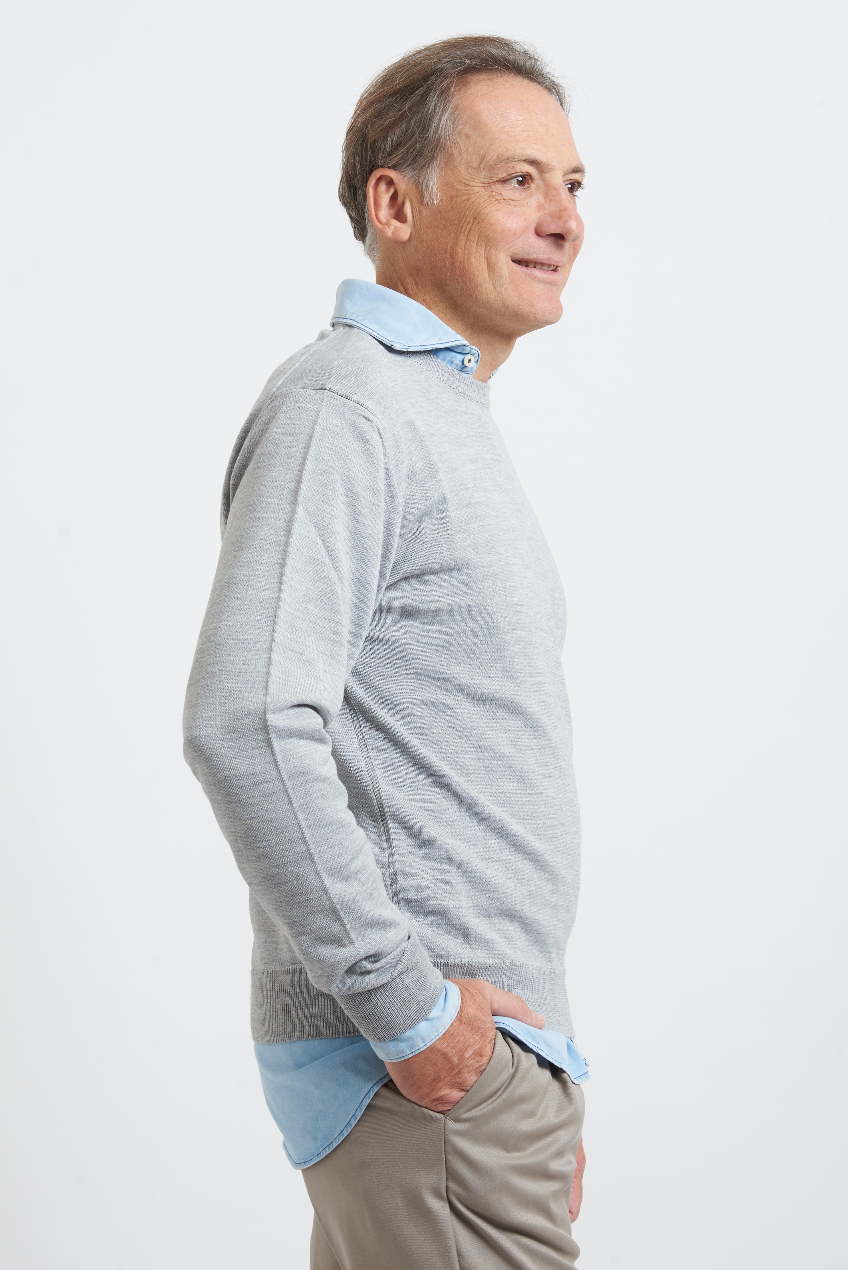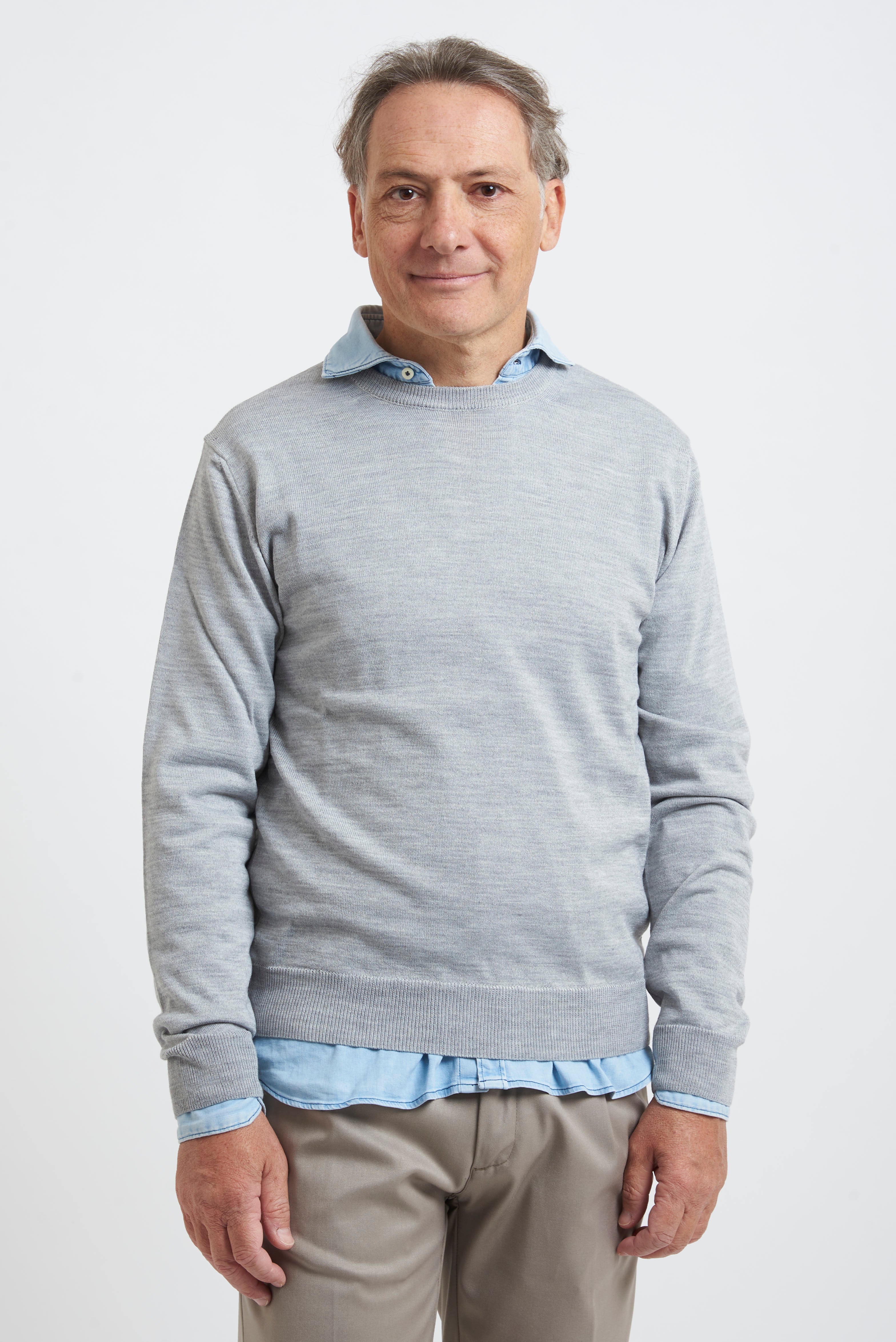 Pullover girocollo WILLIAM, realizzato in pregiato filato in misto lana merino. Un capo da indossare anche come pullover sottogiacca, per le giornate più rigide. Spessore di media consistenza lavorato in finezza 12. Vestibilità regolare. Composizione: 50% lana - 50% acrilico.