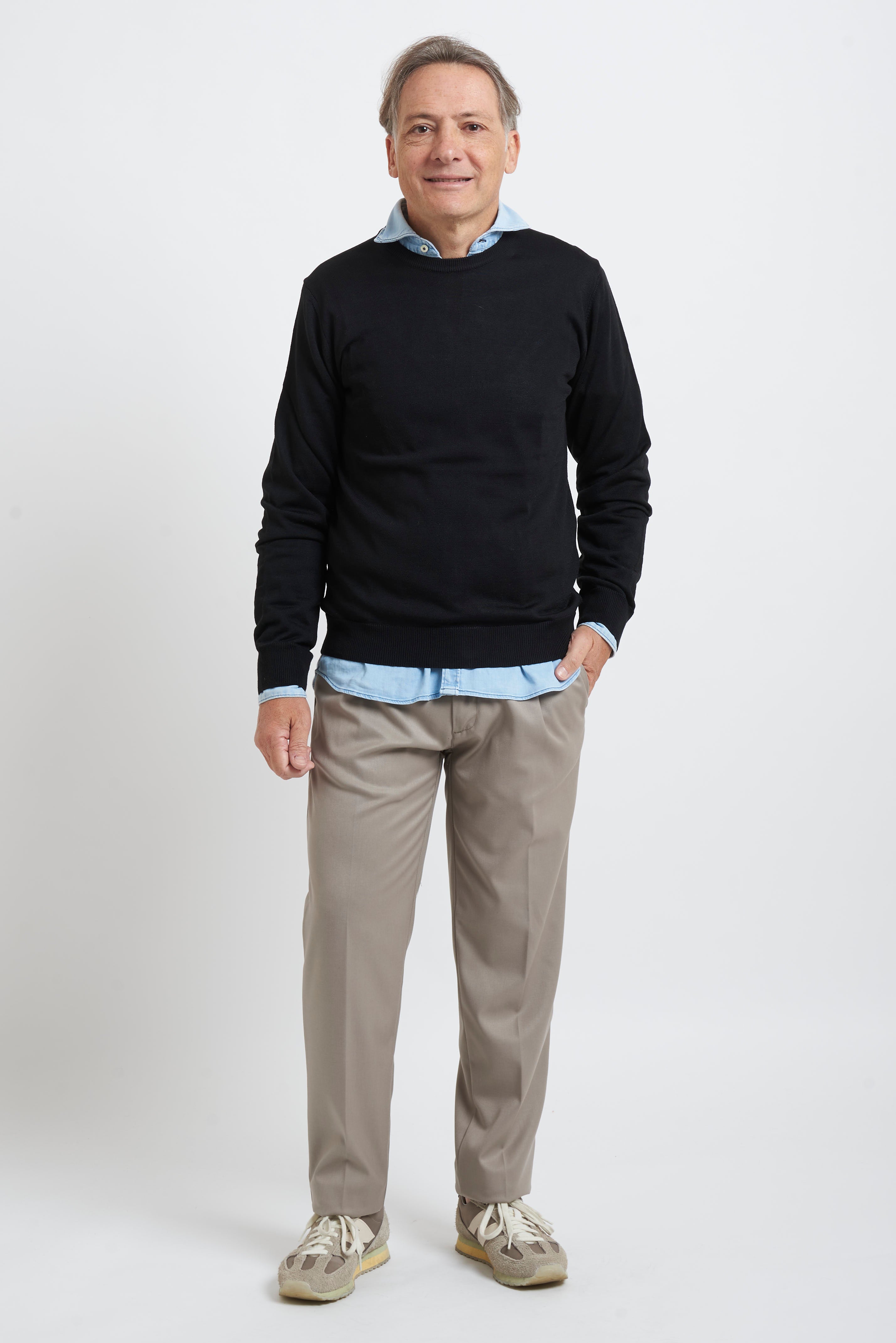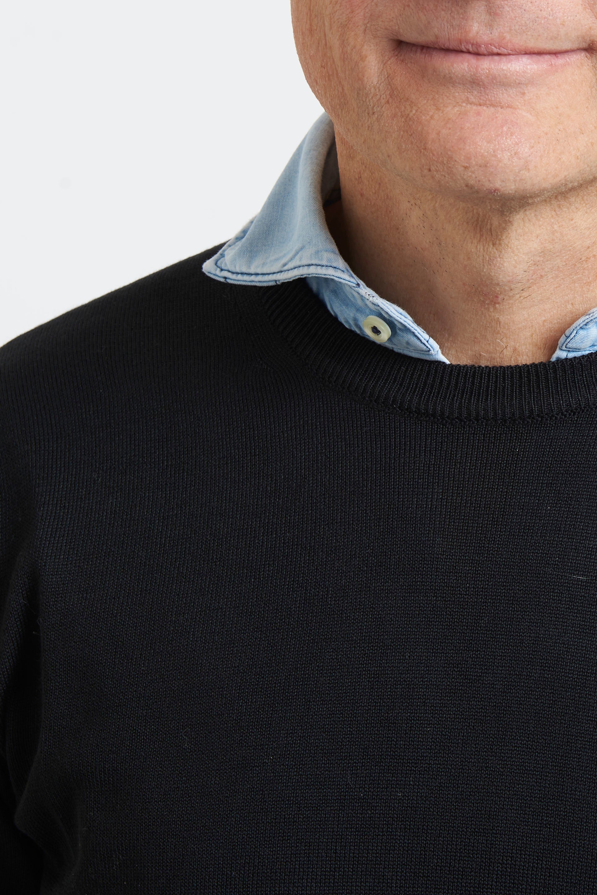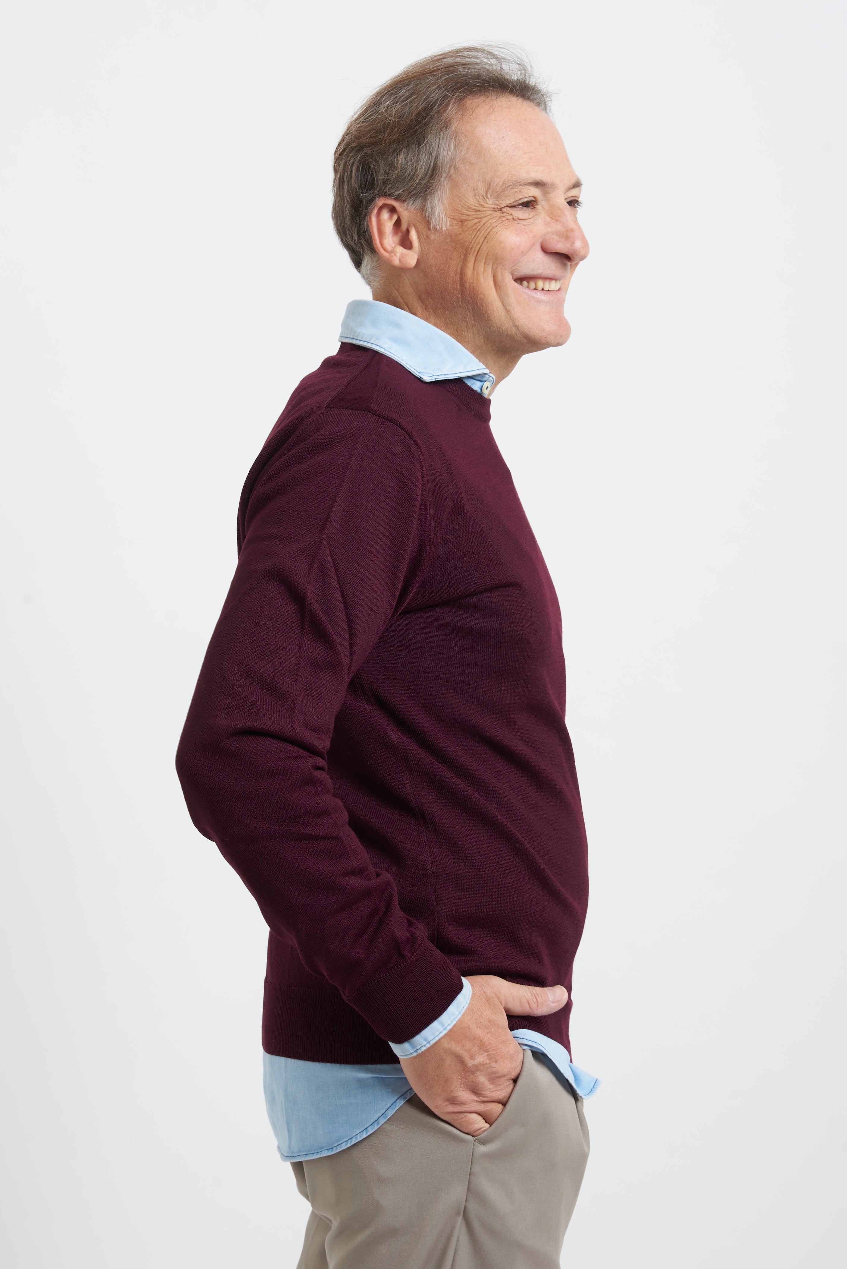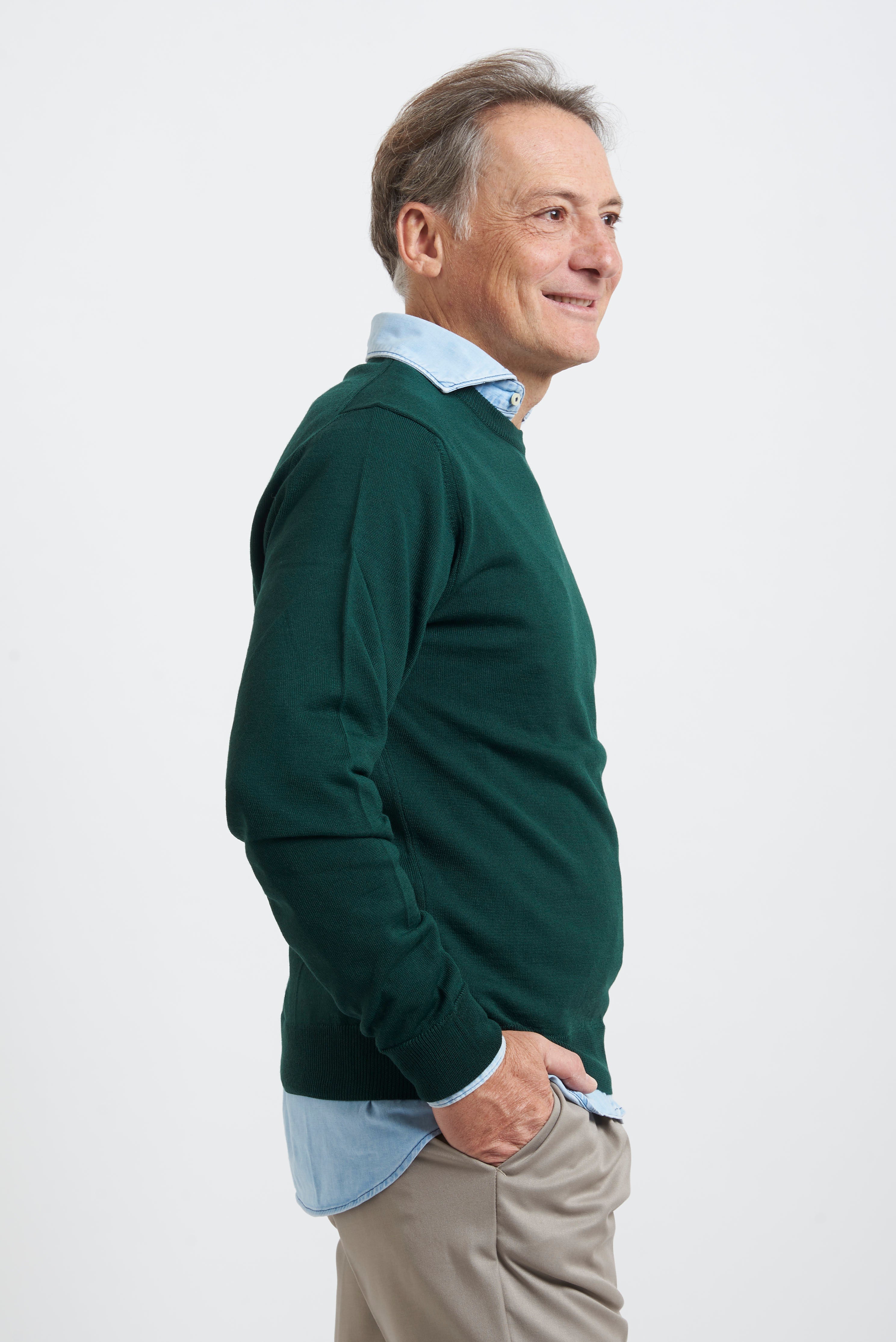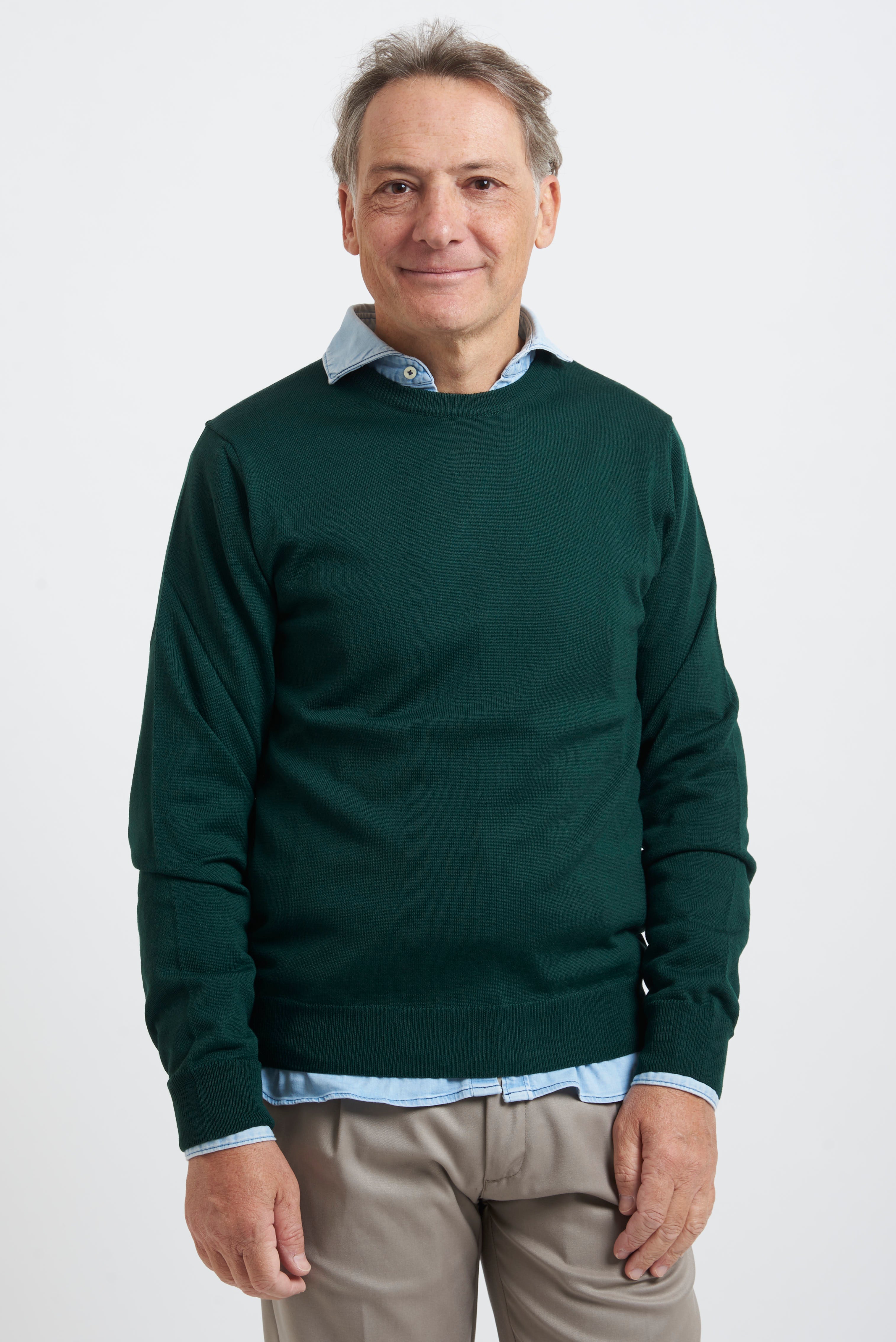 Pullover girocollo WILLIAM, realizzato in pregiato filato in misto lana merino. Un capo da indossare anche come pullover sottogiacca, per le giornate più rigide. Spessore di media consistenza lavorato in finezza 12. Vestibilità regolare. Composizione: 50% lana - 50% acrilico.