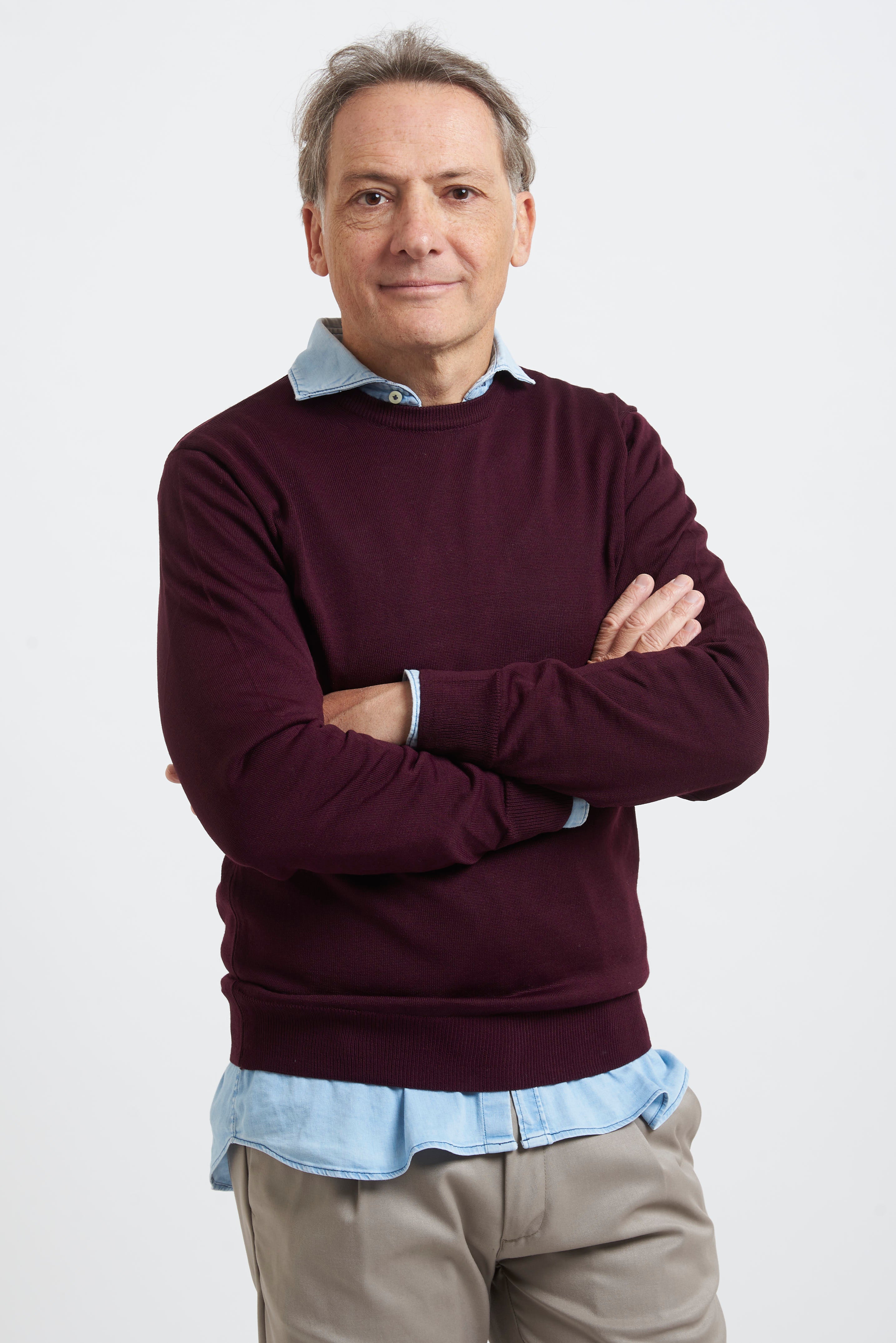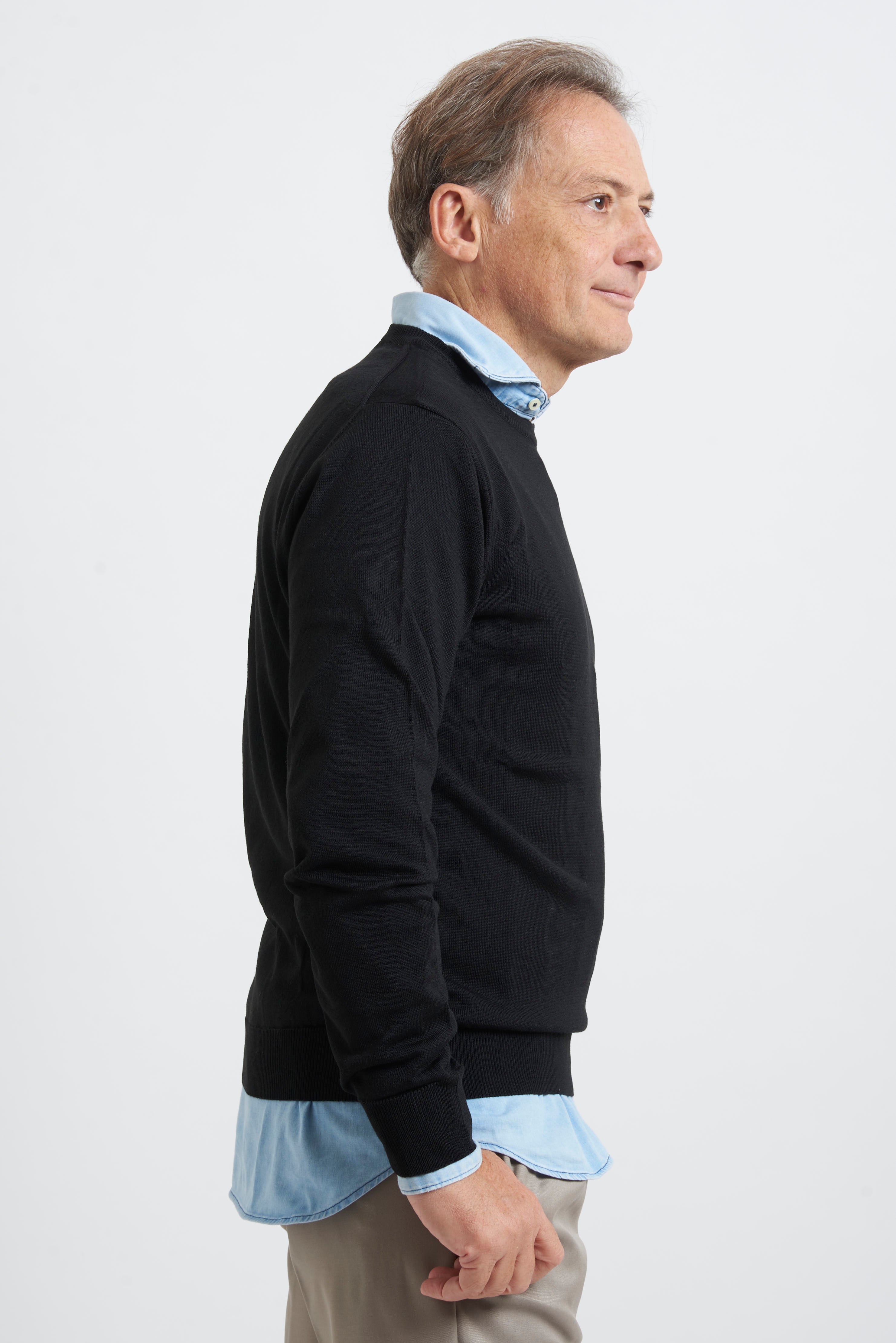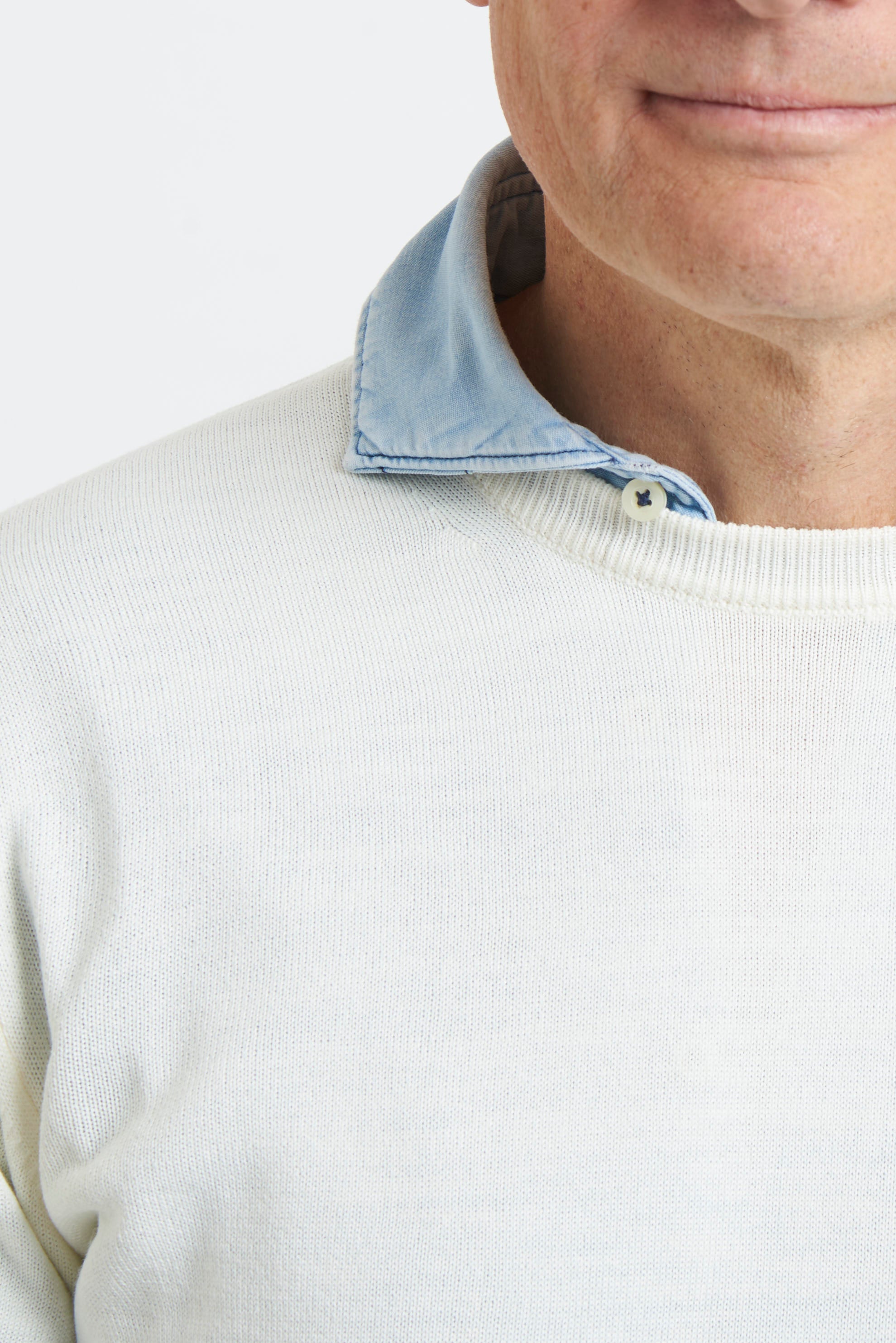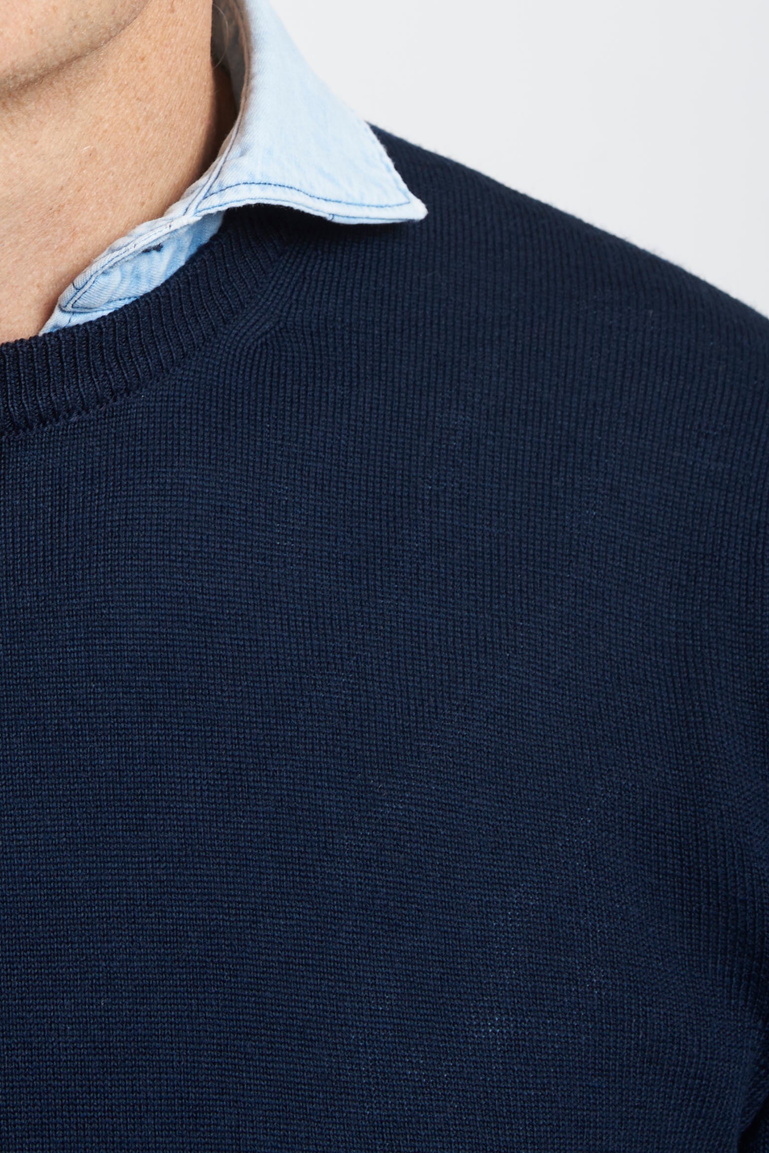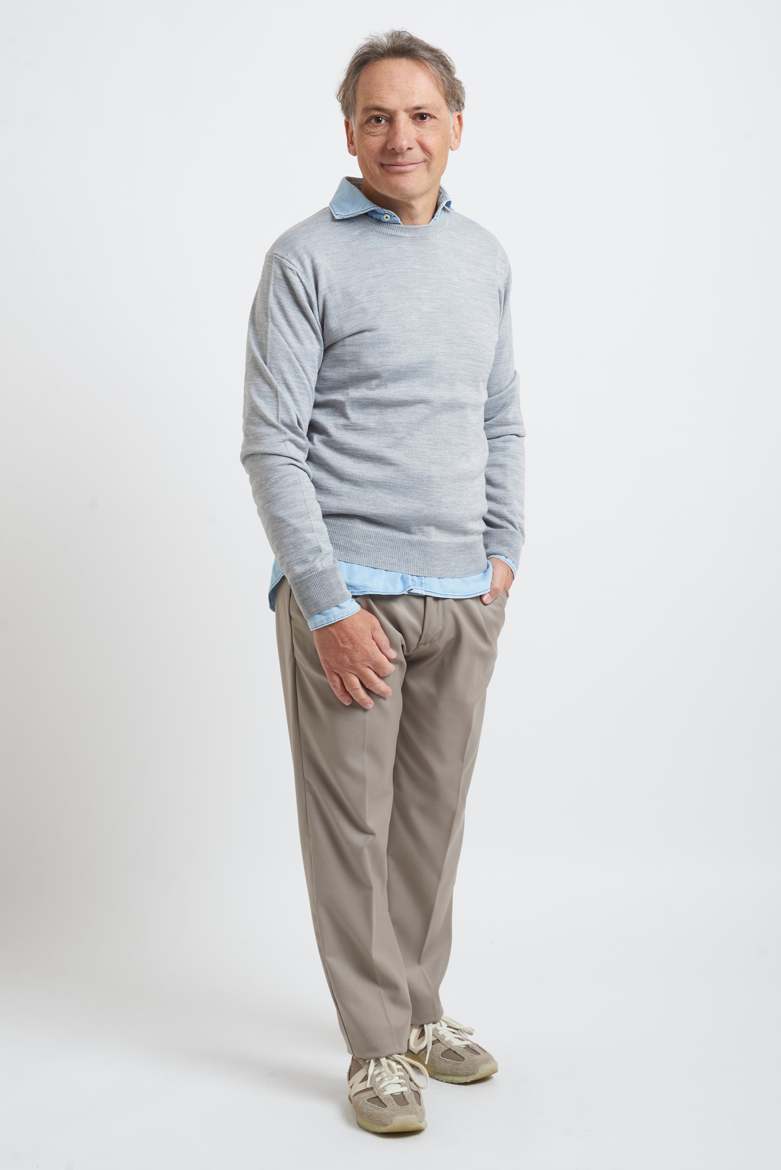 Pullover girocollo WILLIAM, realizzato in pregiato filato in misto lana merino. Un capo da indossare anche come pullover sottogiacca, per le giornate più rigide. Spessore di media consistenza lavorato in finezza 12. Vestibilità regolare. Composizione: 50% lana - 50% acrilico.